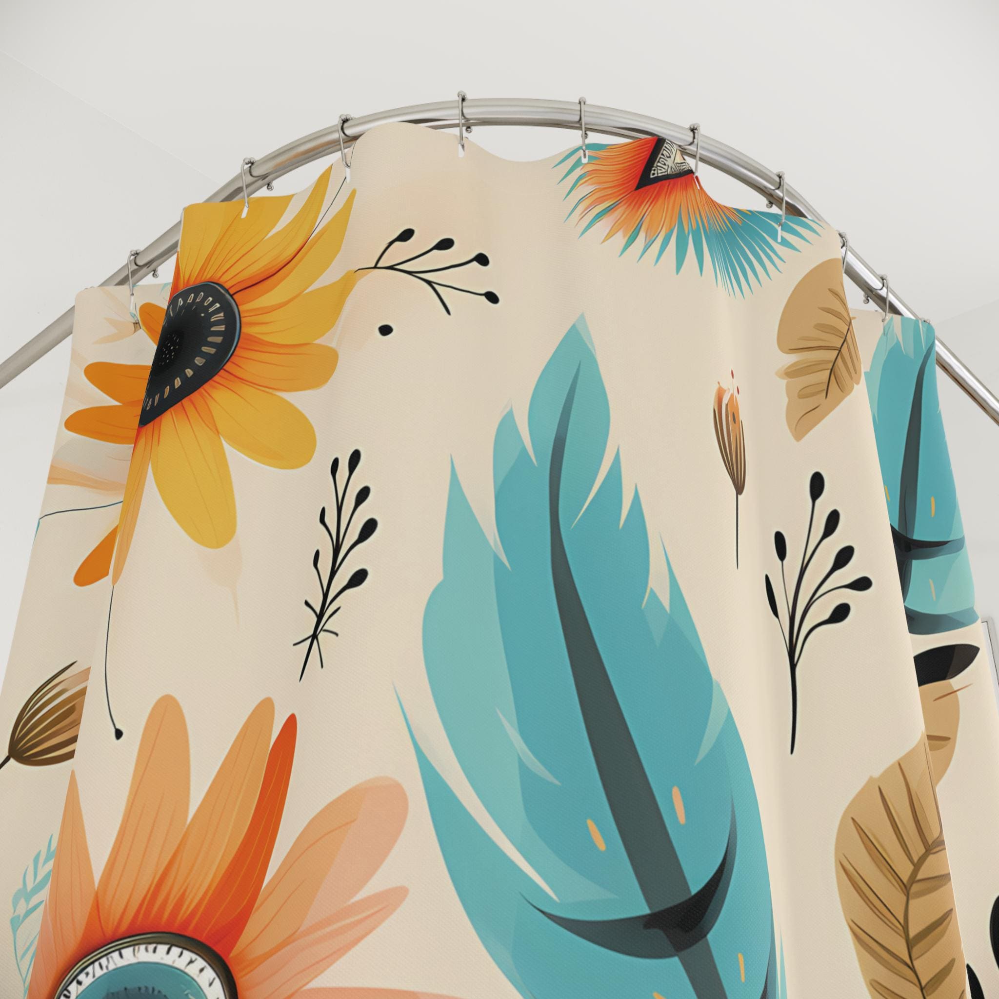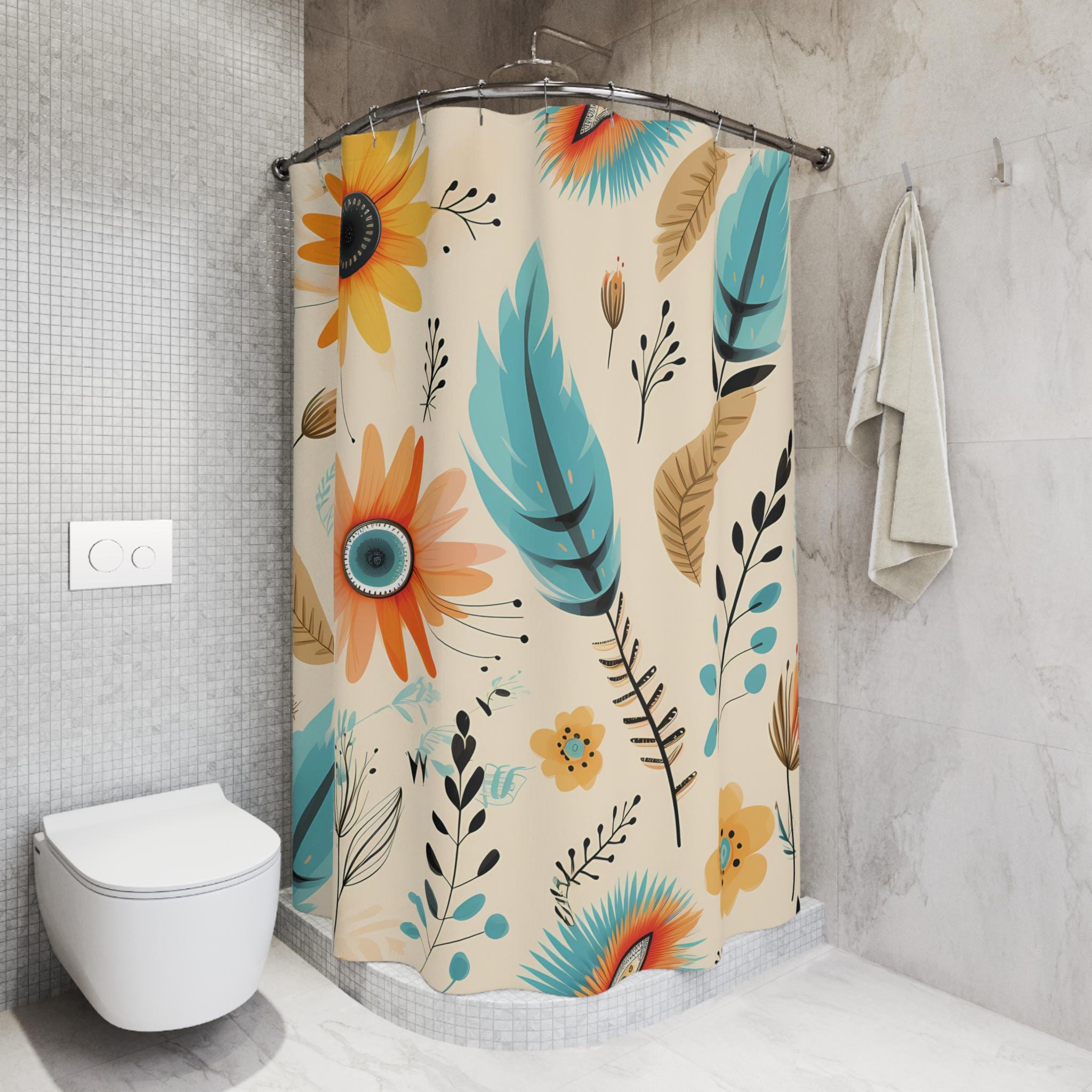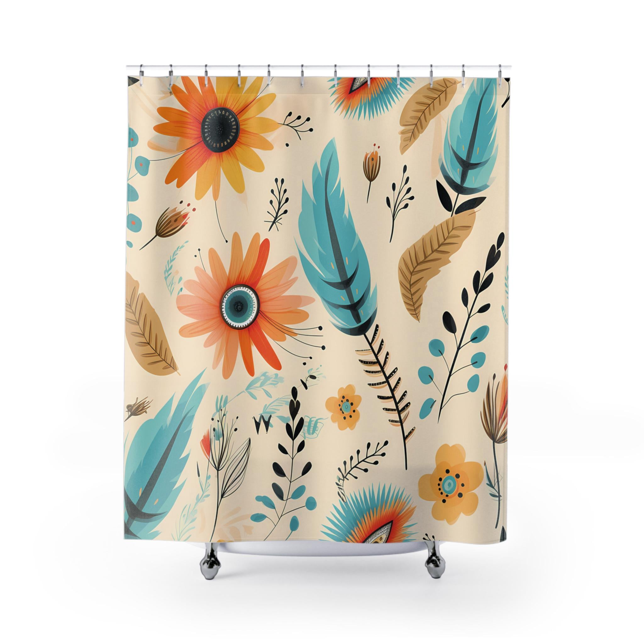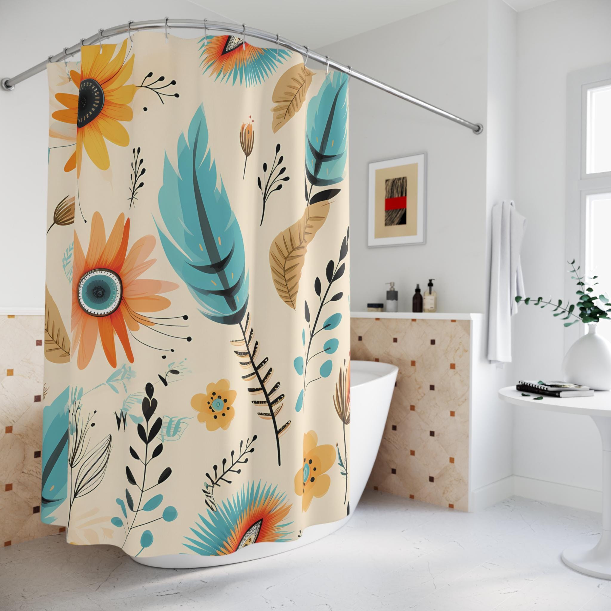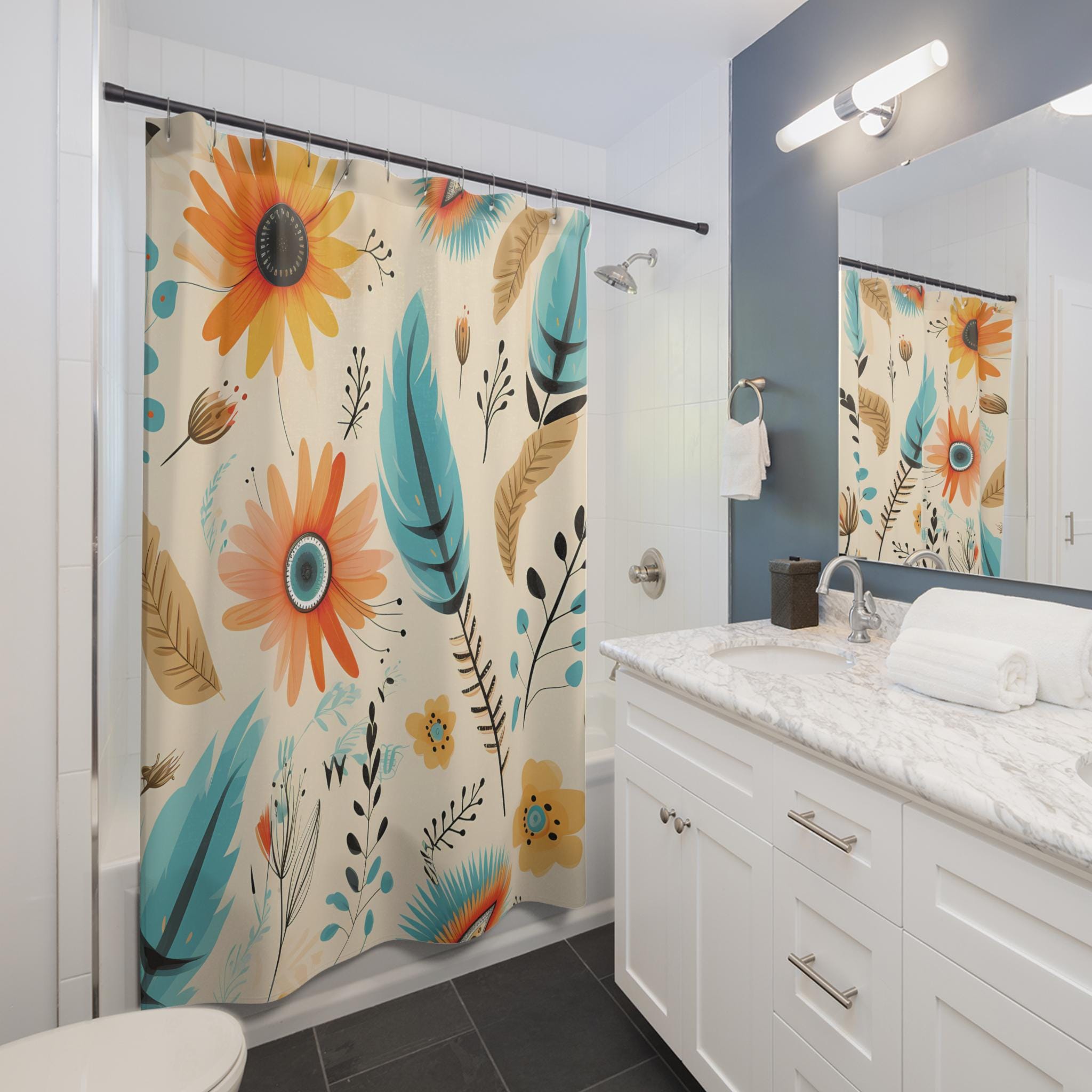 This Boho Floral Shower Curtain transforms your bathroom into a calm, creative sanctuary. With a palette of terracotta, ochre, and sky blue, its hand-drawn botanicals bring a sense of natural movement and mindful beauty to your daily routine.