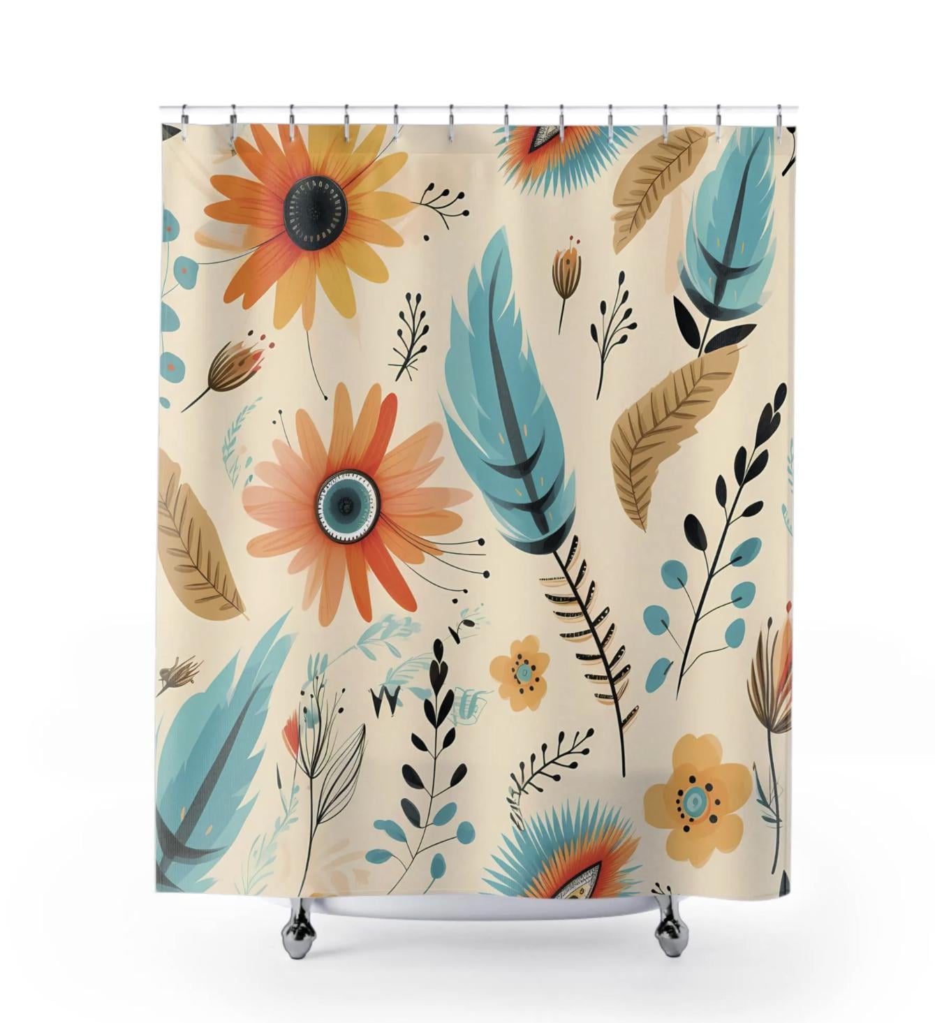 🌿 Brighten your bathroom with this boho floral shower curtain — soft botanicals, warm earth tones, and a design that ties your whole home together.