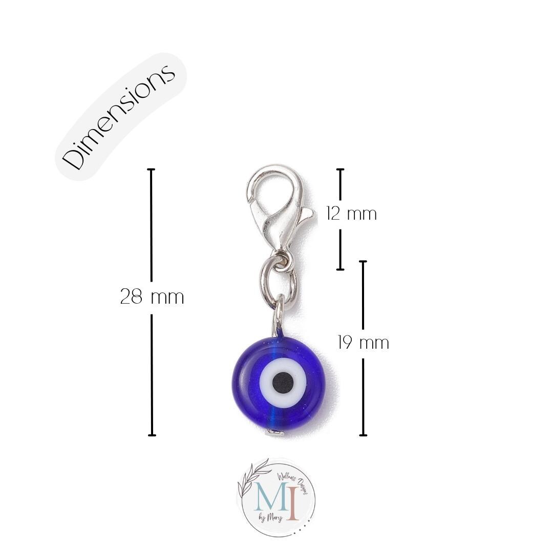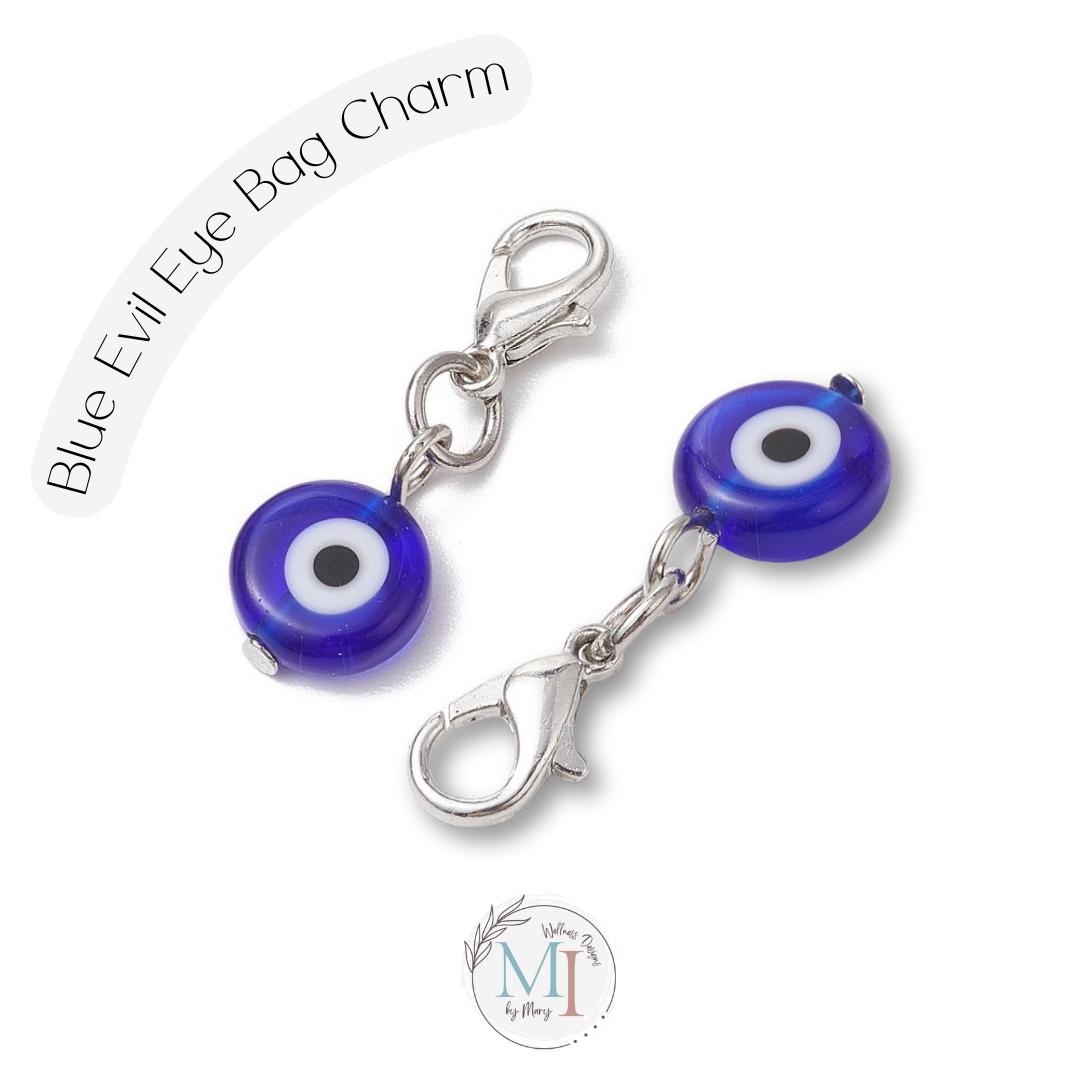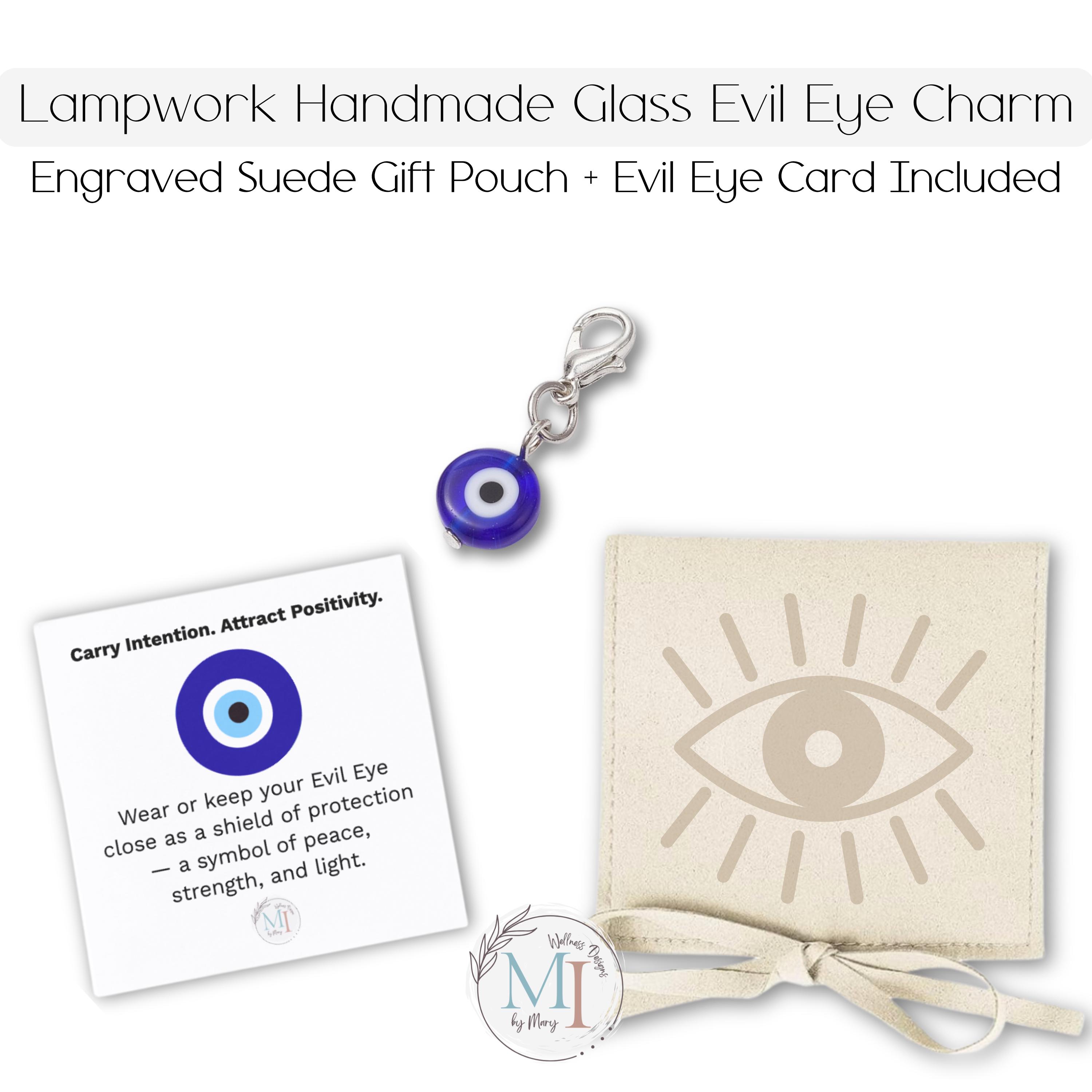 🧿 Blue Evil Eye zipper pull charm made from lampwork glass. Includes engraved microfiber suede gift pouch & evil eye meaning card—perfect small protection gift.