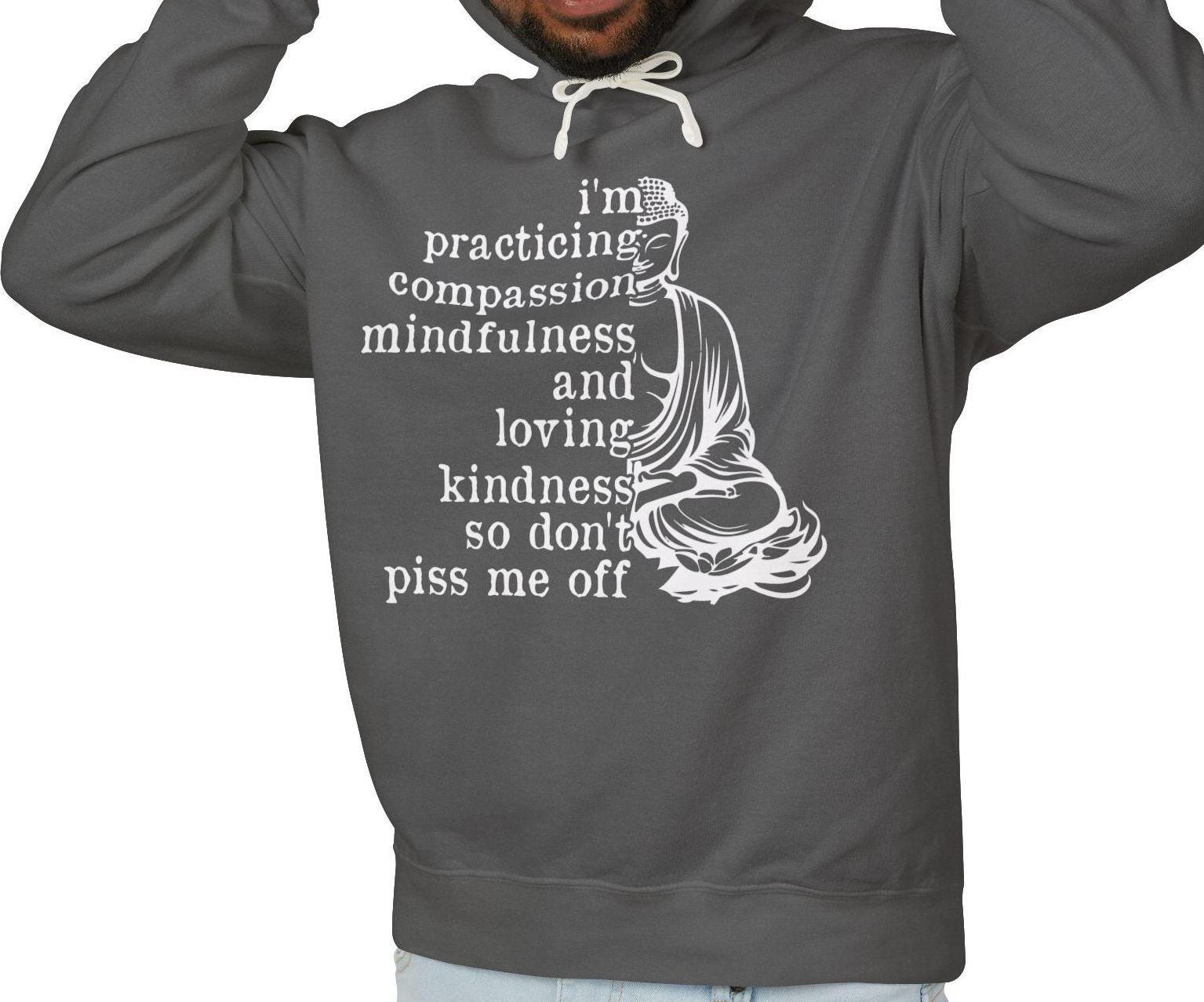 π§ββοΈ Stay mindful and cozy with our Funny Buddha Unisex Lightweight Hoodie! Featuring the playful phrase, "I'm practicing compassion, mindfulness, and loving-kindness, so don't piss me off," this hoodie blends humor with a relaxed style for the perfect casual wear.