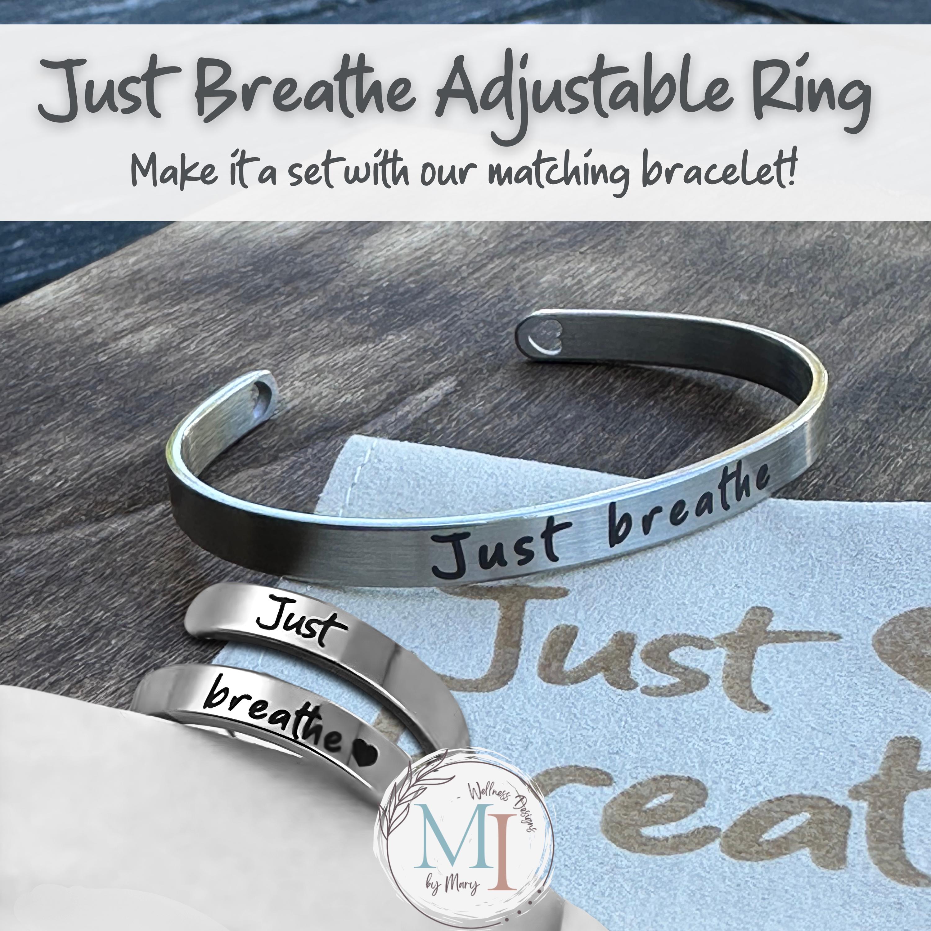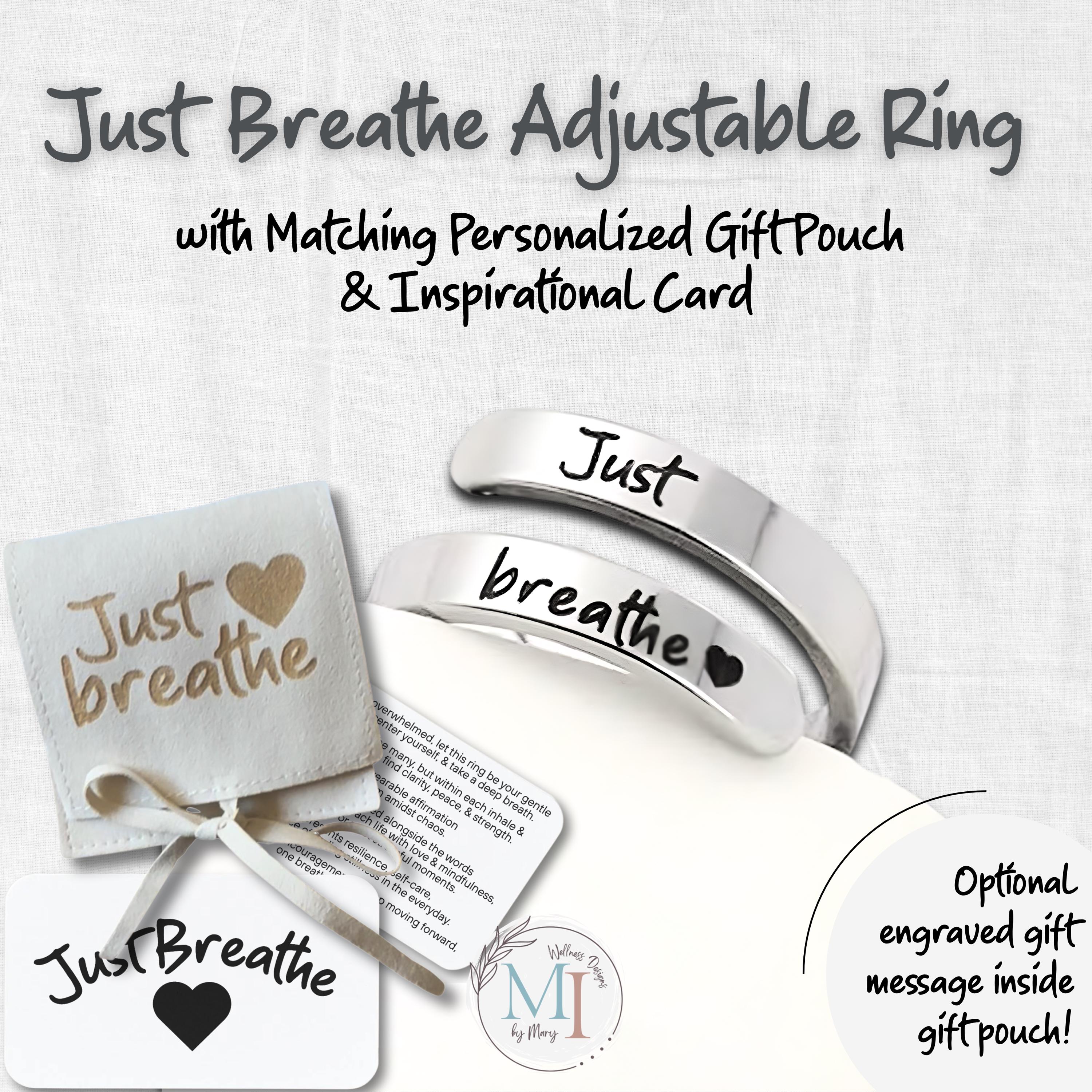 Elevate your mindfulness practice with the "Just Breathe" Adjustable Ring, a gentle reminder to take a moment for yourself. This elegantly crafted stainless steel band combines style with substance, serving as both a beautiful accessory and a daily nudge to breathe deeply and find calm amidst life’s busyness.