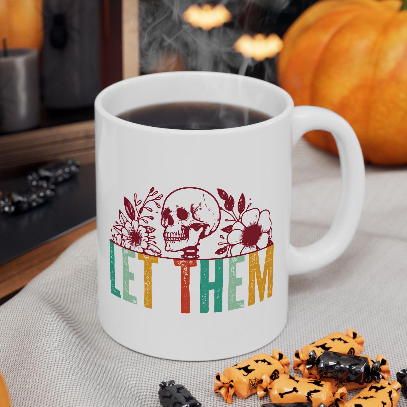 More than just a mug, this Let Them design is a statement of resilience and self-empowerment. The bold color palette and intricate boho skeleton artwork make it a standout piece for any coffee station or workspace.
