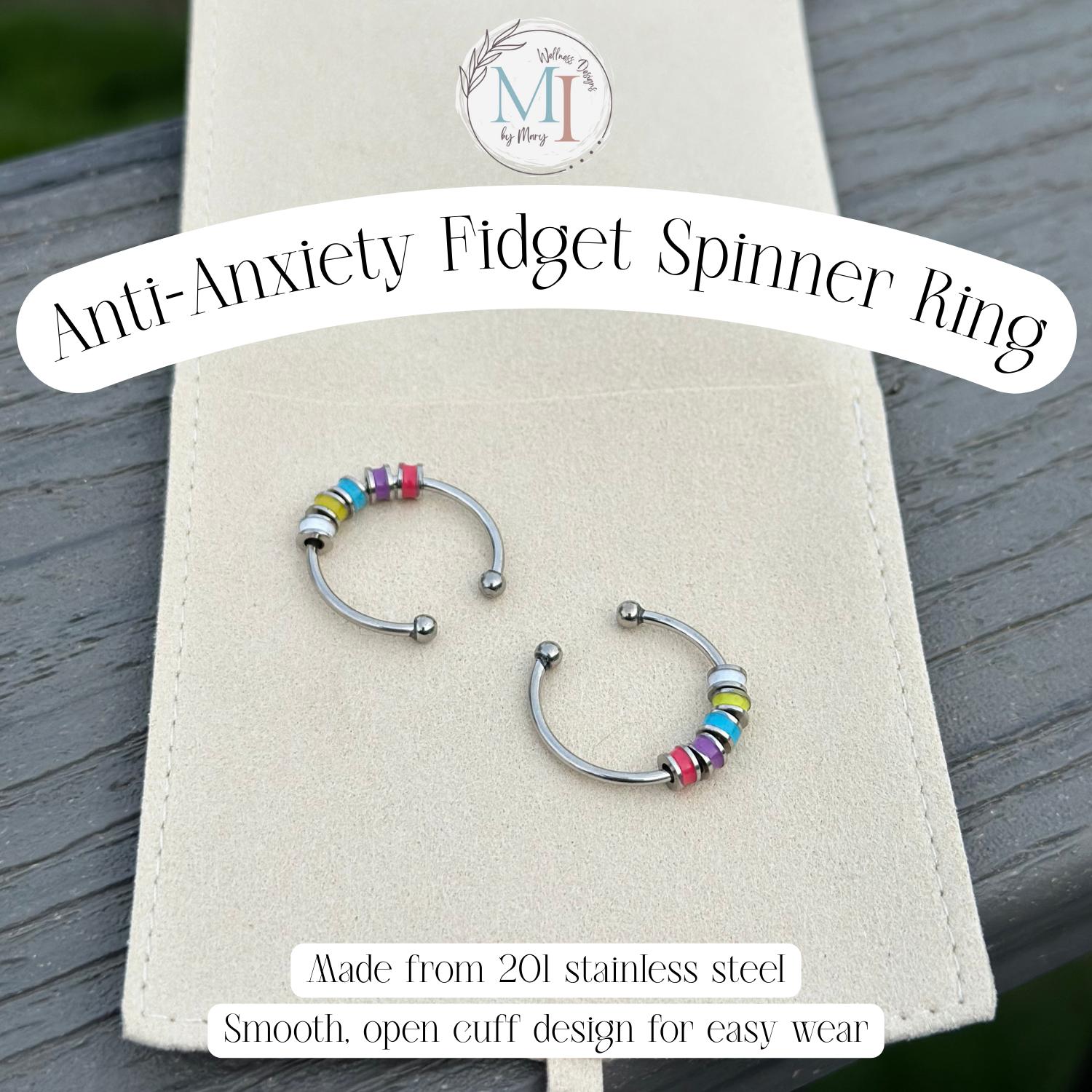 đŤ Find your calm with this playful and stylish rotating bead ring! Made from durable 201 stainless steel, this open cuff ring features six enamel-coated beads in soft rainbow colors that gently spinâoffering a quiet, tactile way to ease anxiety and fidget stress-free.