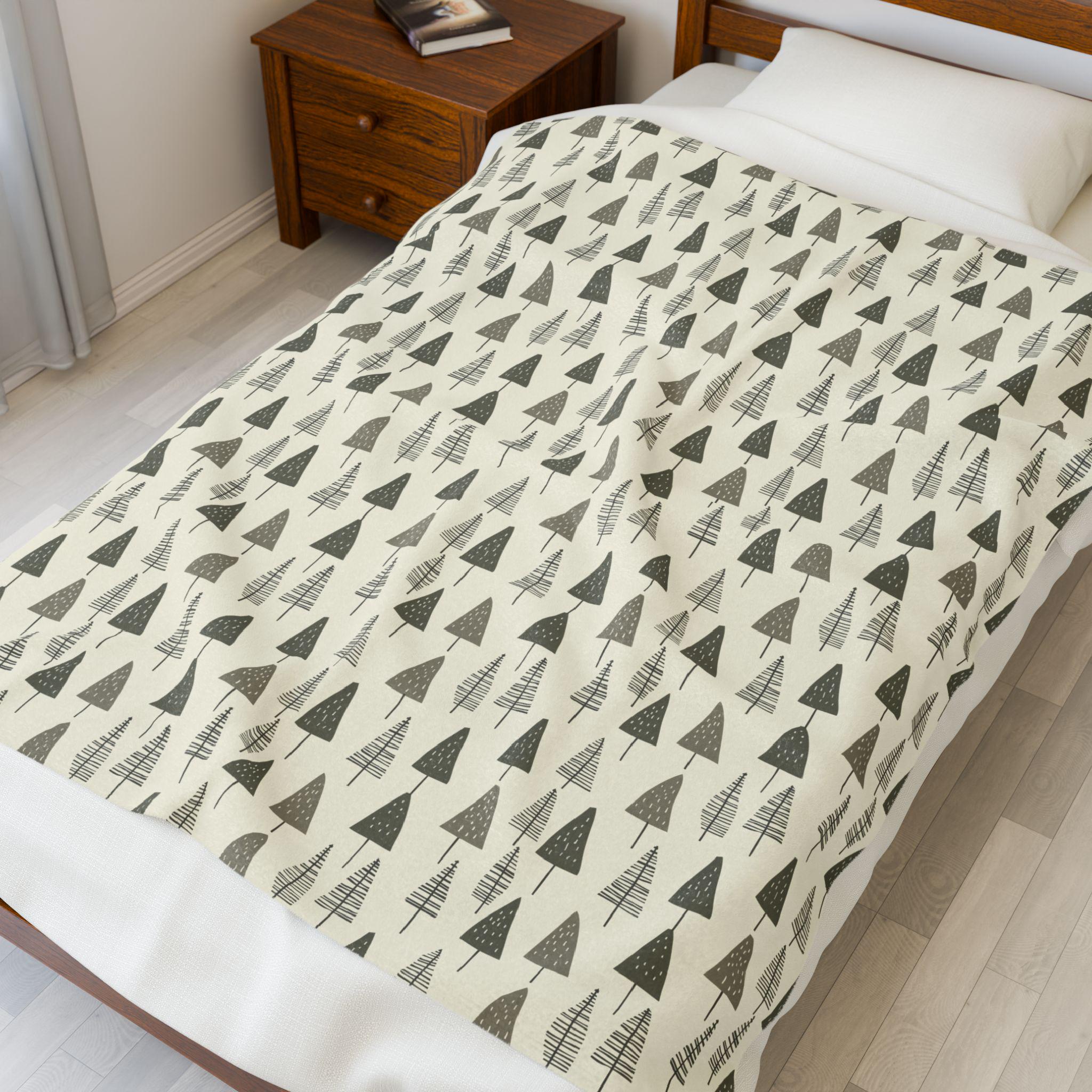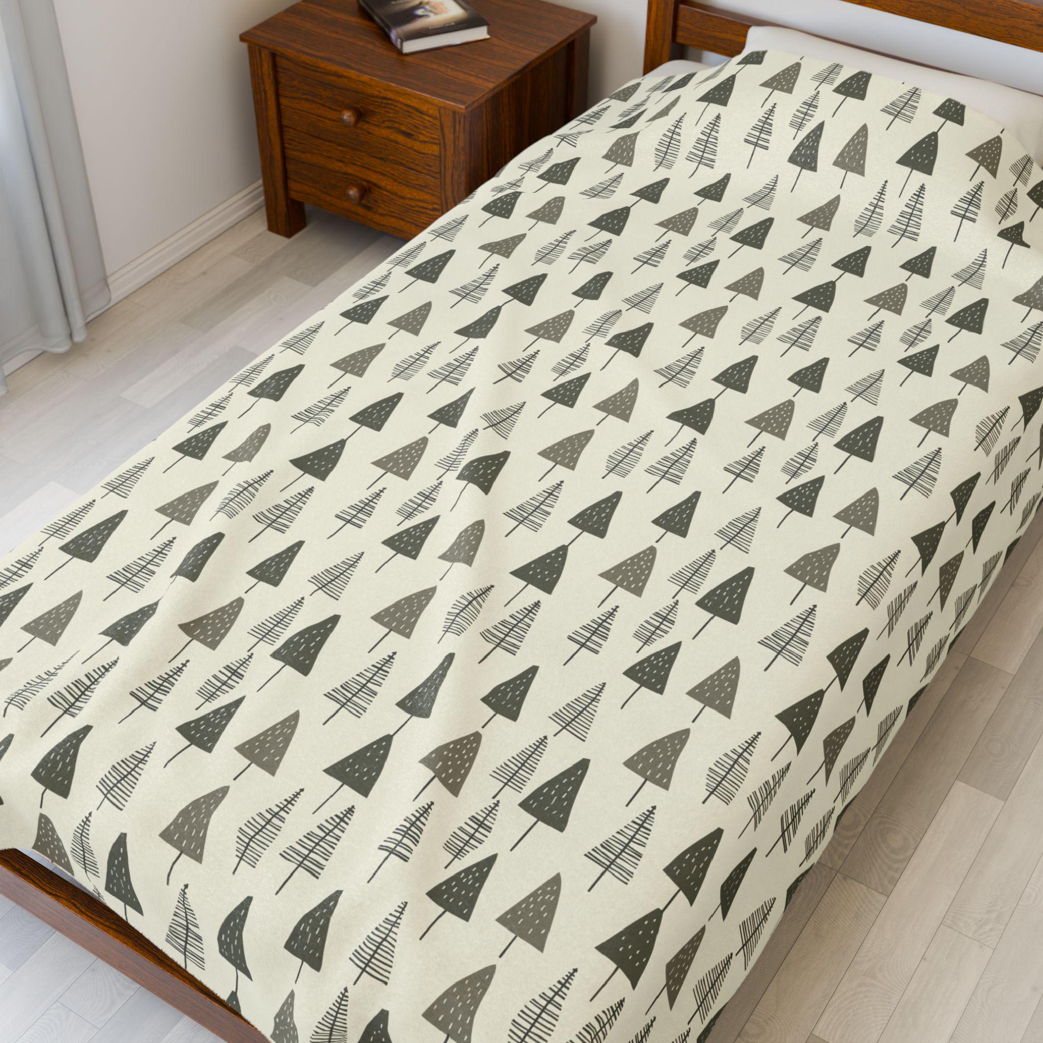Bring the calm of a winter forest into your home with this soft velveteen plush blanket. Designed with a minimalist evergreen tree pattern in muted tones, it adds a cozy Scandinavian touch to any space. Perfect for curling up by the fire, layering on your bed, or gifting to nature lovers and cabin dwellers alike.