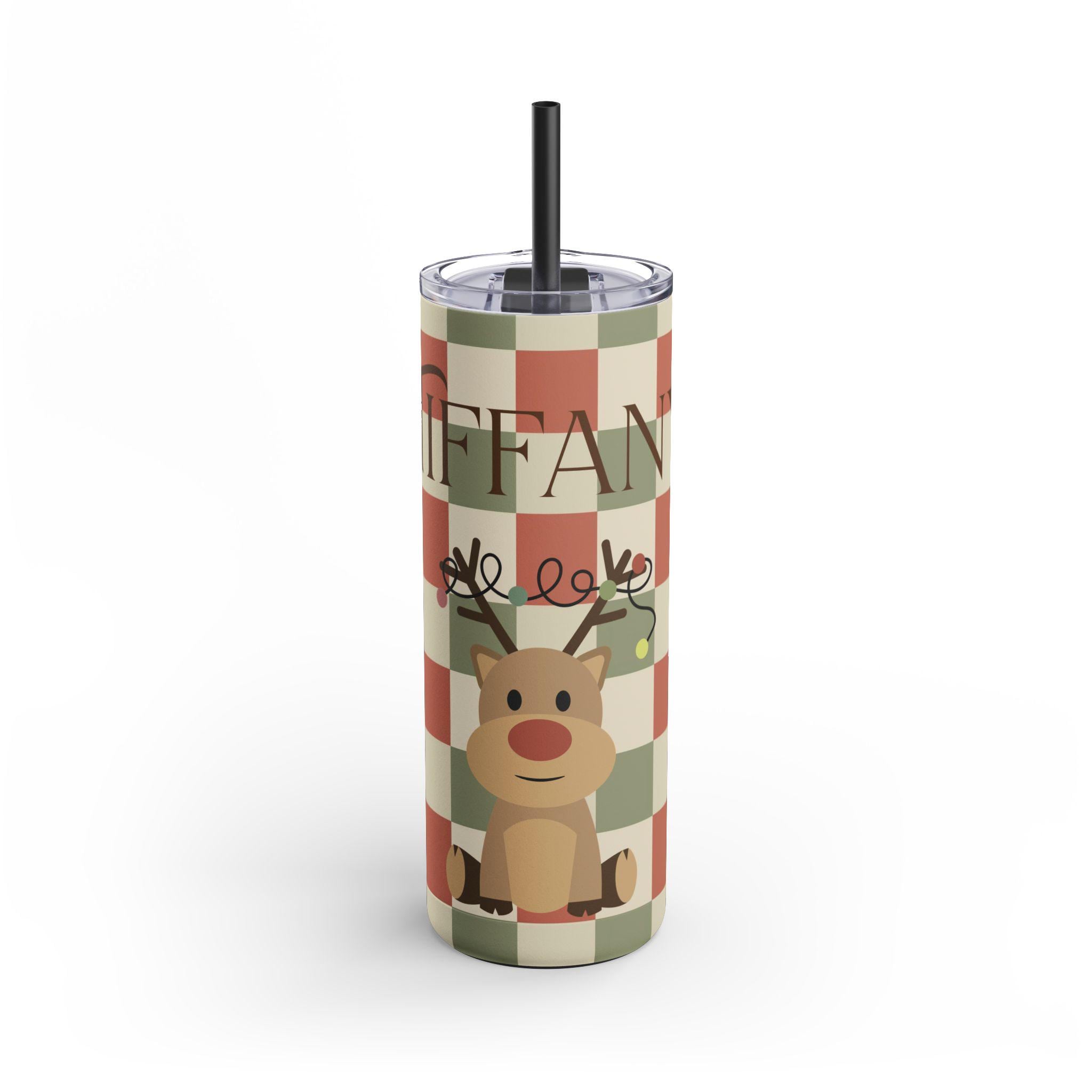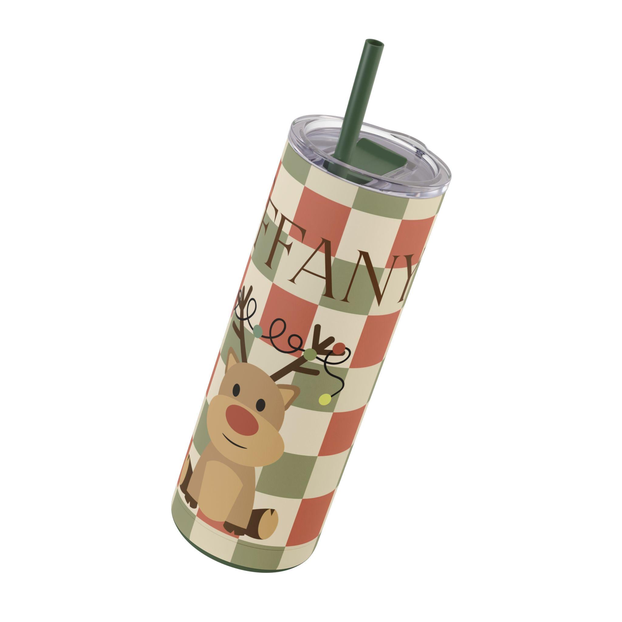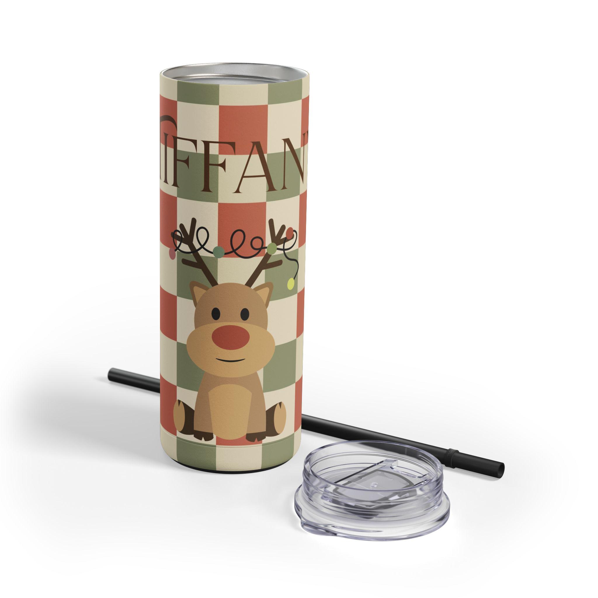 🎄 ✨ Celebrate the holidays with a touch of cozy cheer! This Personalized Reindeer Skinny Matte Tumbler combines playful Christmas vibes with everyday functionality. Featuring a cute reindeer wrapped in string lights on a warm red-and-sage plaid background, it’s a perfect mix of festive and functional design. Add your name or gift it personalized for someone special — it’s guaranteed to bring a smile all season long.