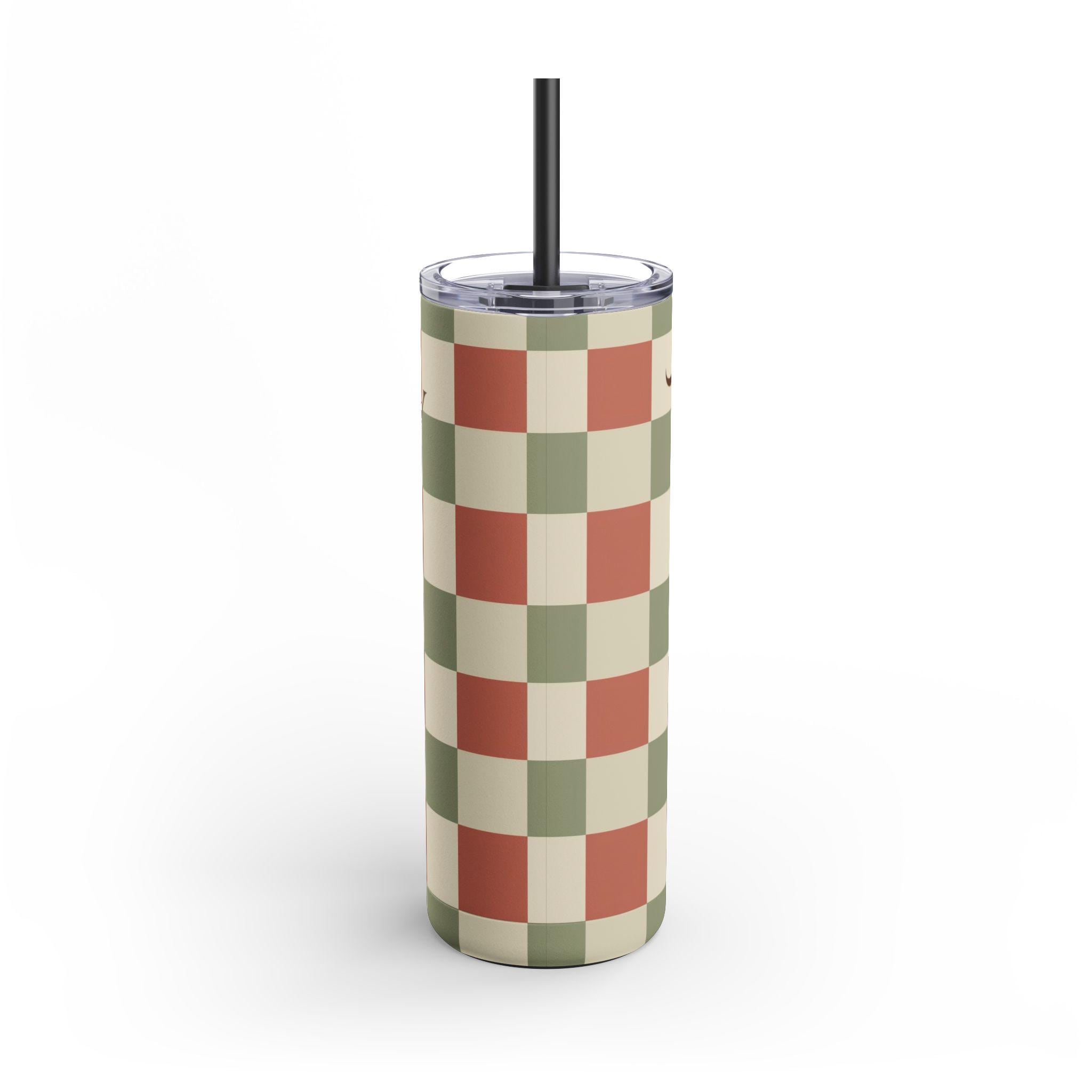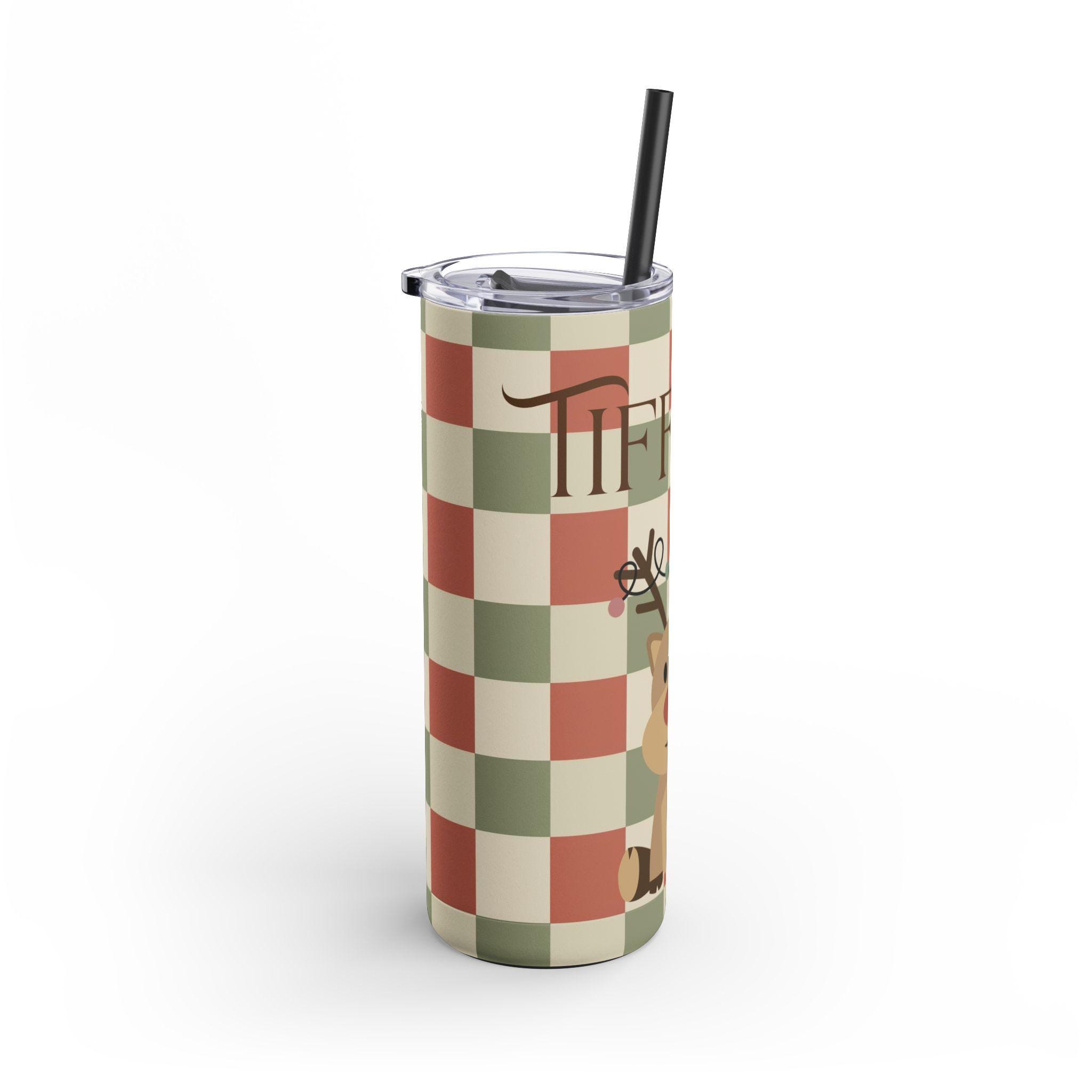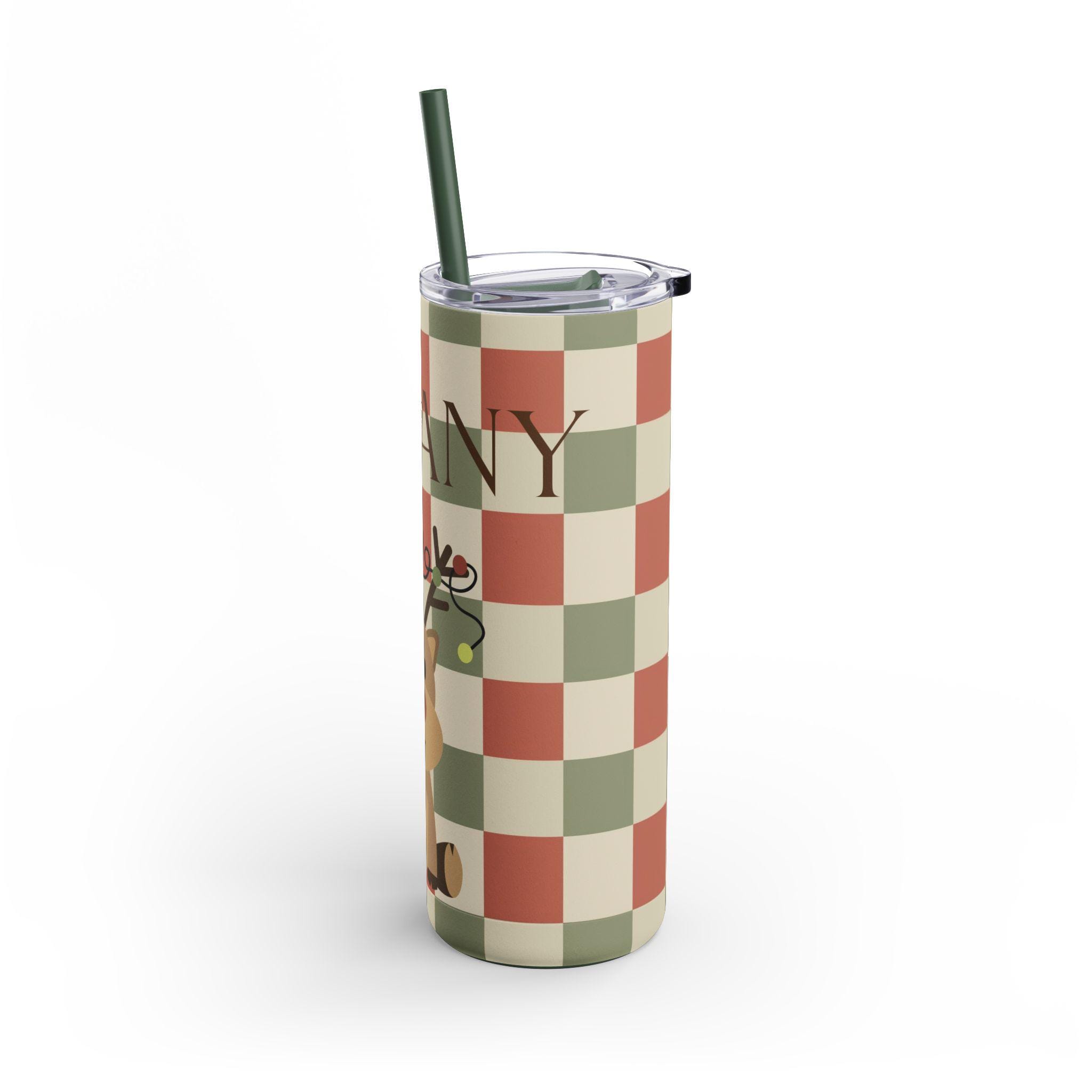 🎄 ✨ Celebrate the holidays with a touch of cozy cheer! This Personalized Reindeer Skinny Matte Tumbler combines playful Christmas vibes with everyday functionality. Featuring a cute reindeer wrapped in string lights on a warm red-and-sage plaid background, it’s a perfect mix of festive and functional design. Add your name or gift it personalized for someone special — it’s guaranteed to bring a smile all season long.