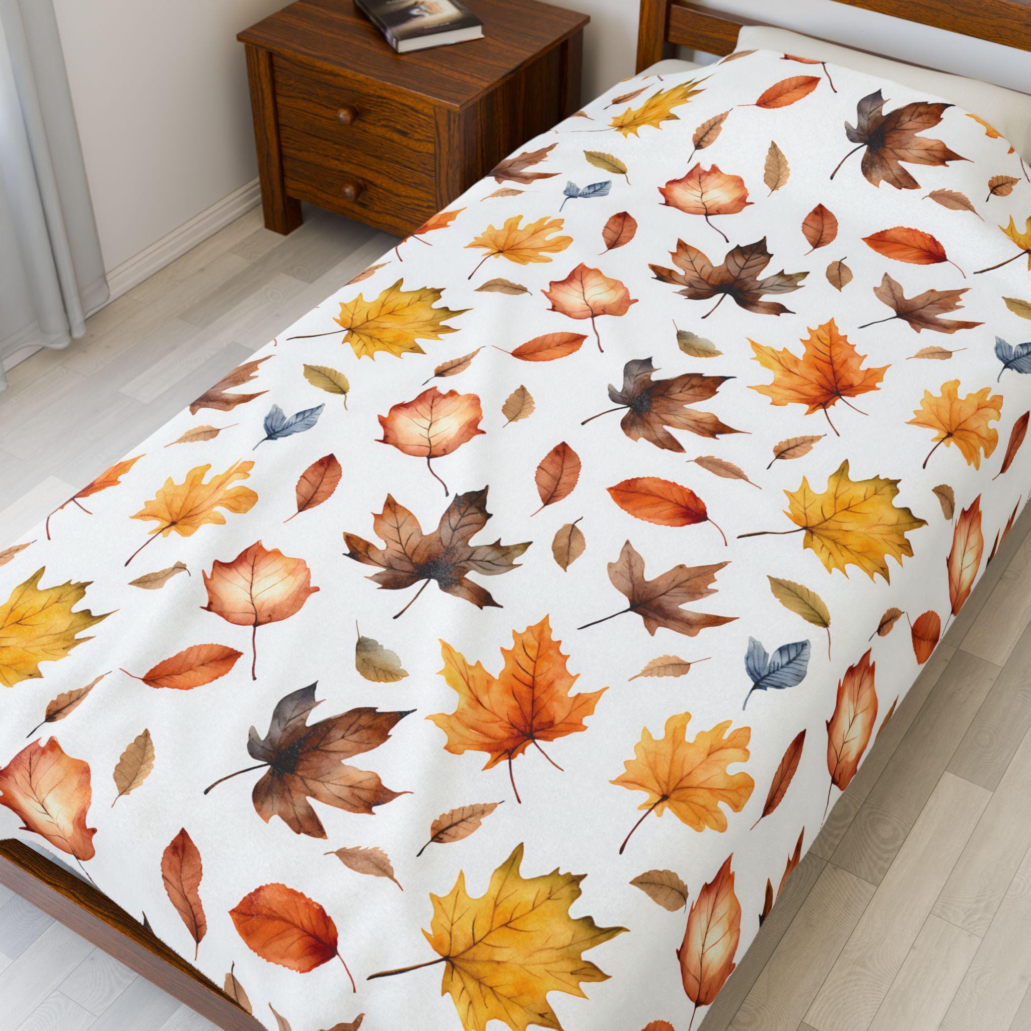 ✅ Soft velveteen texture with watercolor-style autumn leaves
