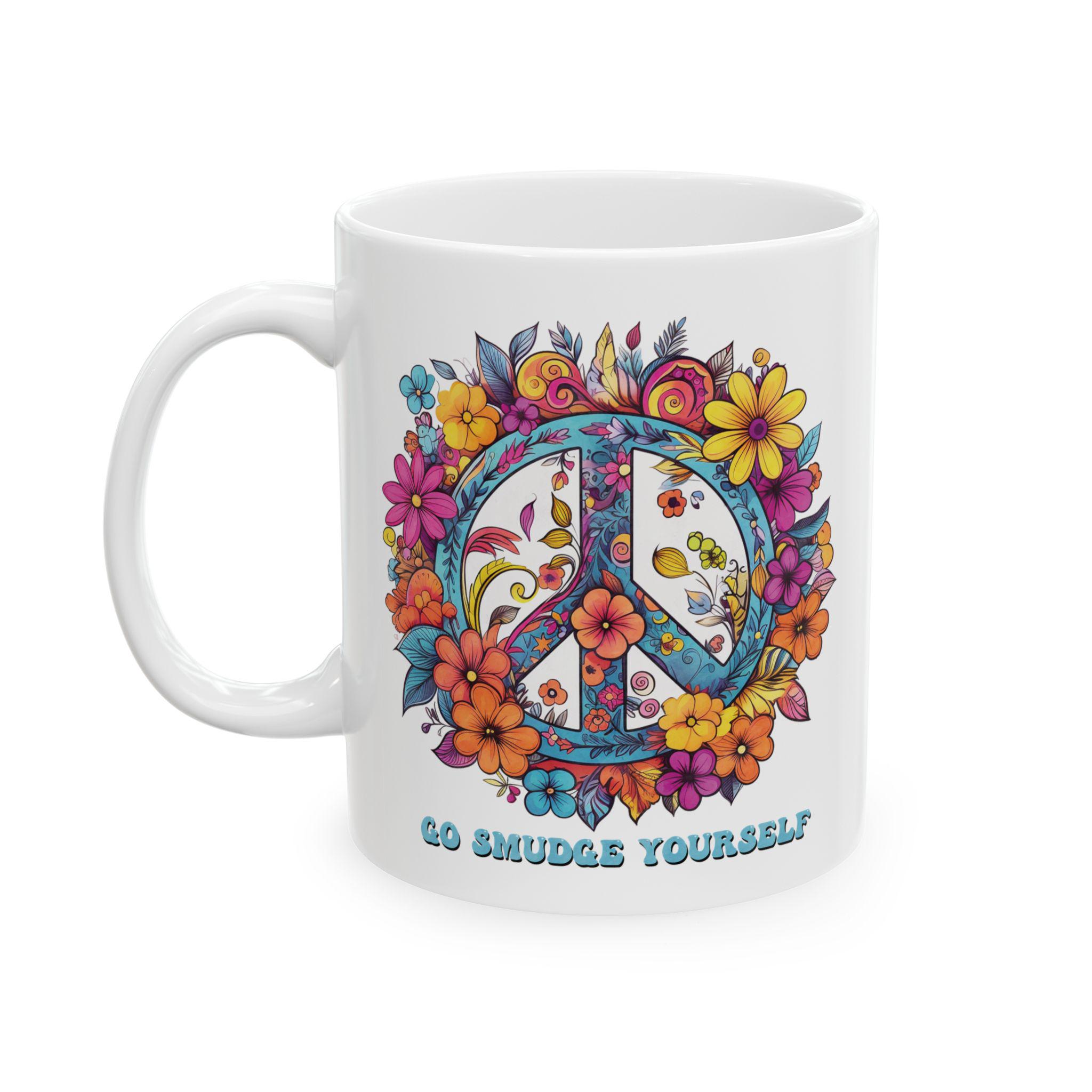 Our “Go Smudge Yourself” Mug is a playful nod to good vibes and self-care — perfect for anyone who loves a little sass with their spirituality. Featuring a vibrant floral peace sign on both sides, this mug brings a cheerful pop of color to your coffee, tea, or cocoa moments.