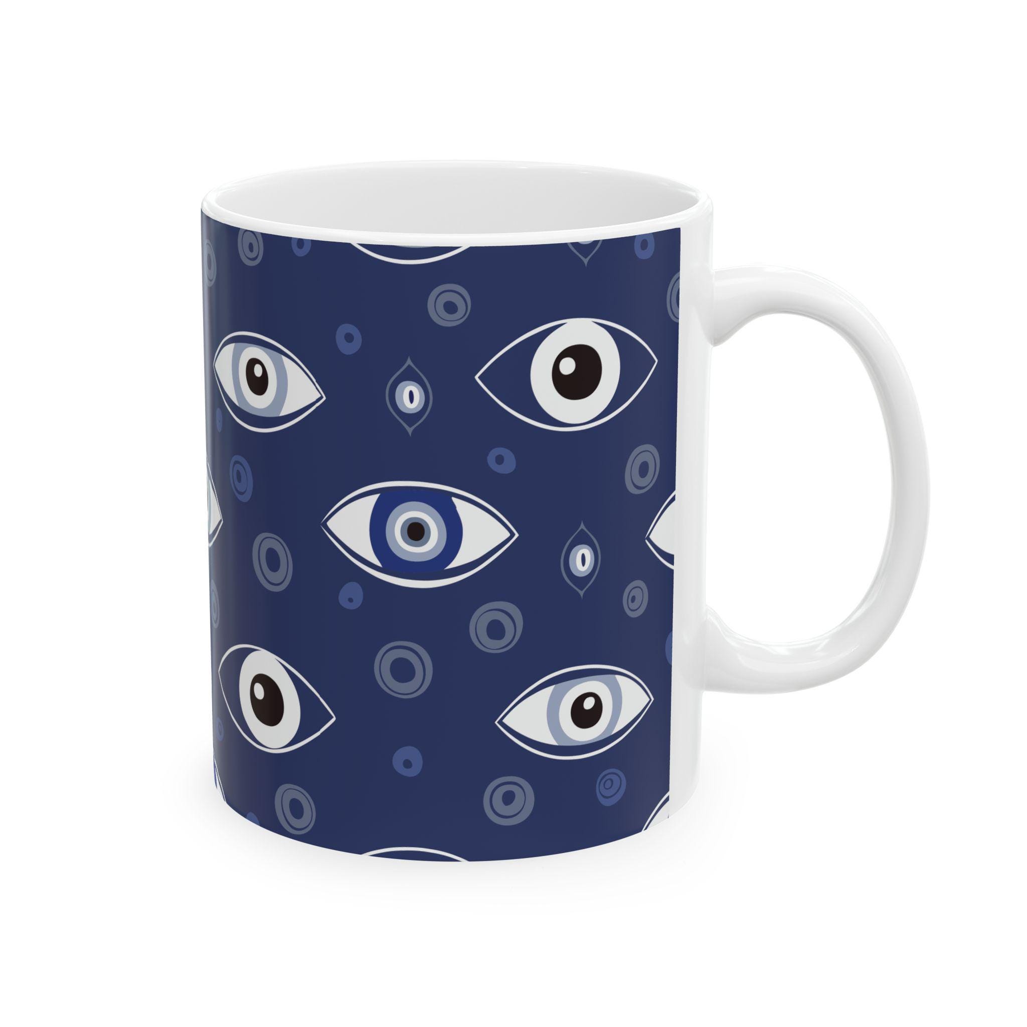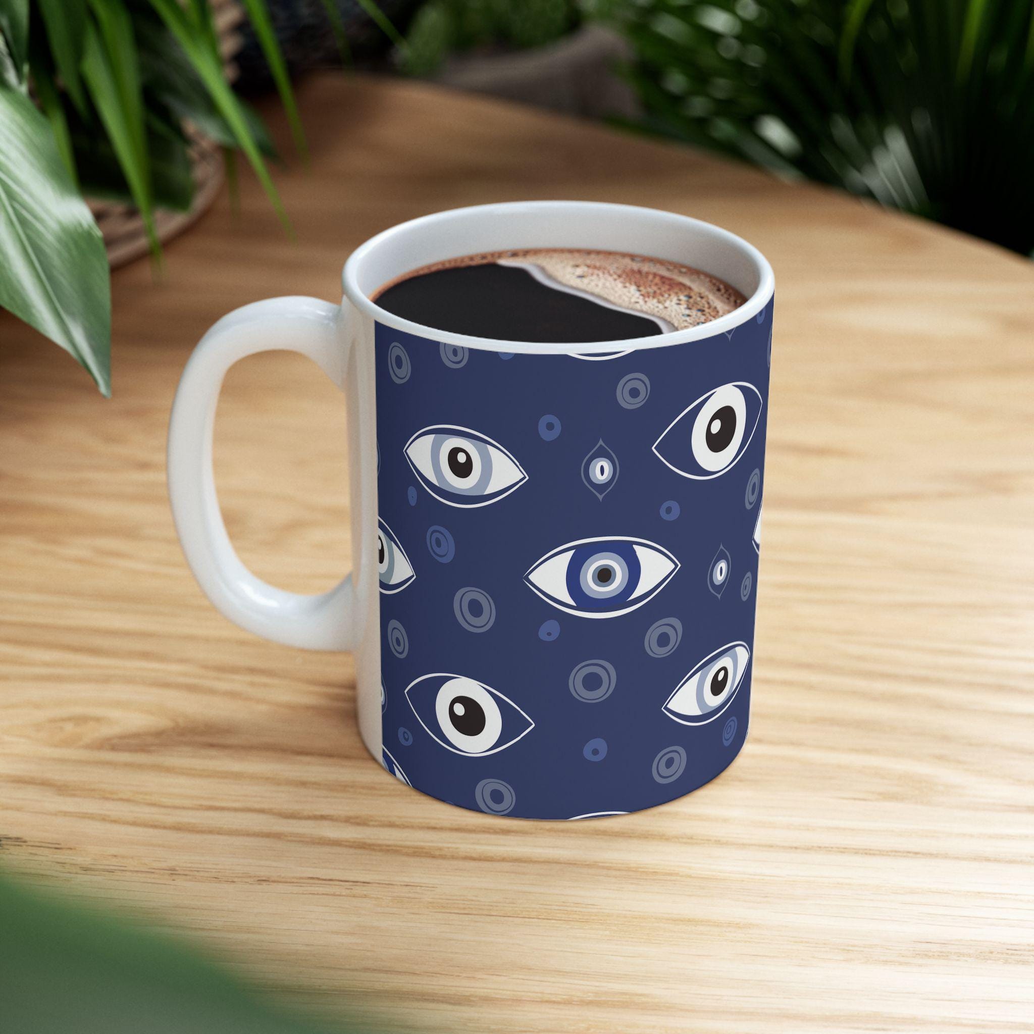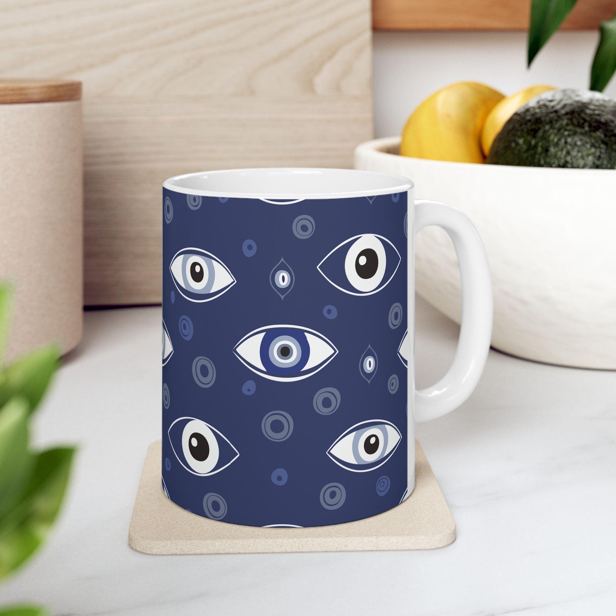 🧿 Protect your peace (and your caffeine) with this beautifully patterned Evil Eye Mug. 💙