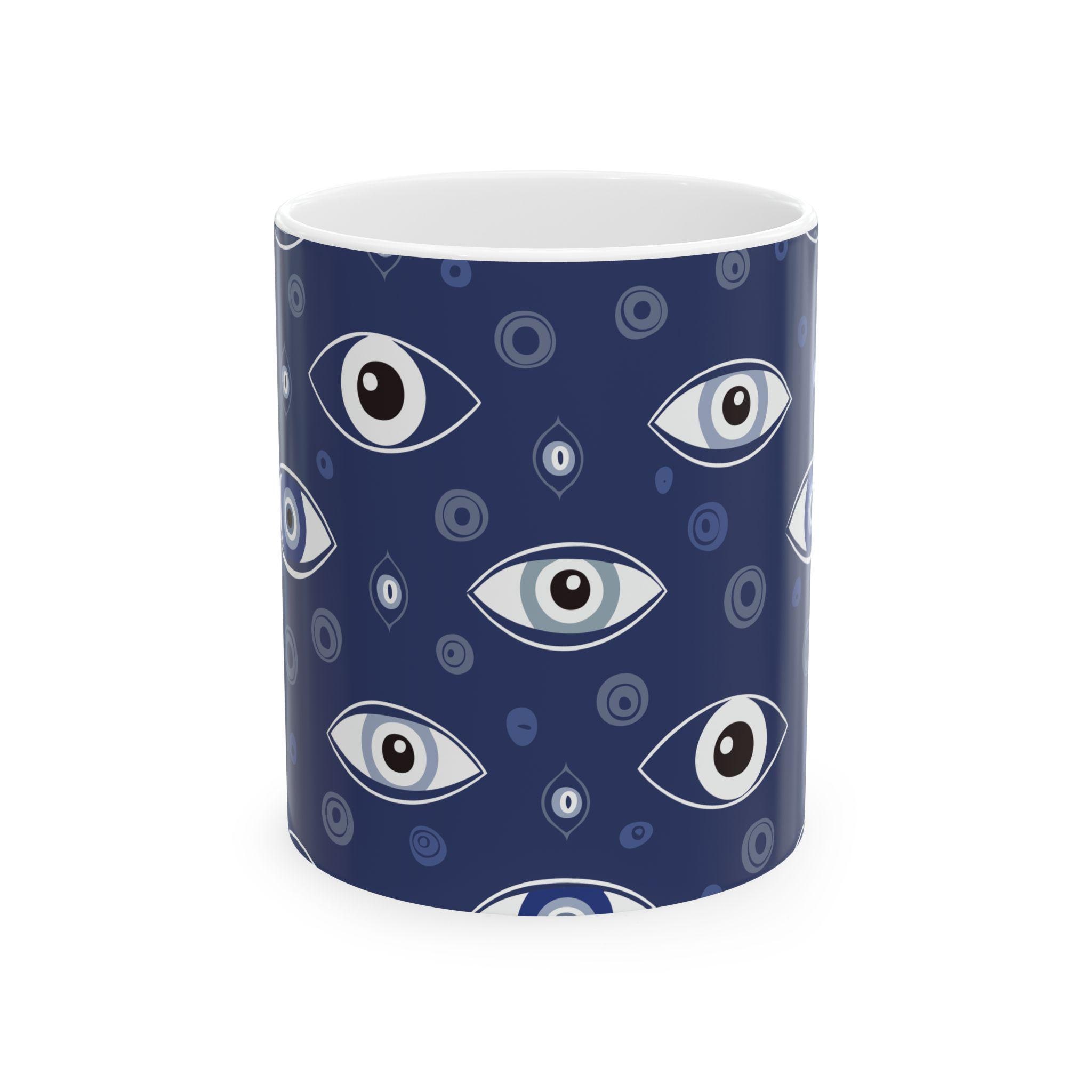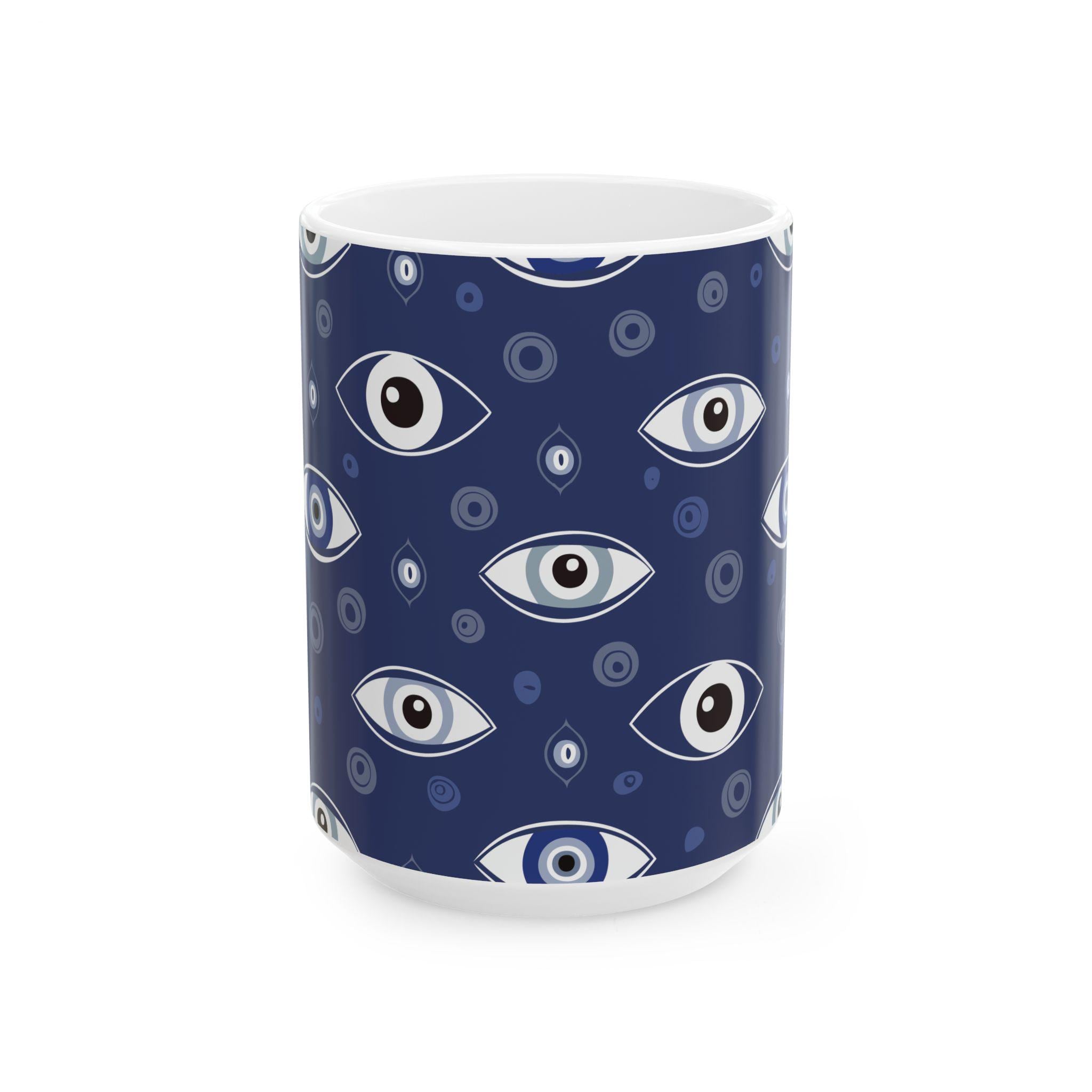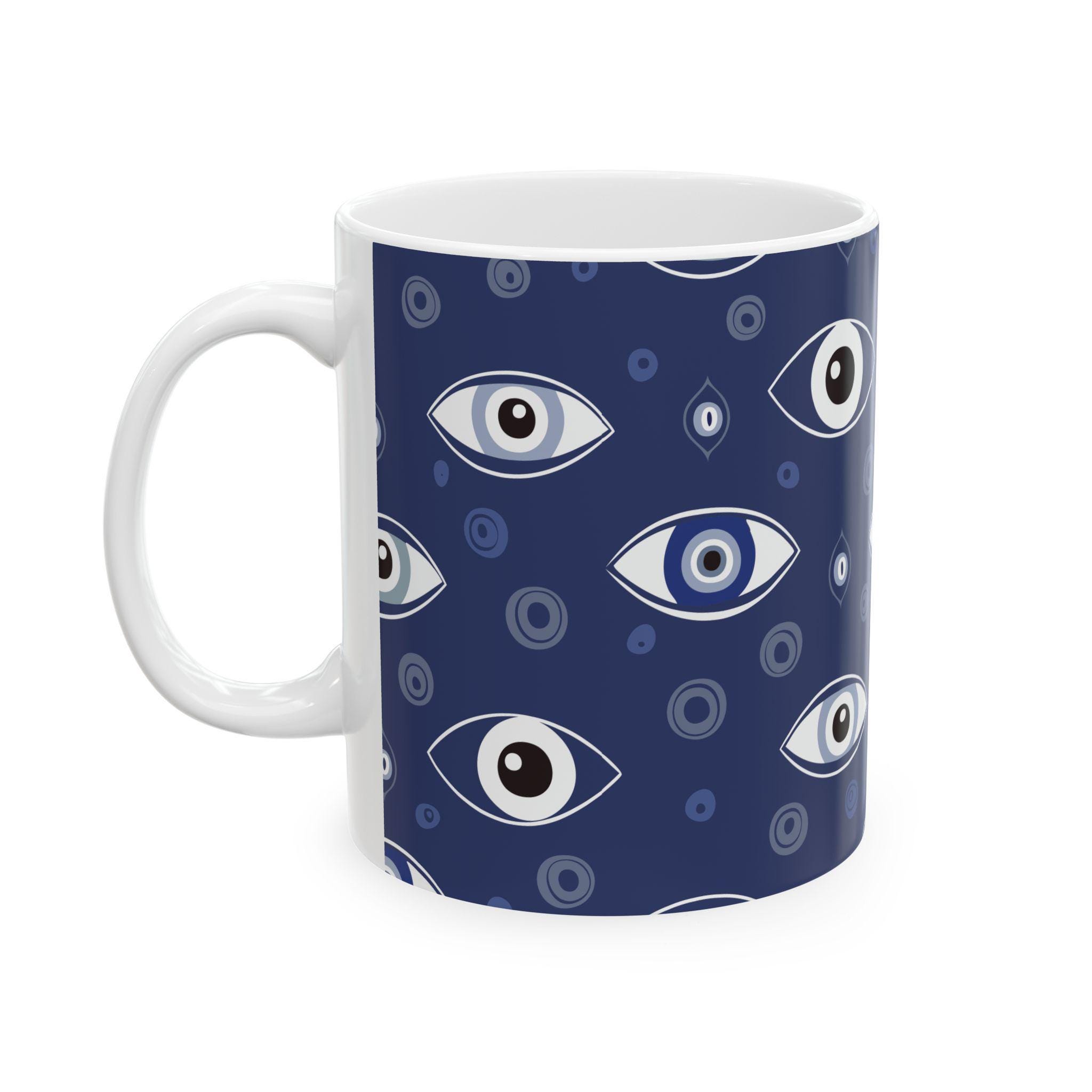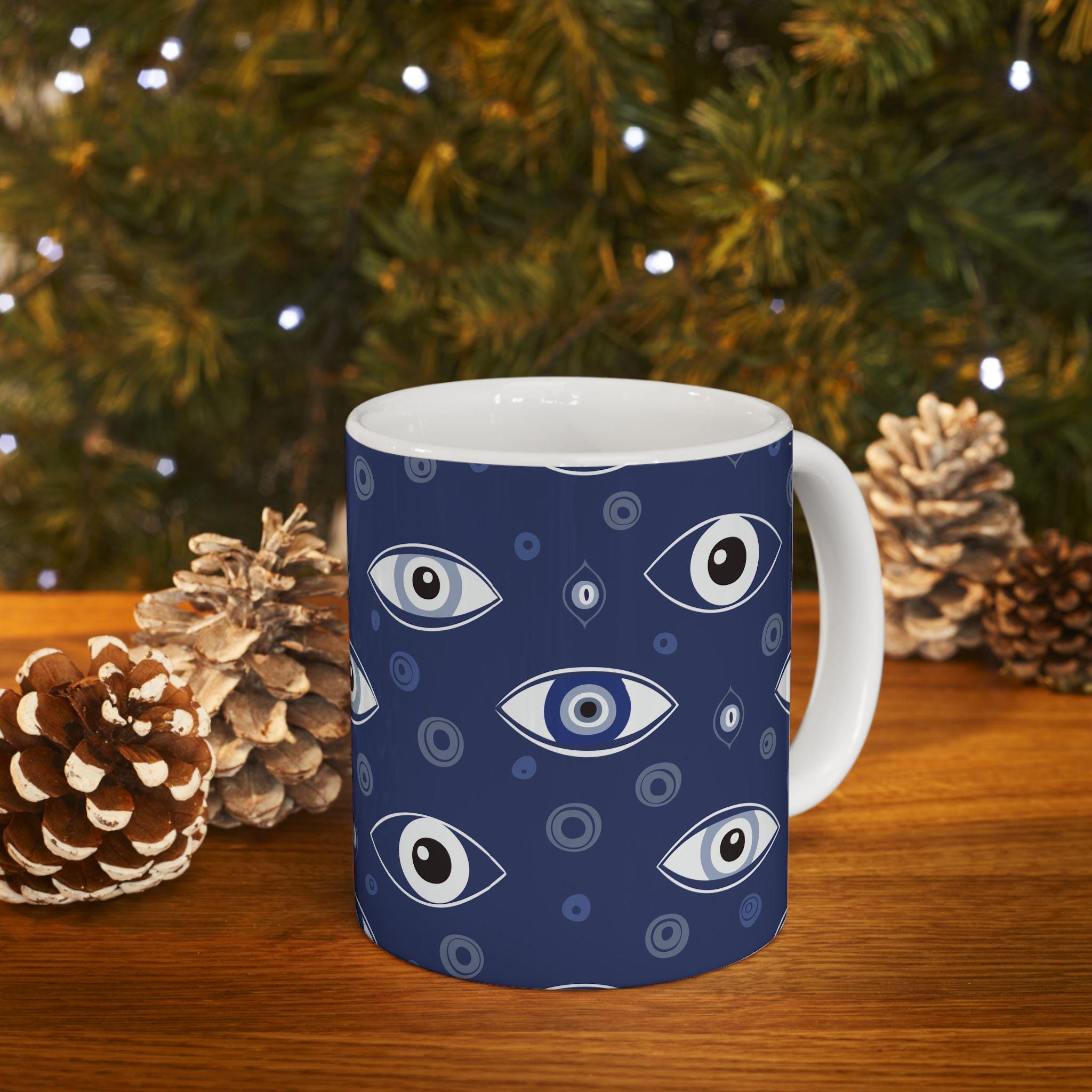🧿 Protect your peace (and your caffeine) with this beautifully patterned Evil Eye Mug. 💙