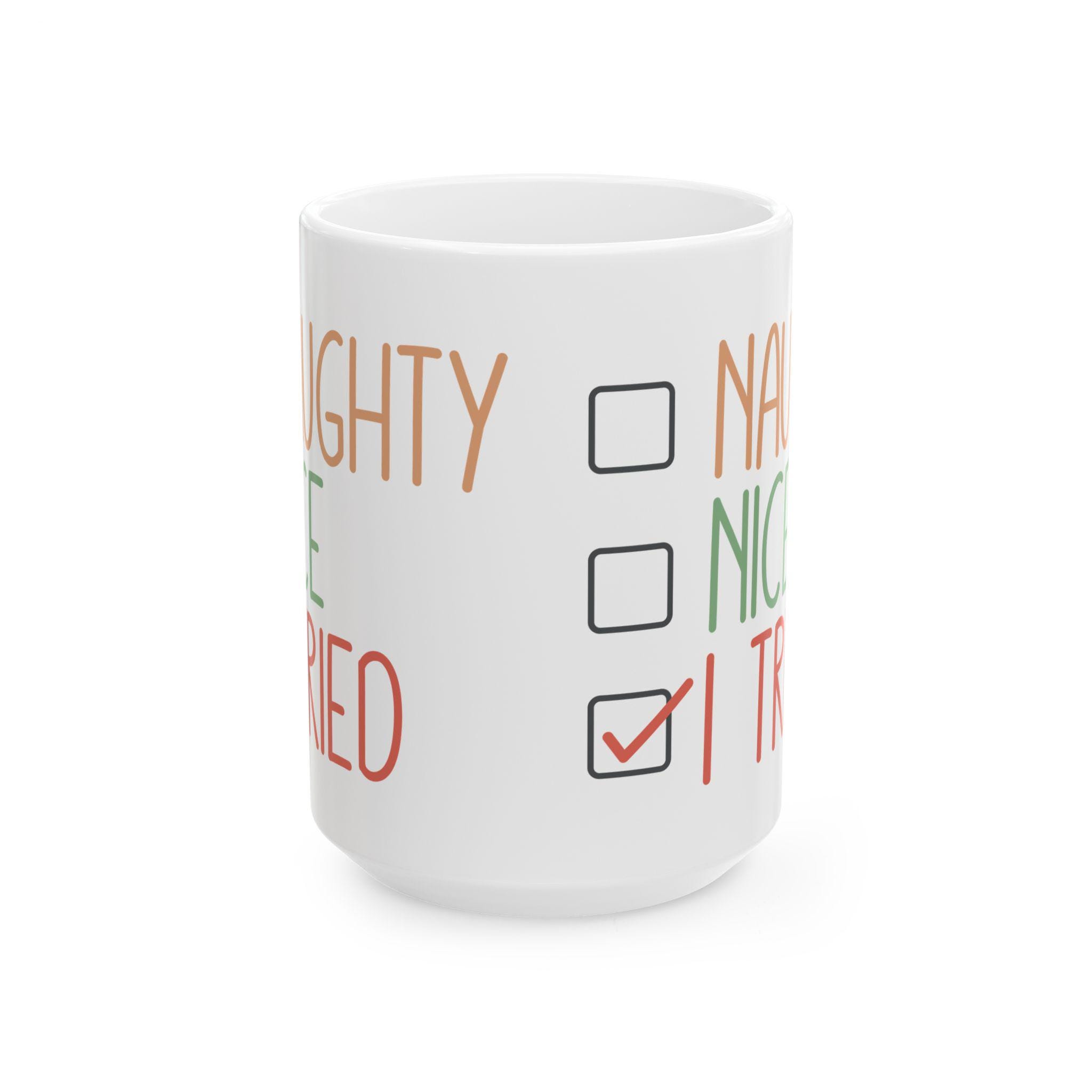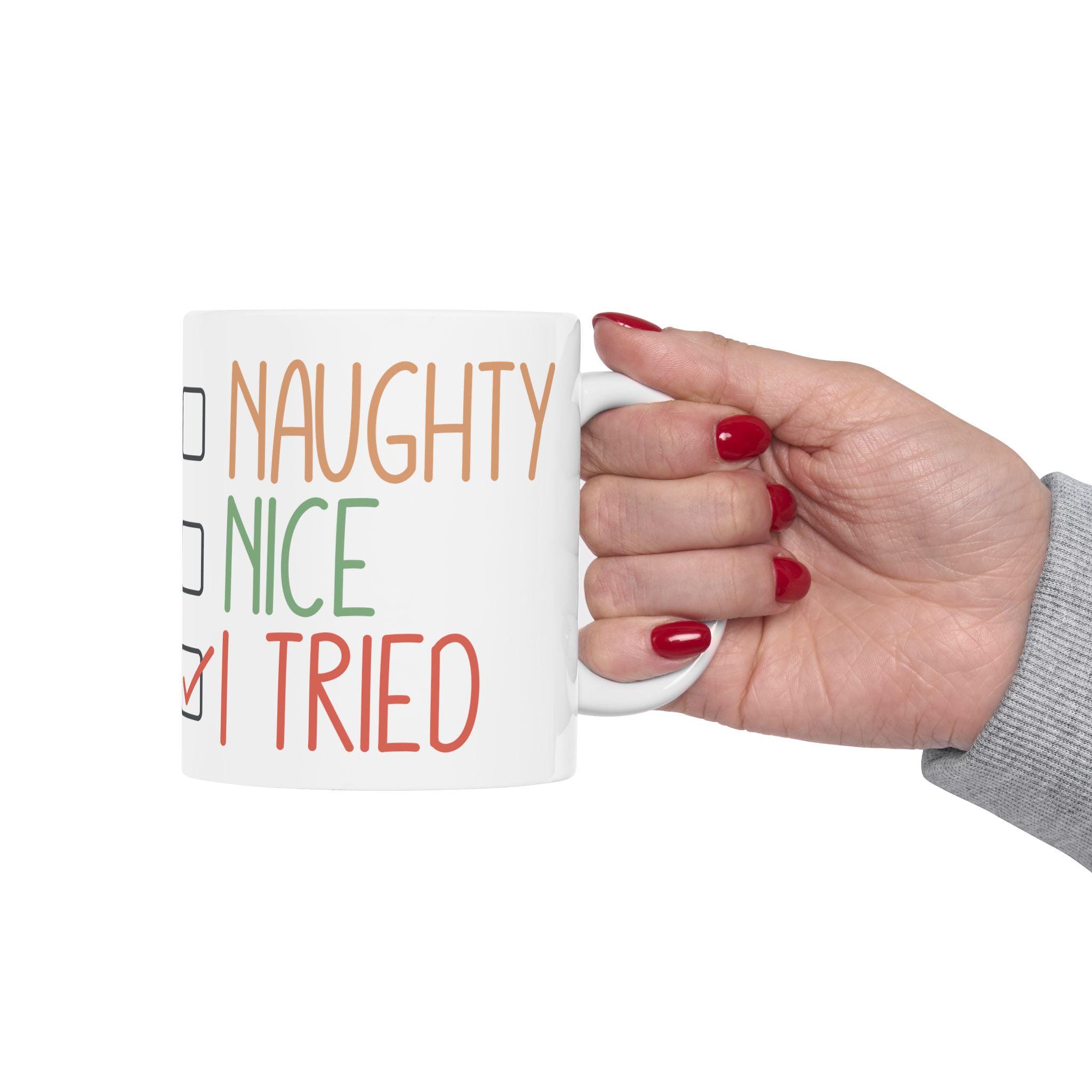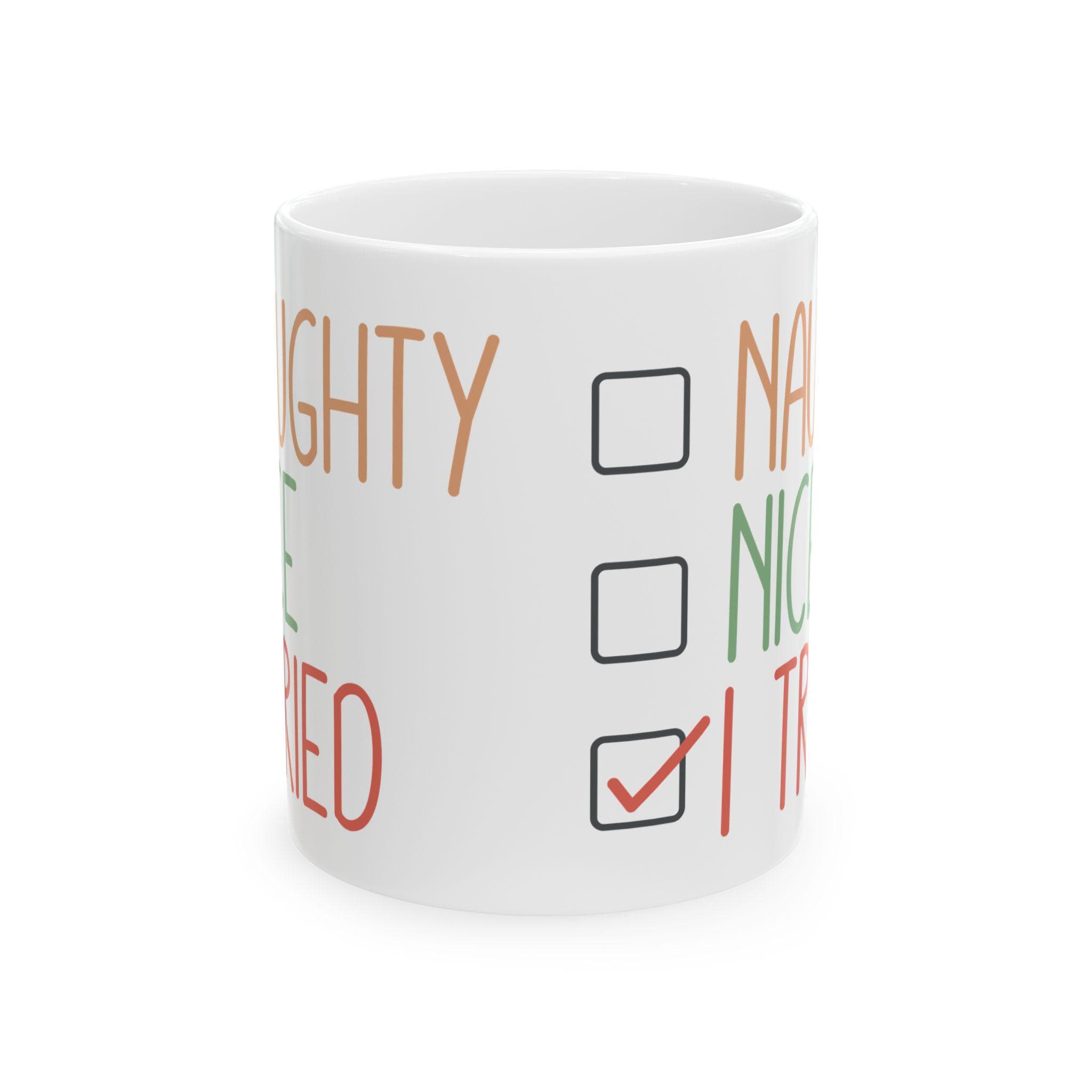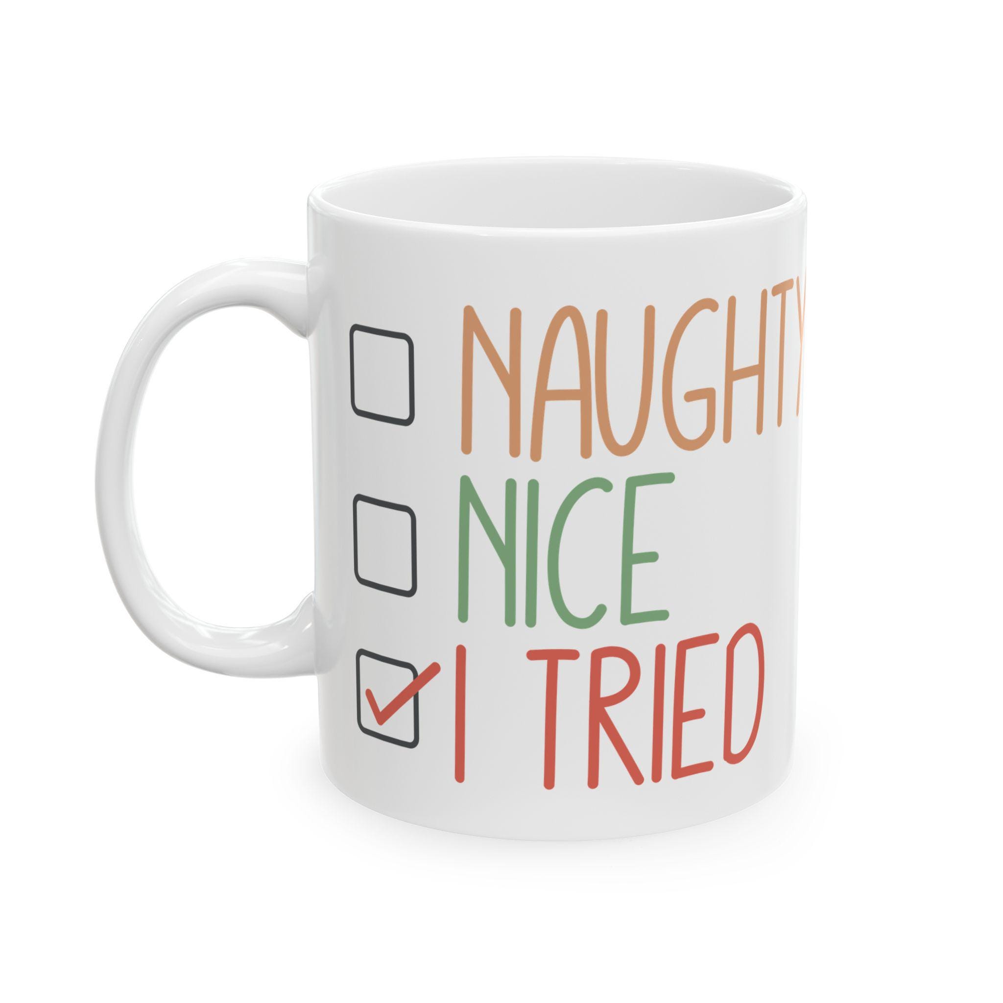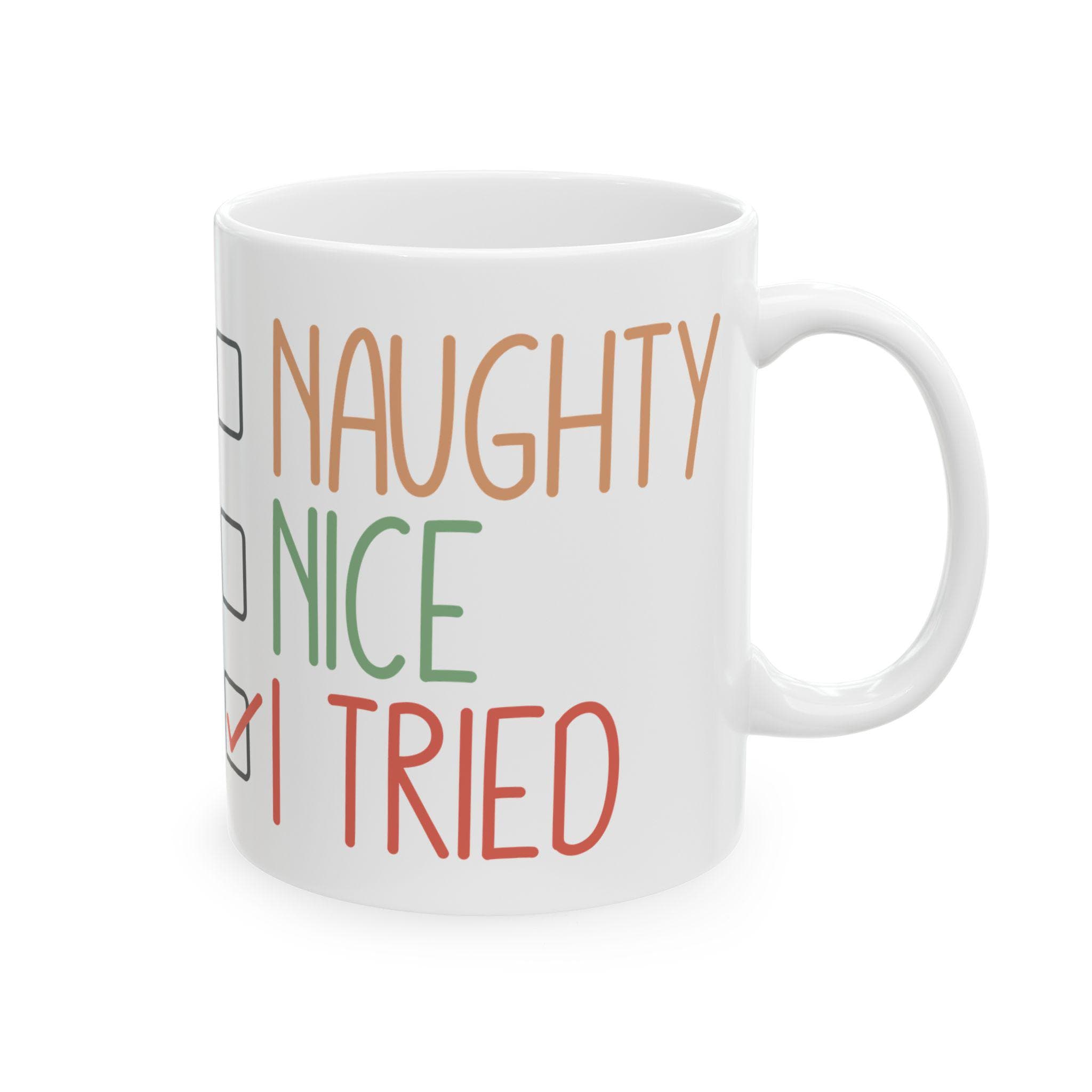 Our “Naughty, Nice, I Tried” Mug is the perfect mix of humor and holiday spirit — because we’ve all been there. This playful two-sided design adds a dash of personality to your morning coffee, tea, or hot cocoa, making it a must-have for cozy winter mornings and festive gatherings.