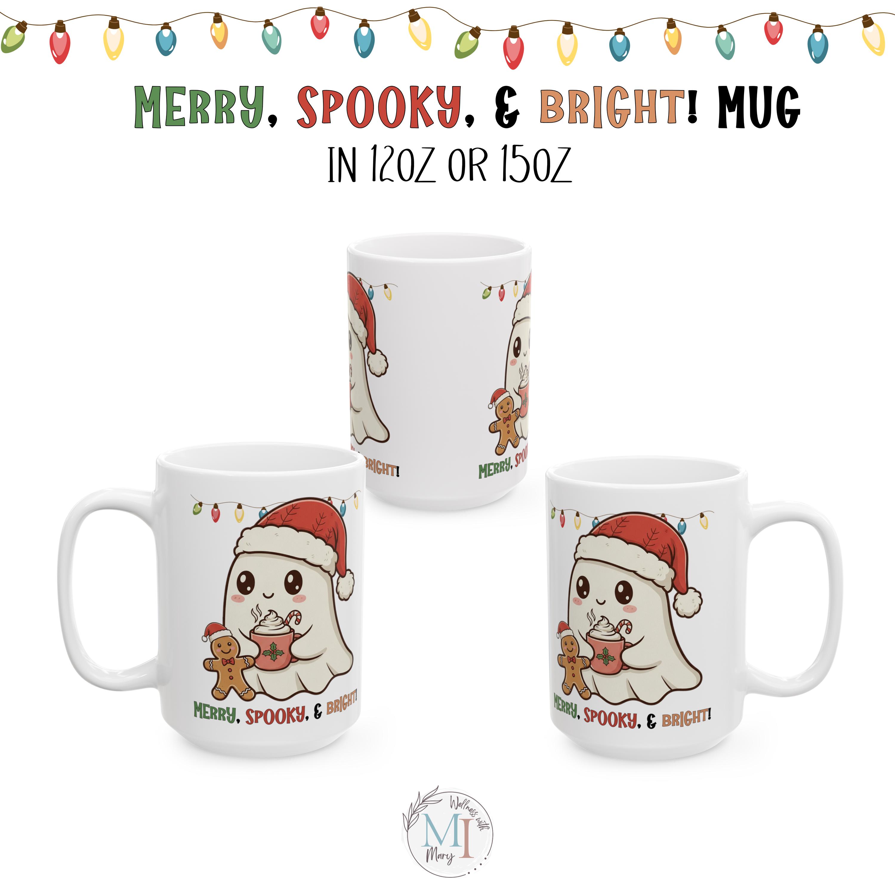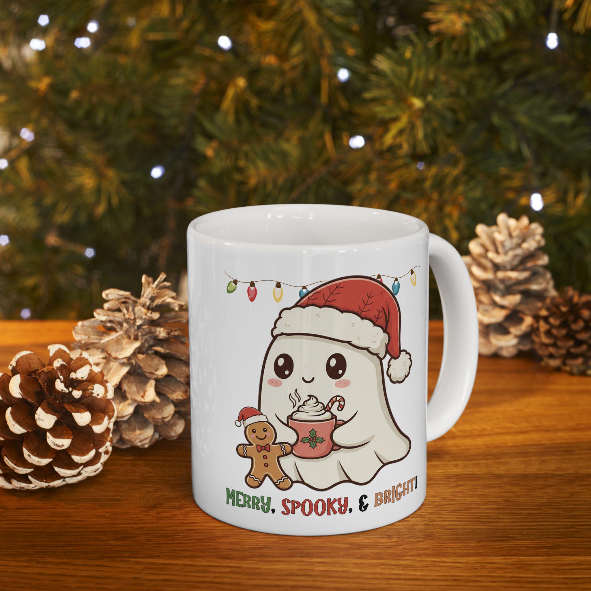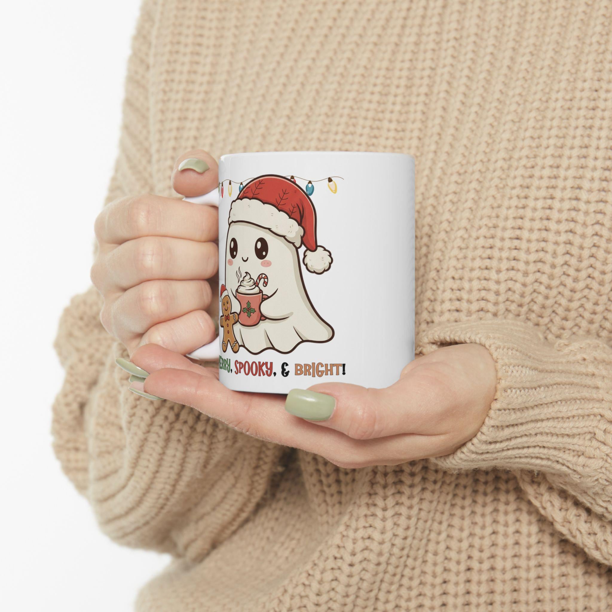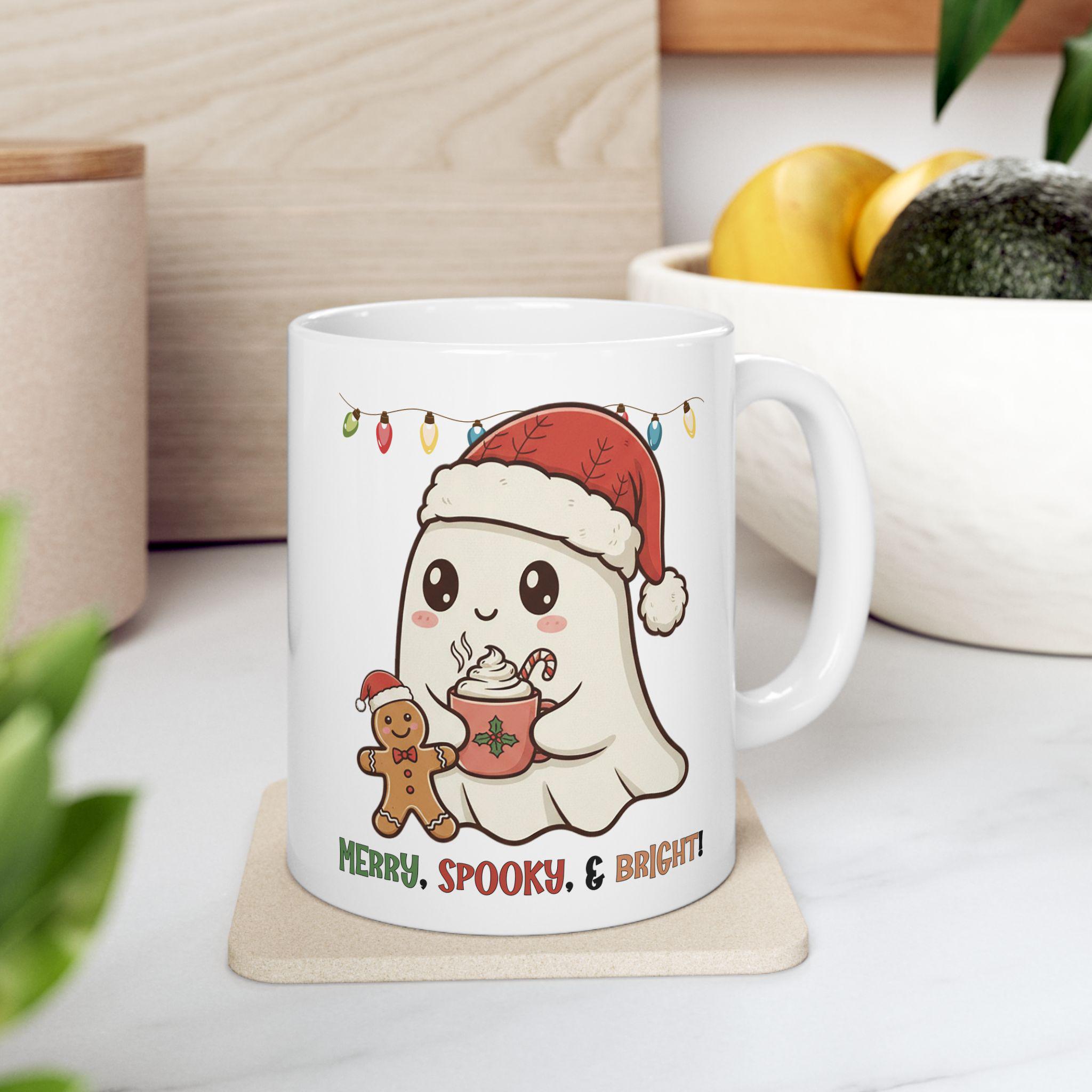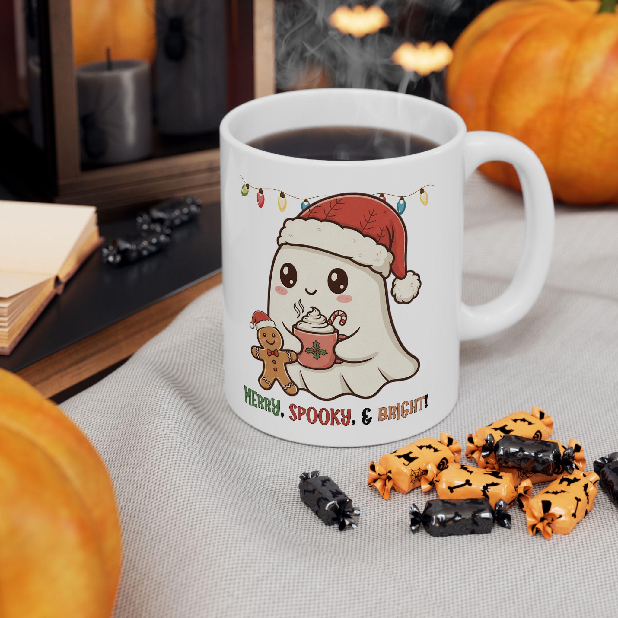๐ ๐ฏ๏ธ โ Celebrate both your spooky side and your holiday spirit with this adorable โMerry, Spooky, and Bright!โ ghost mug! Featuring a cute ghost in a Santa hat holding cocoa and a gingerbread cookie, this festive crossover mug is perfect for those who live for Halloween and love Christmas cheer.