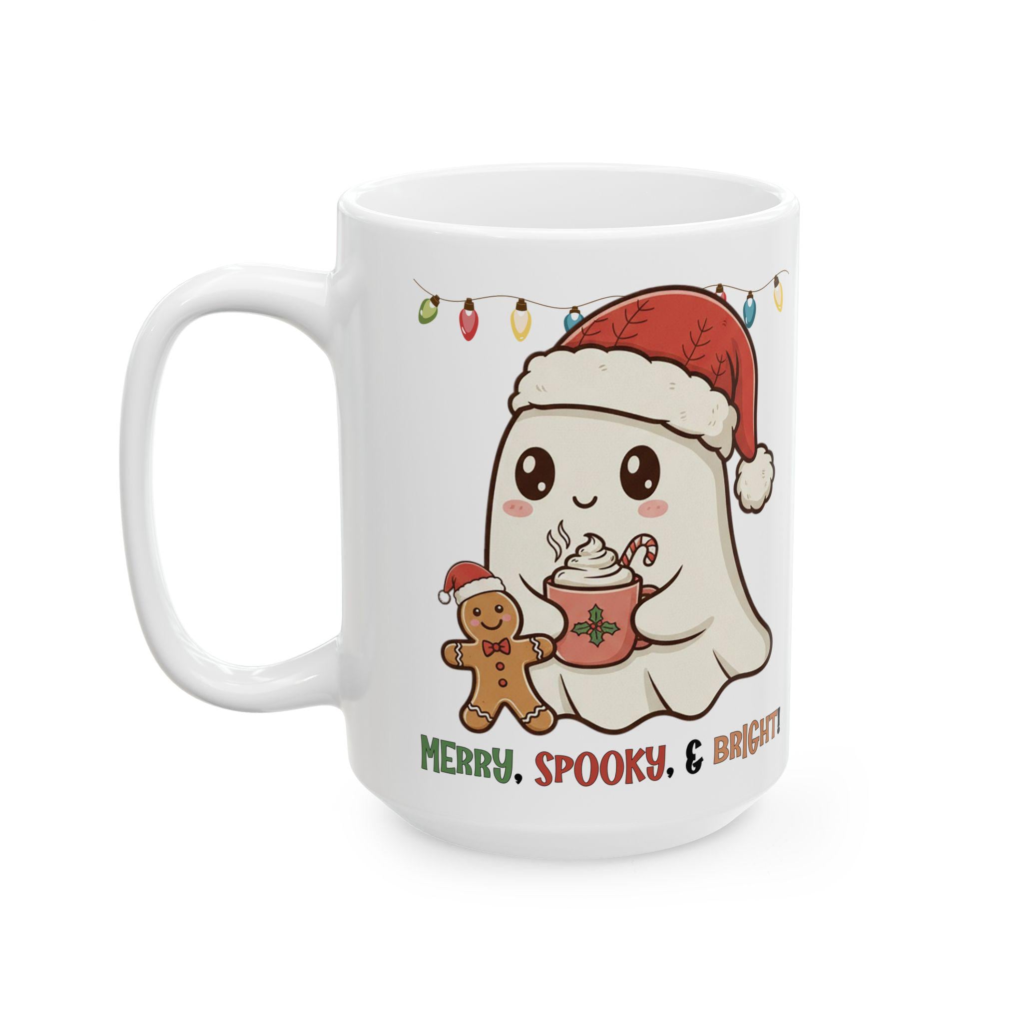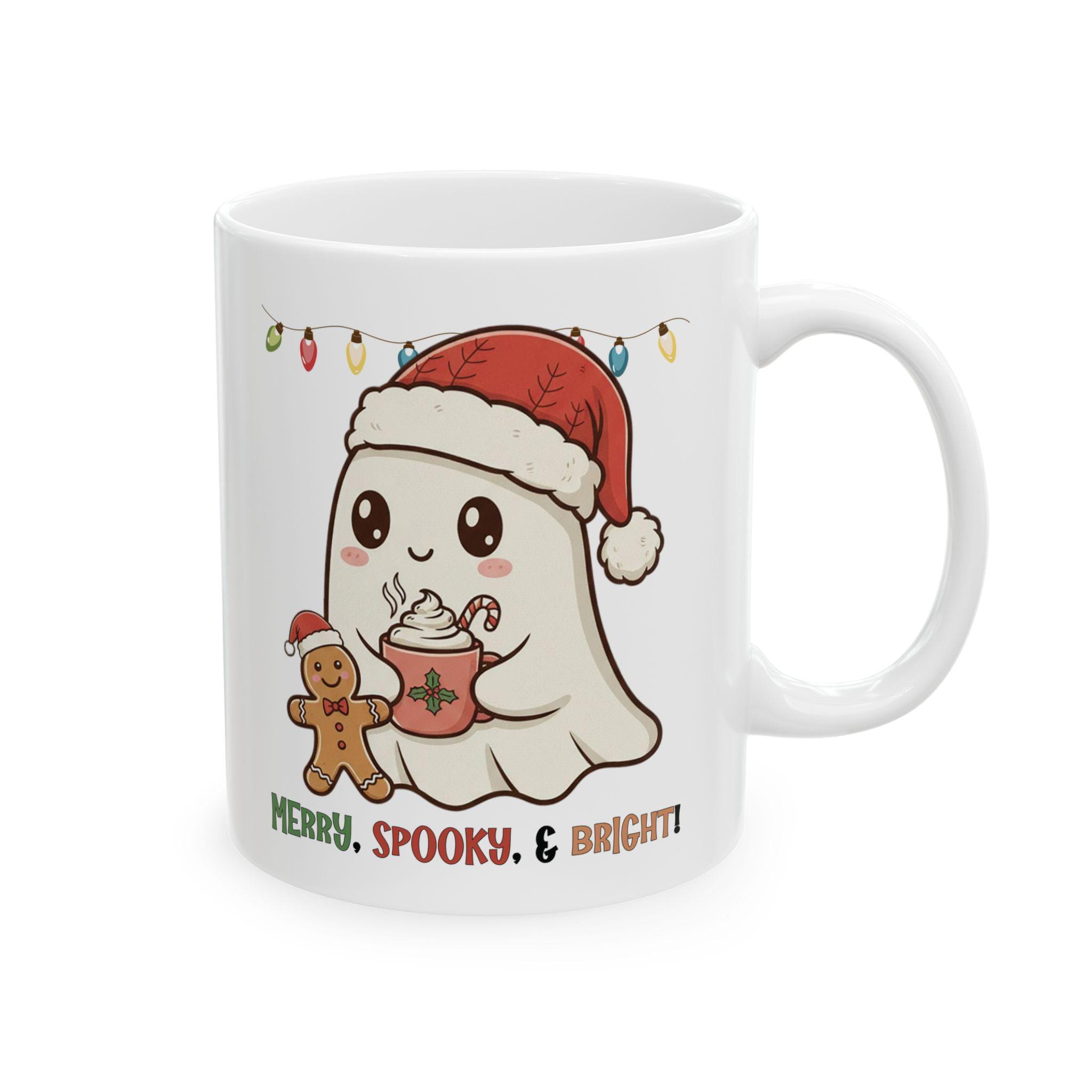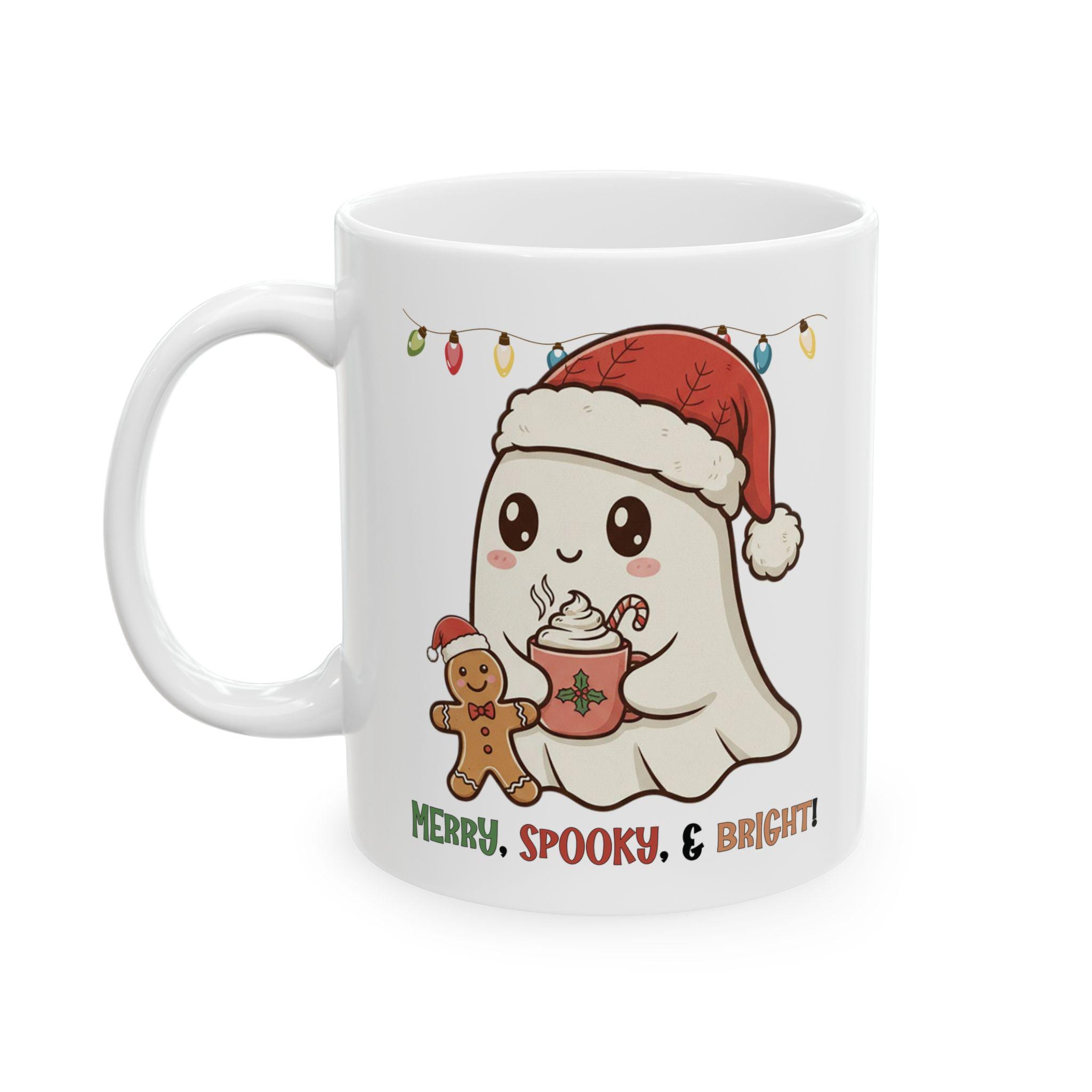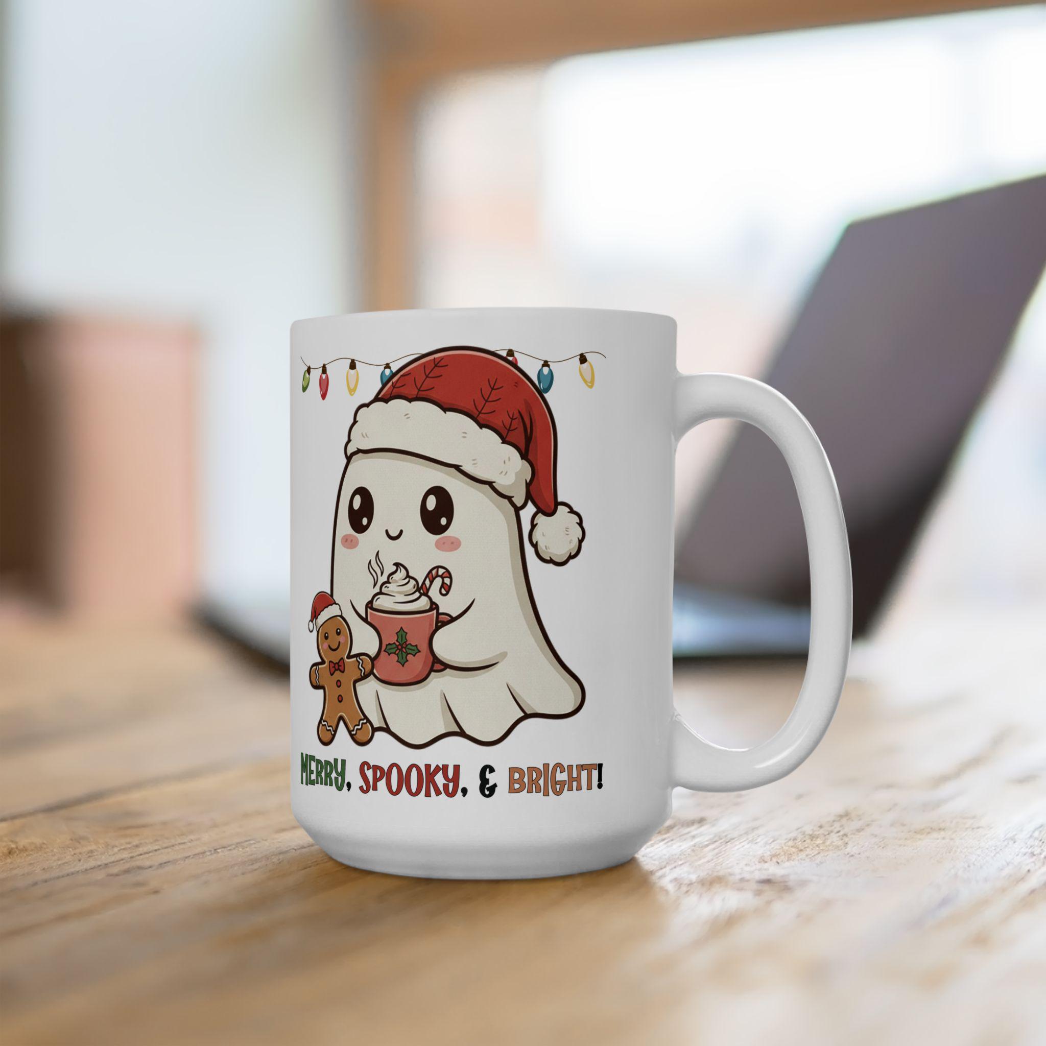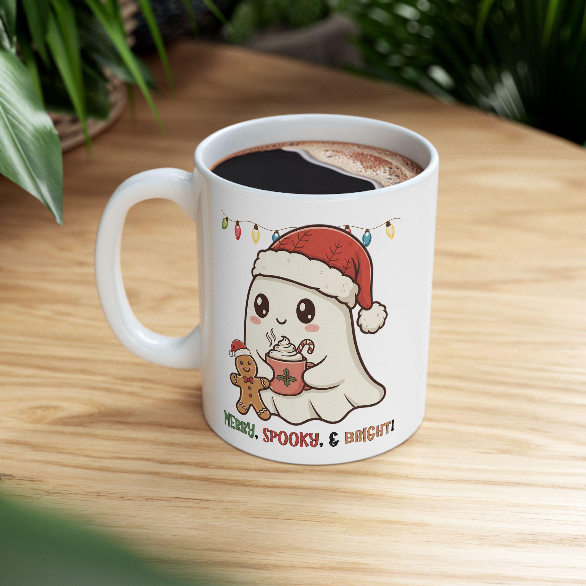 ๐ ๐ฏ๏ธ โ Celebrate both your spooky side and your holiday spirit with this adorable โMerry, Spooky, and Bright!โ ghost mug! Featuring a cute ghost in a Santa hat holding cocoa and a gingerbread cookie, this festive crossover mug is perfect for those who live for Halloween and love Christmas cheer.