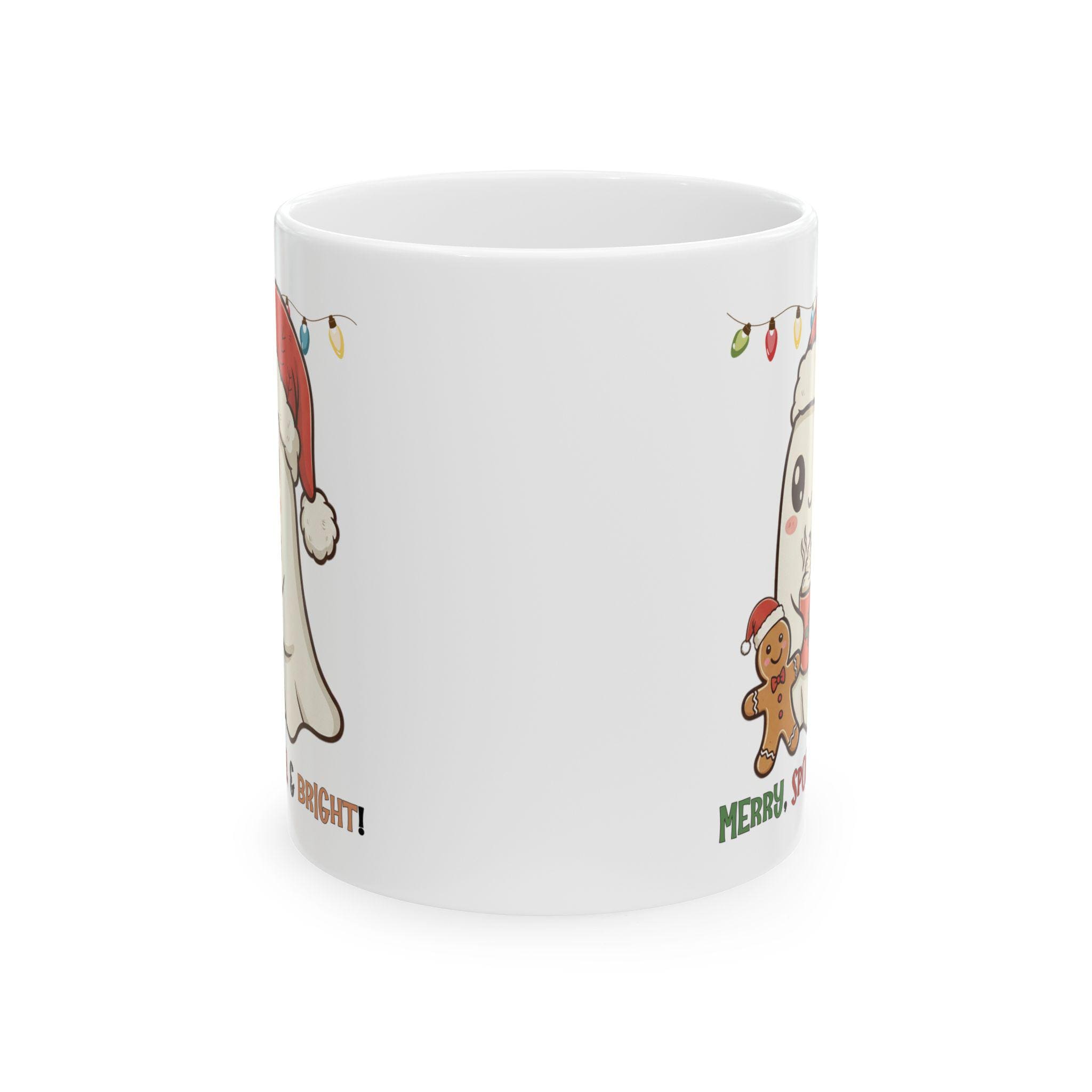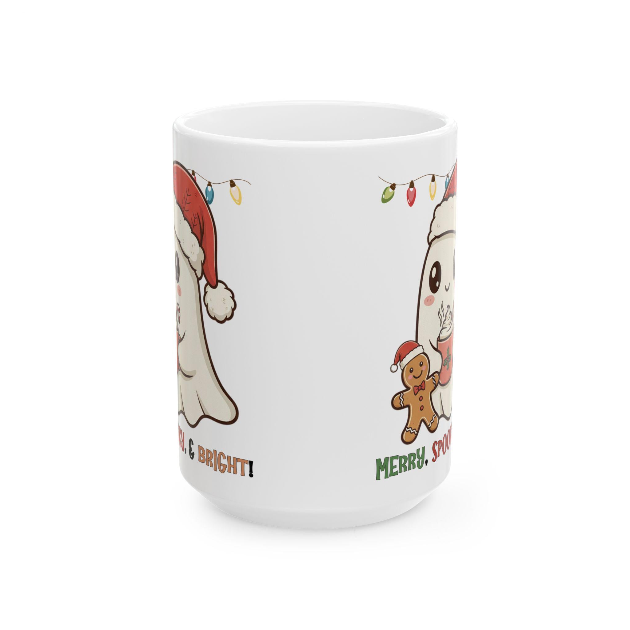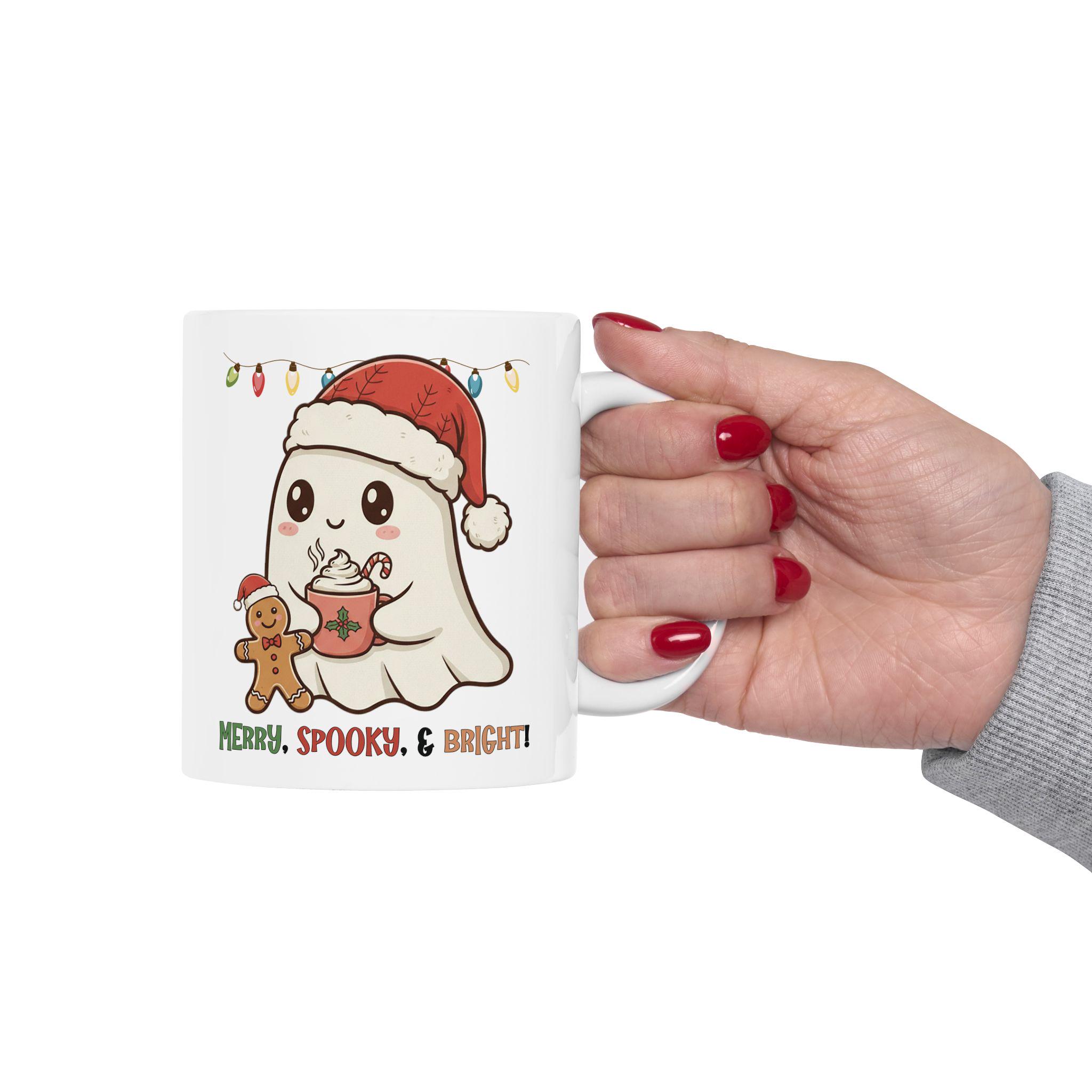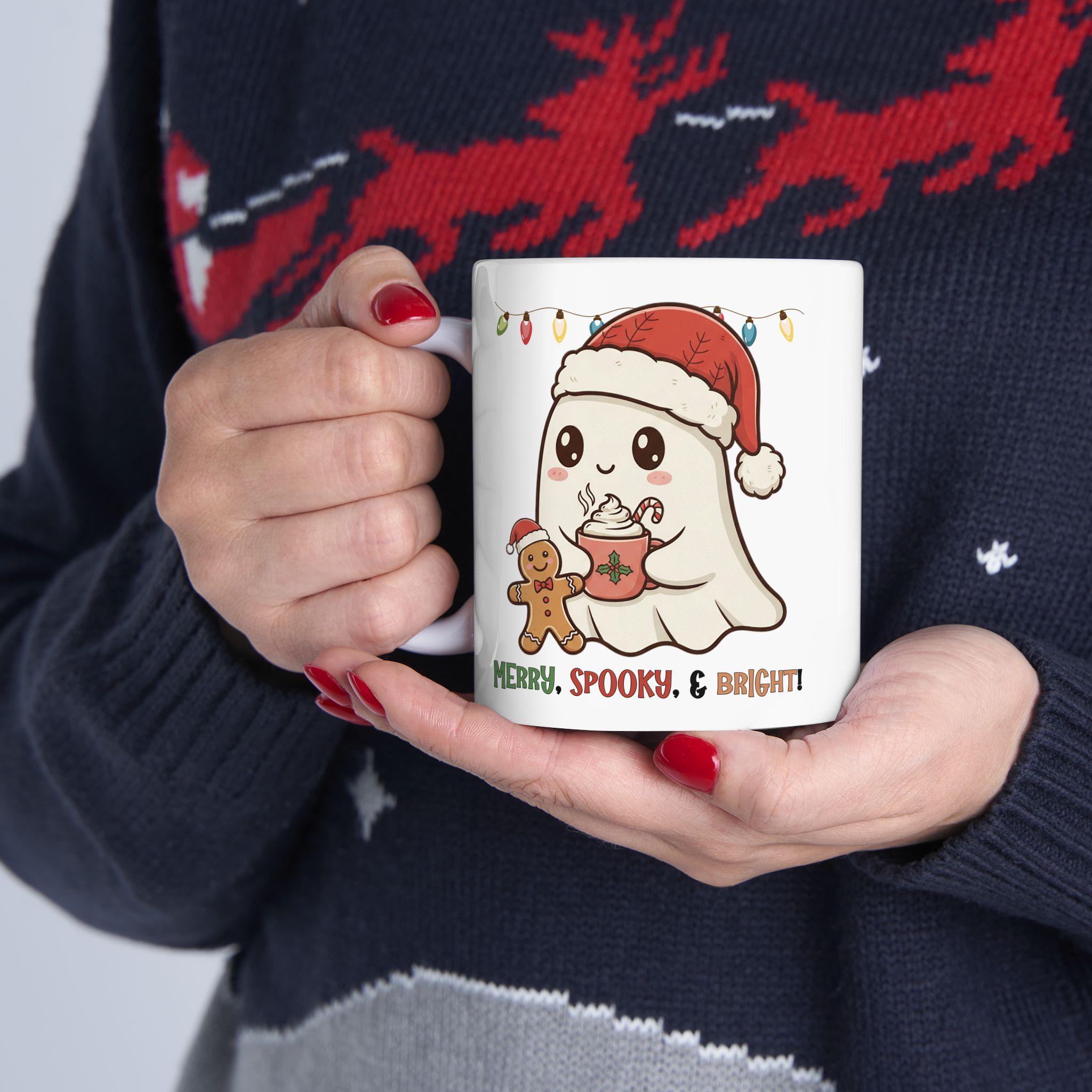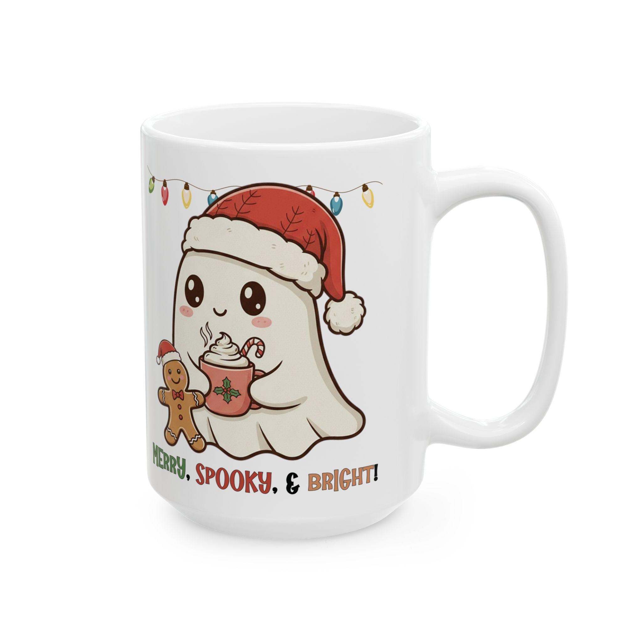 ๐ ๐ฏ๏ธ โ Celebrate both your spooky side and your holiday spirit with this adorable โMerry, Spooky, and Bright!โ ghost mug! Featuring a cute ghost in a Santa hat holding cocoa and a gingerbread cookie, this festive crossover mug is perfect for those who live for Halloween and love Christmas cheer.