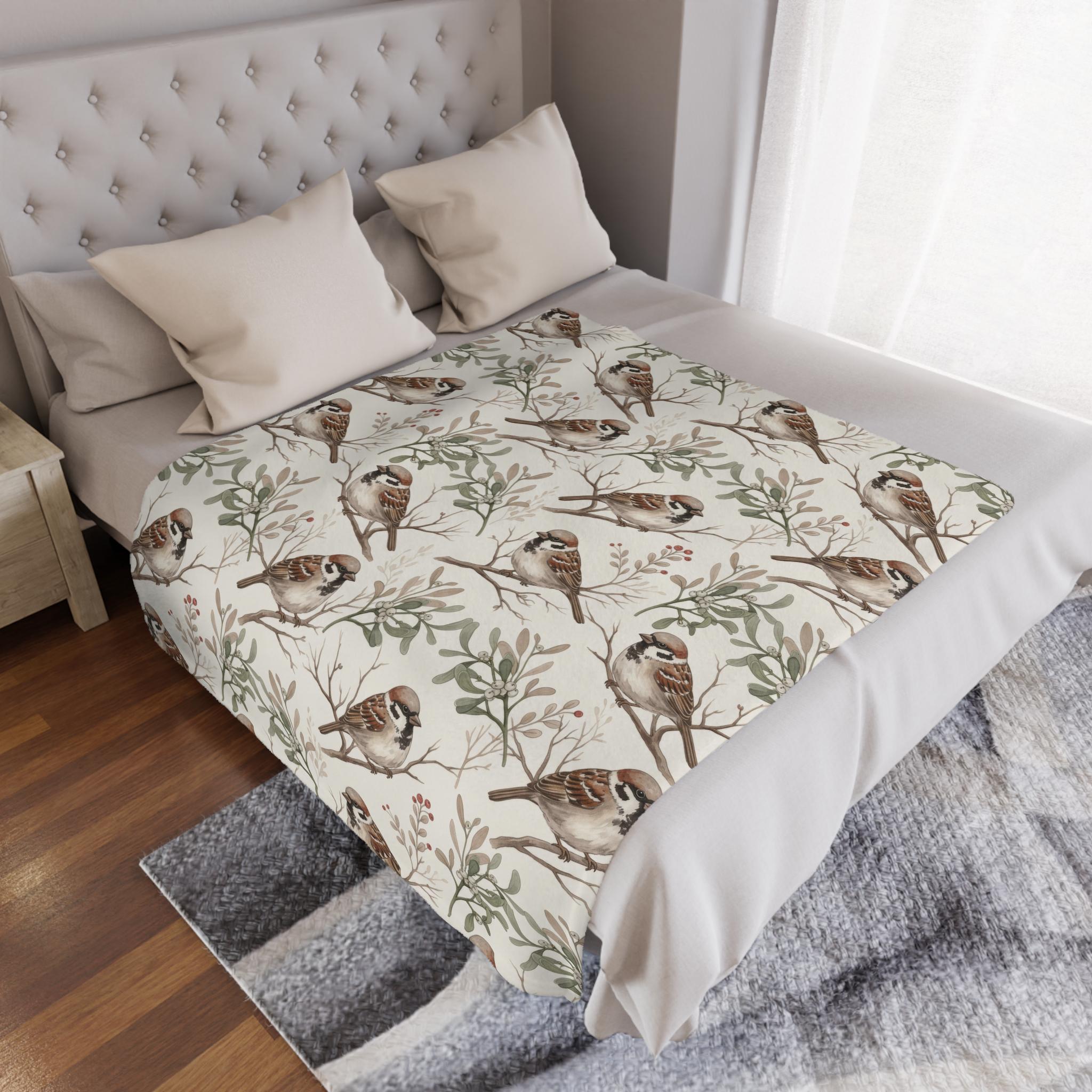 Give the gift of comfort and calm. This ultra-soft minky blanket features a peaceful sparrow and mistletoe design — perfect for birthdays, holidays, or cozy nights in.