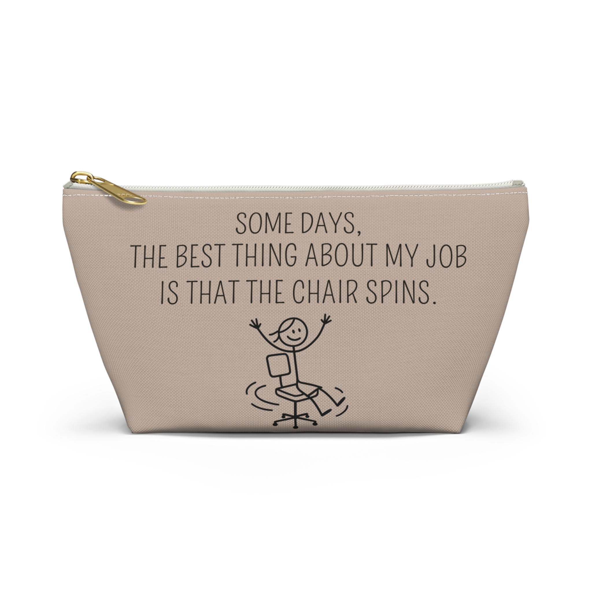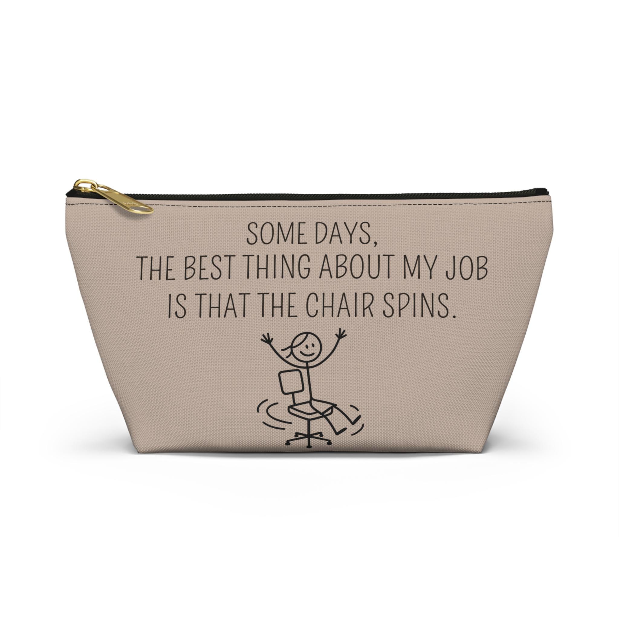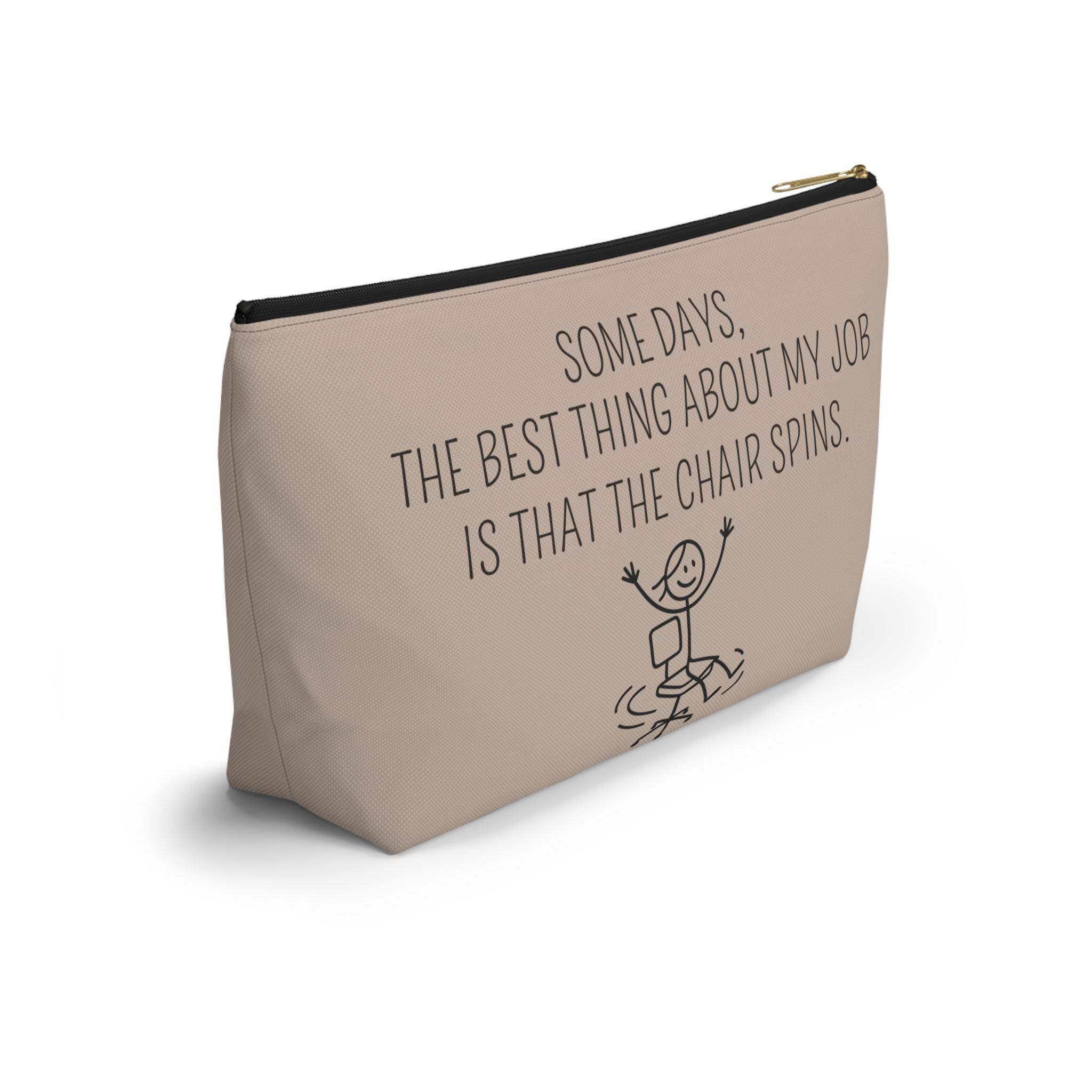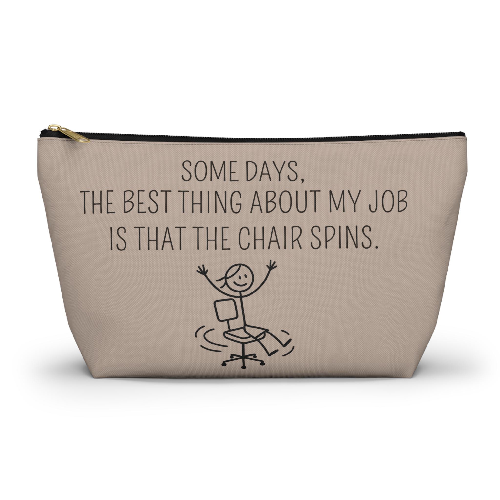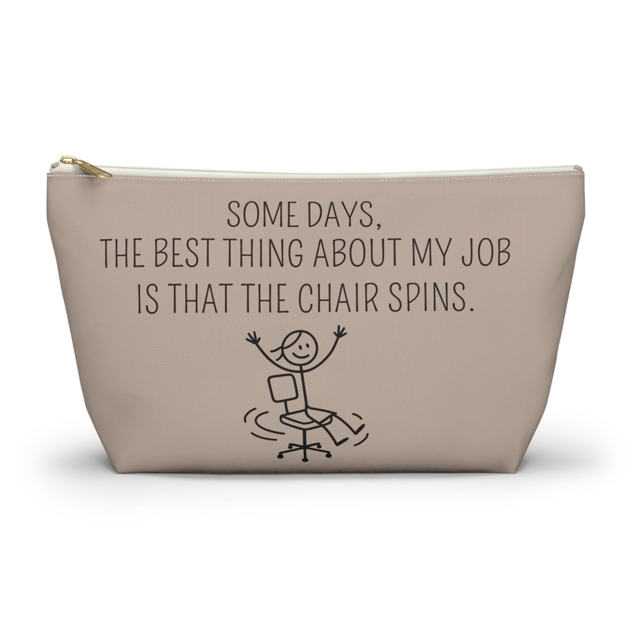 💼 Some days, all that’s holding it together is the spinning chair. This Some Days the Best Thing About My Job Is That the Chair Spins pouch is for anyone surviving office life one rotation at a time.