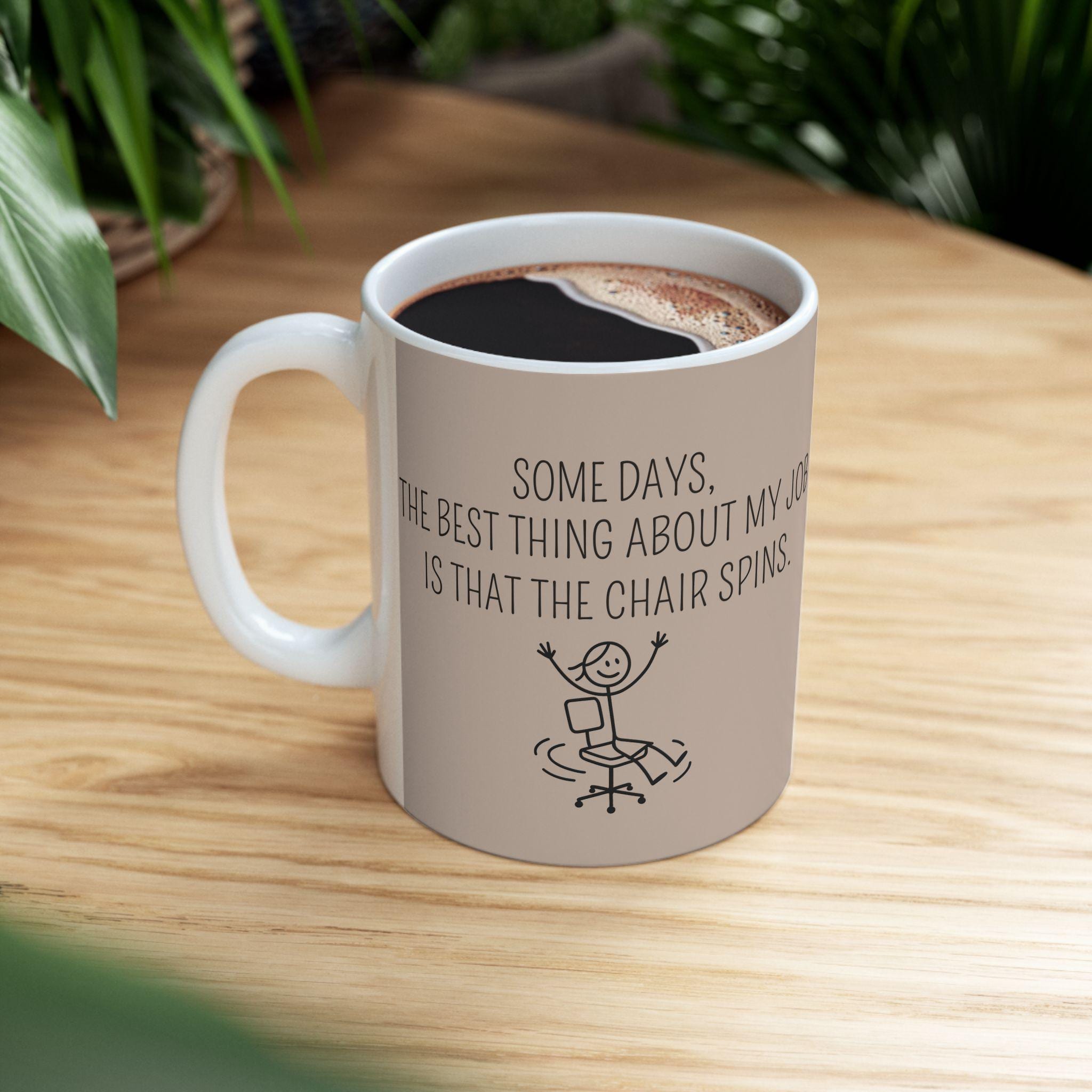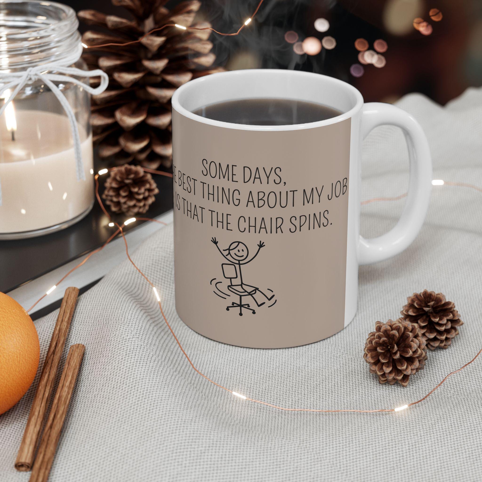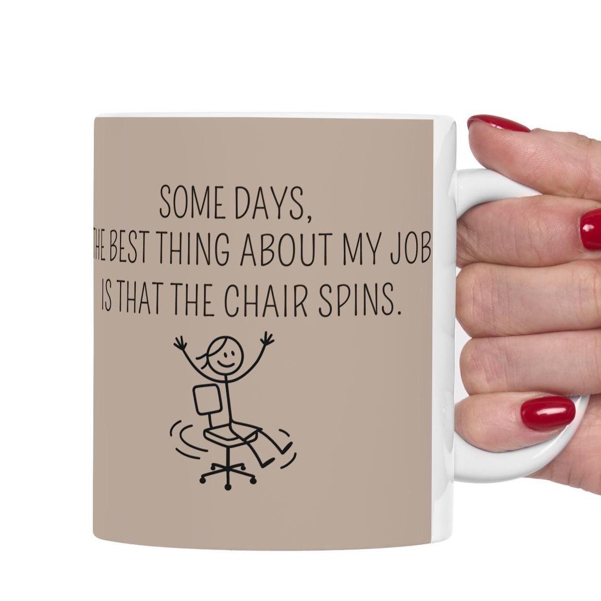 This Some Days The Best Thing About My Job Is That The Chair Spins mug says what we’re all thinking during endless emails and pointless meetings.