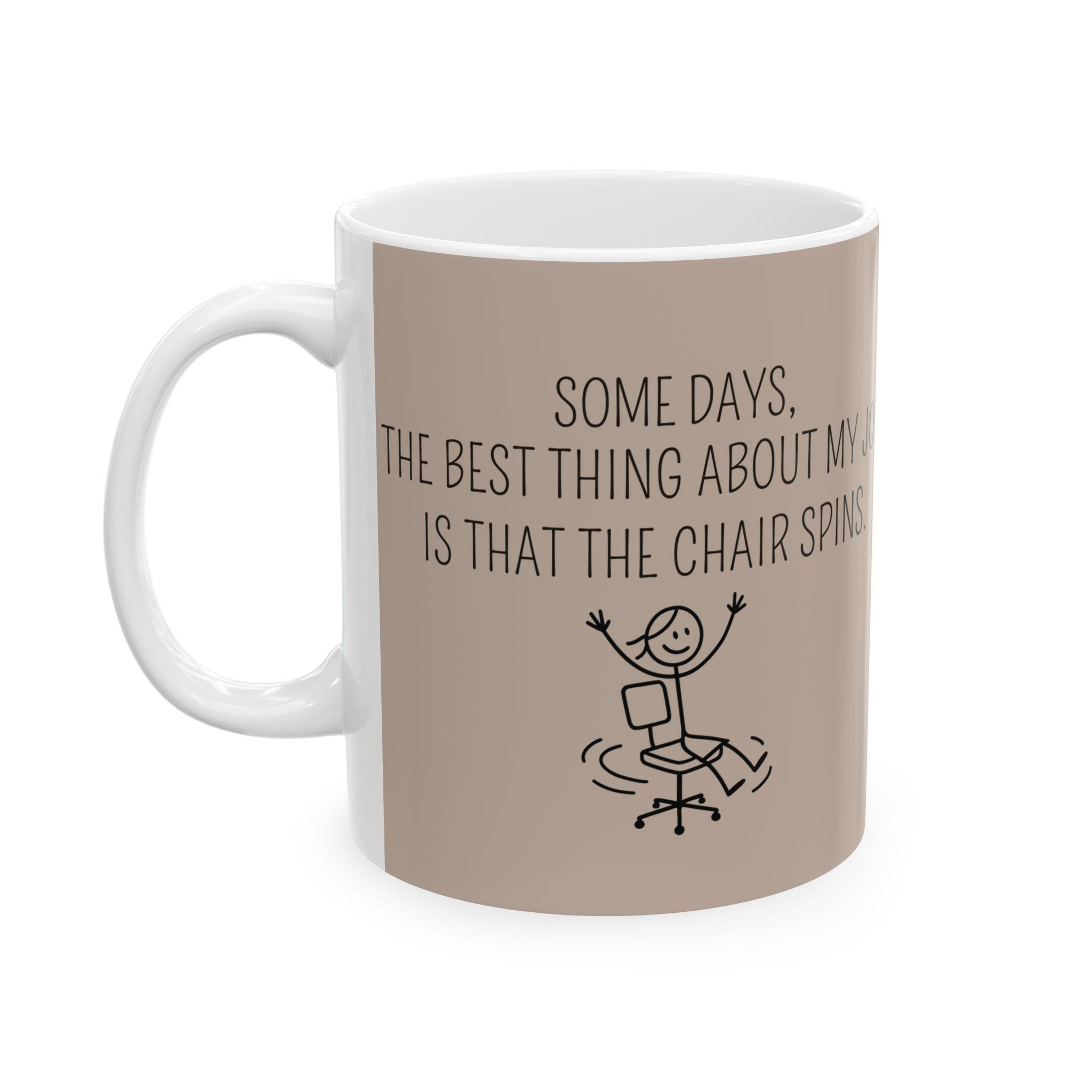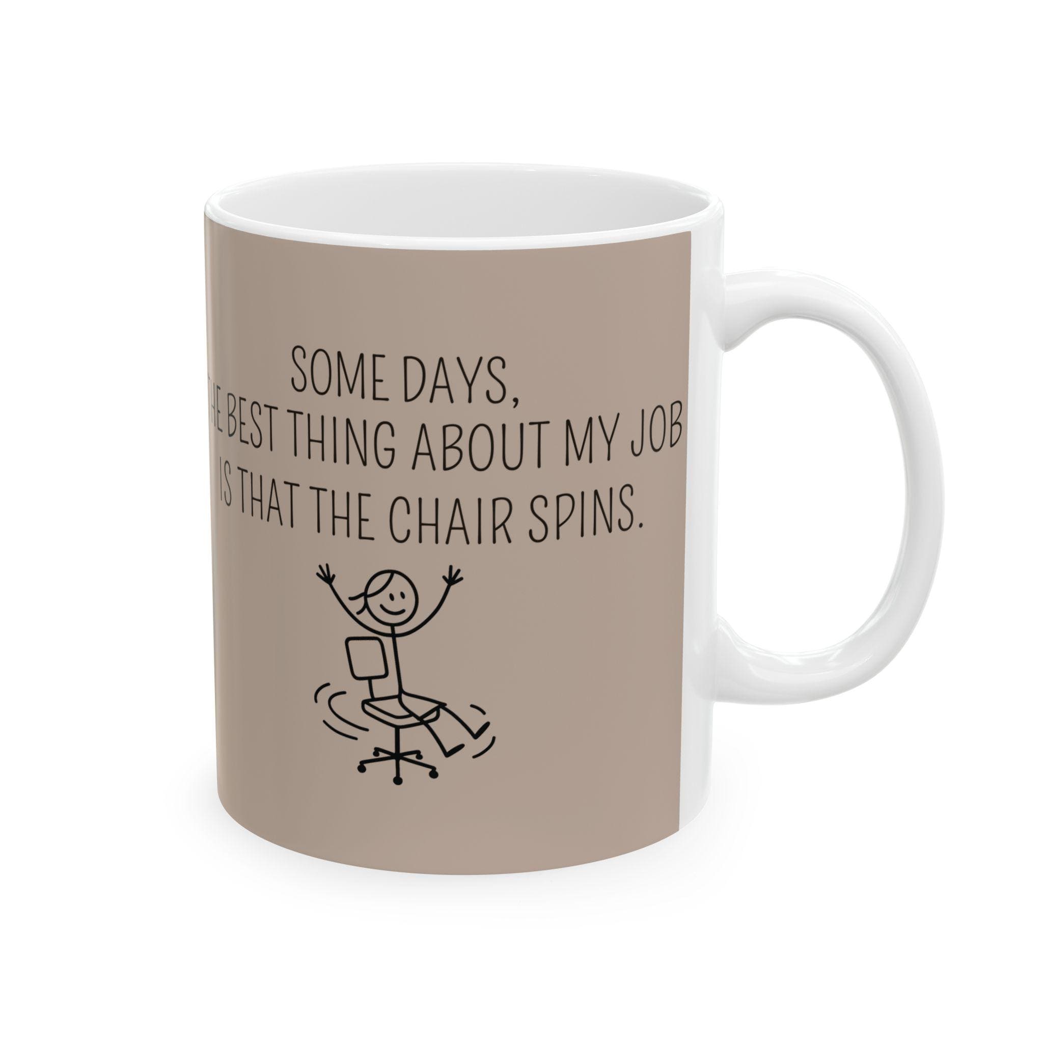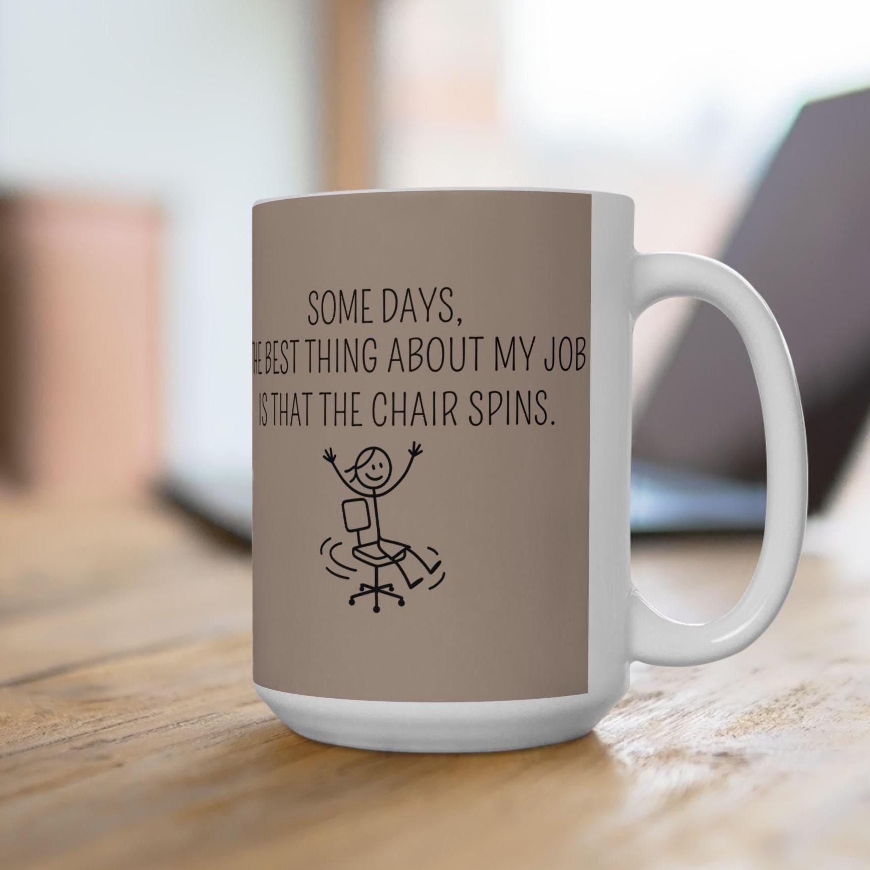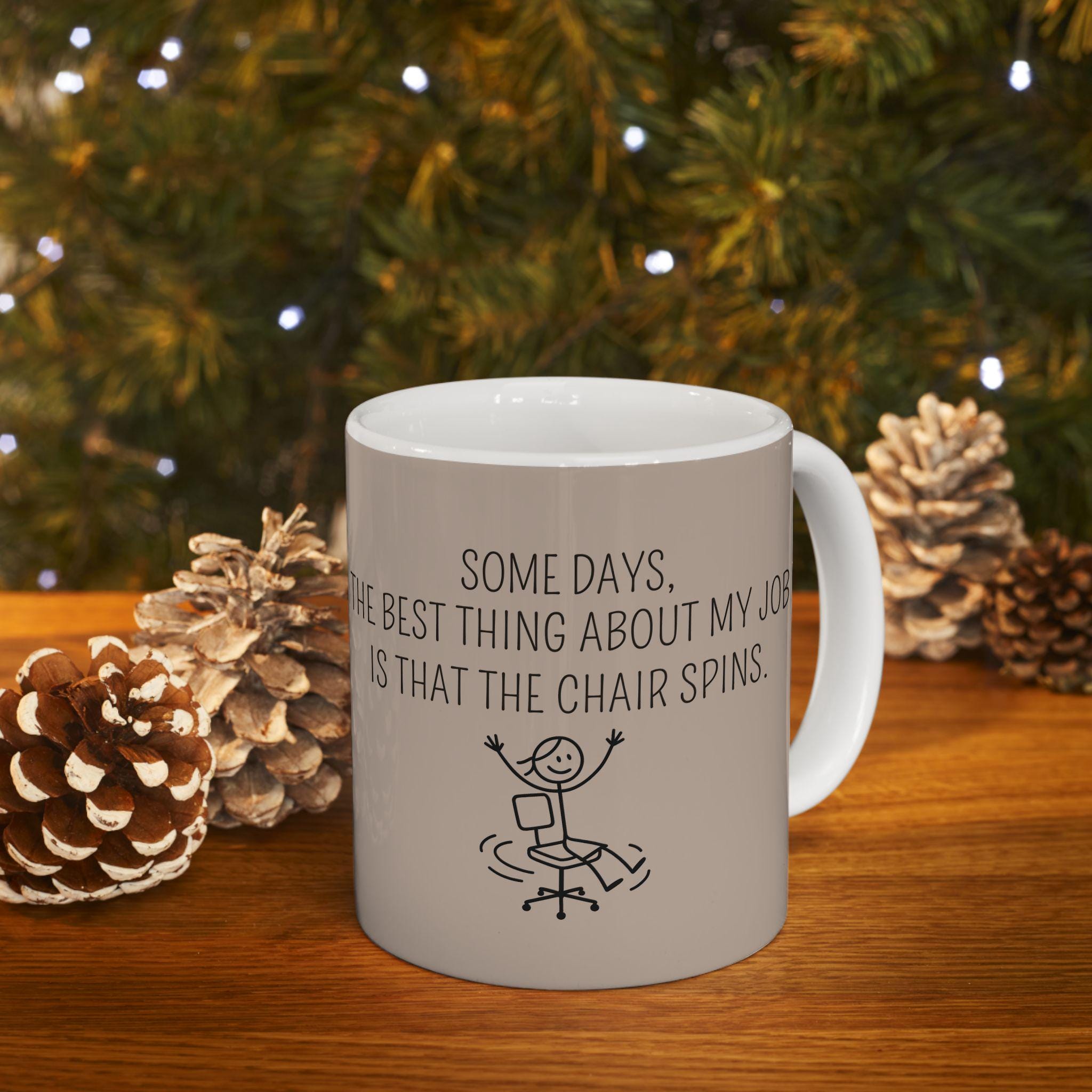 This Some Days The Best Thing About My Job Is That The Chair Spins mug says what we’re all thinking during endless emails and pointless meetings.