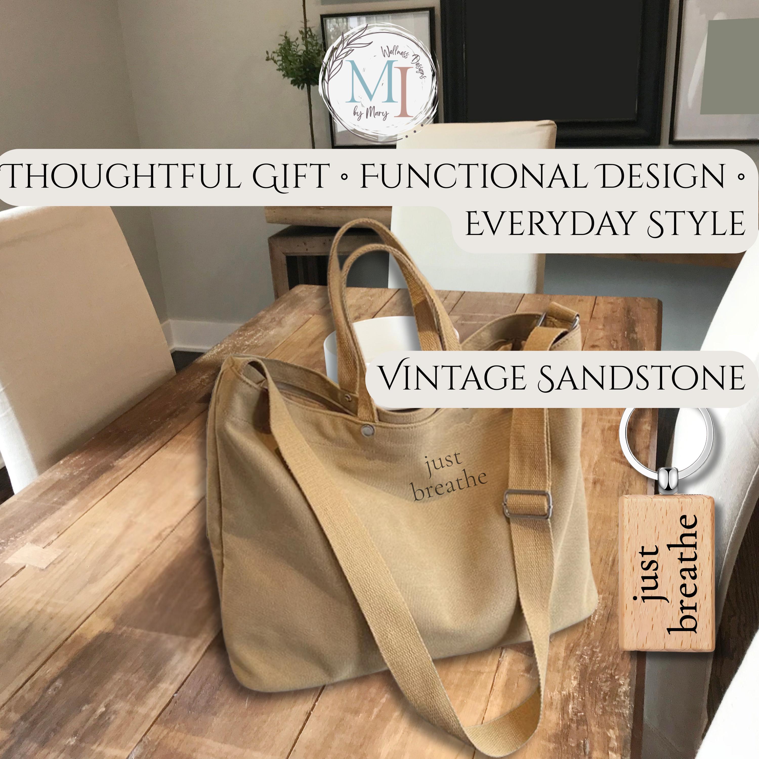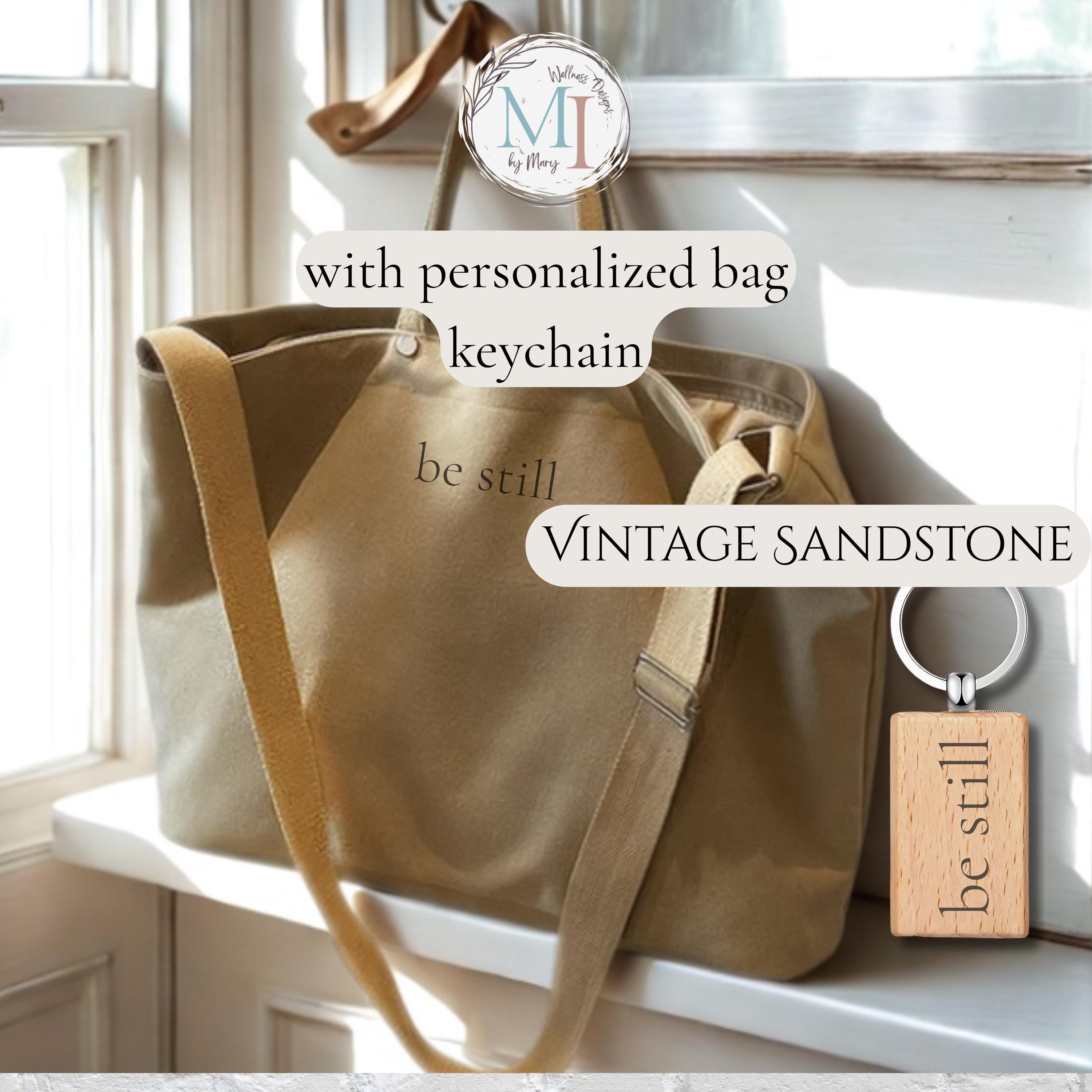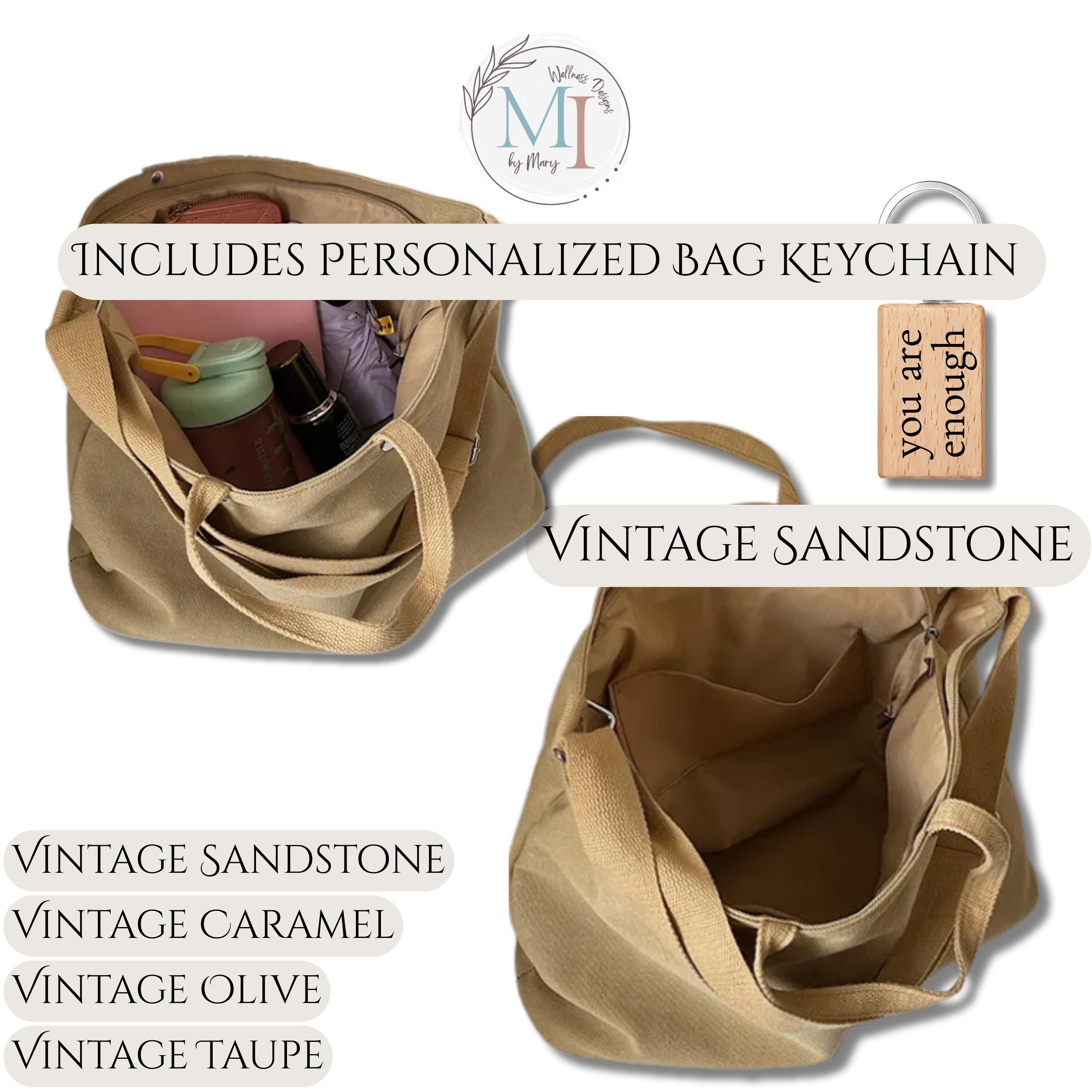 This personalized sublimation canvas tote bag features a minimalist affirmation design permanently infused into the fabric, paired with a matching engraved wood keychain. Designed in timeless vintage neutrals, this everyday tote blends calm design with practical function.