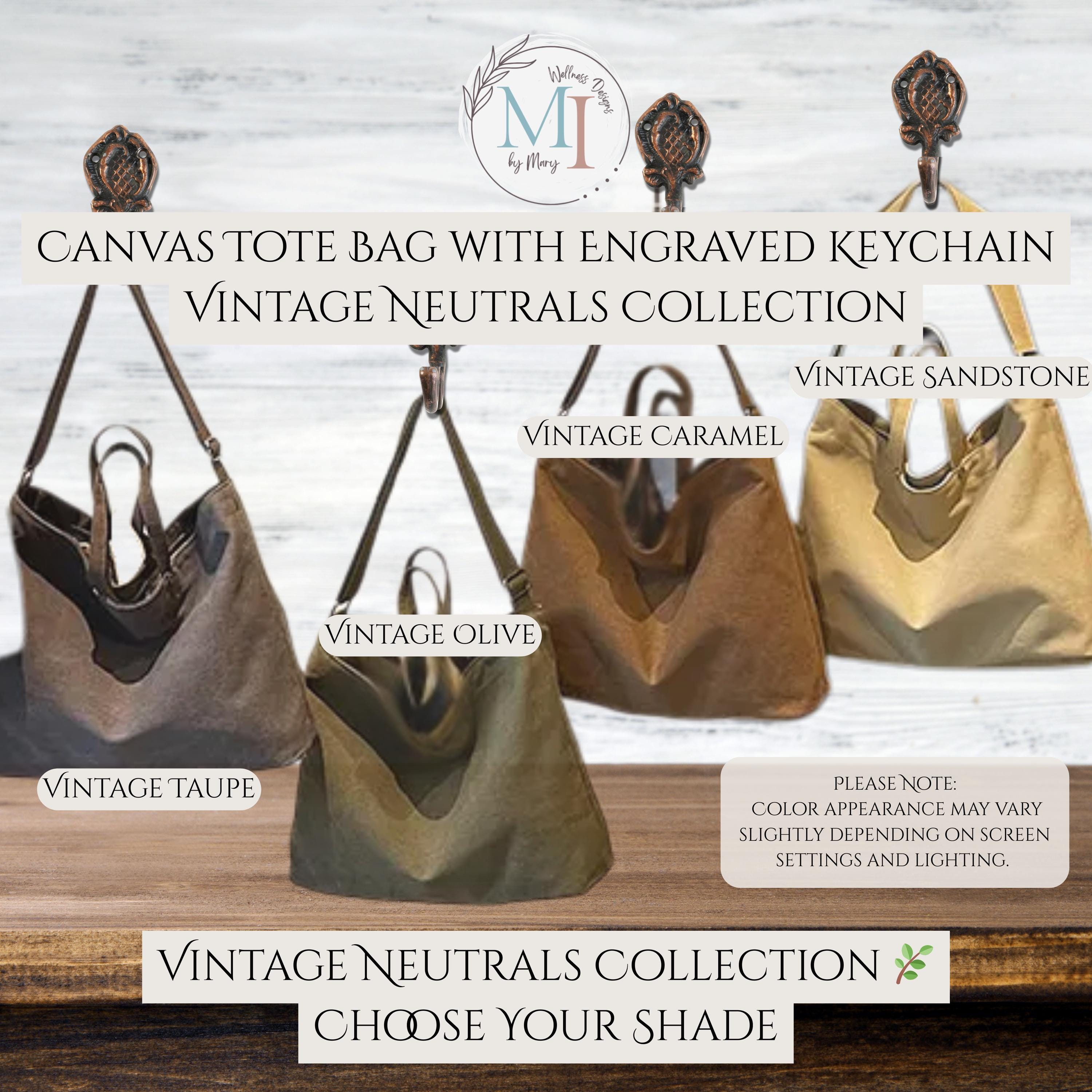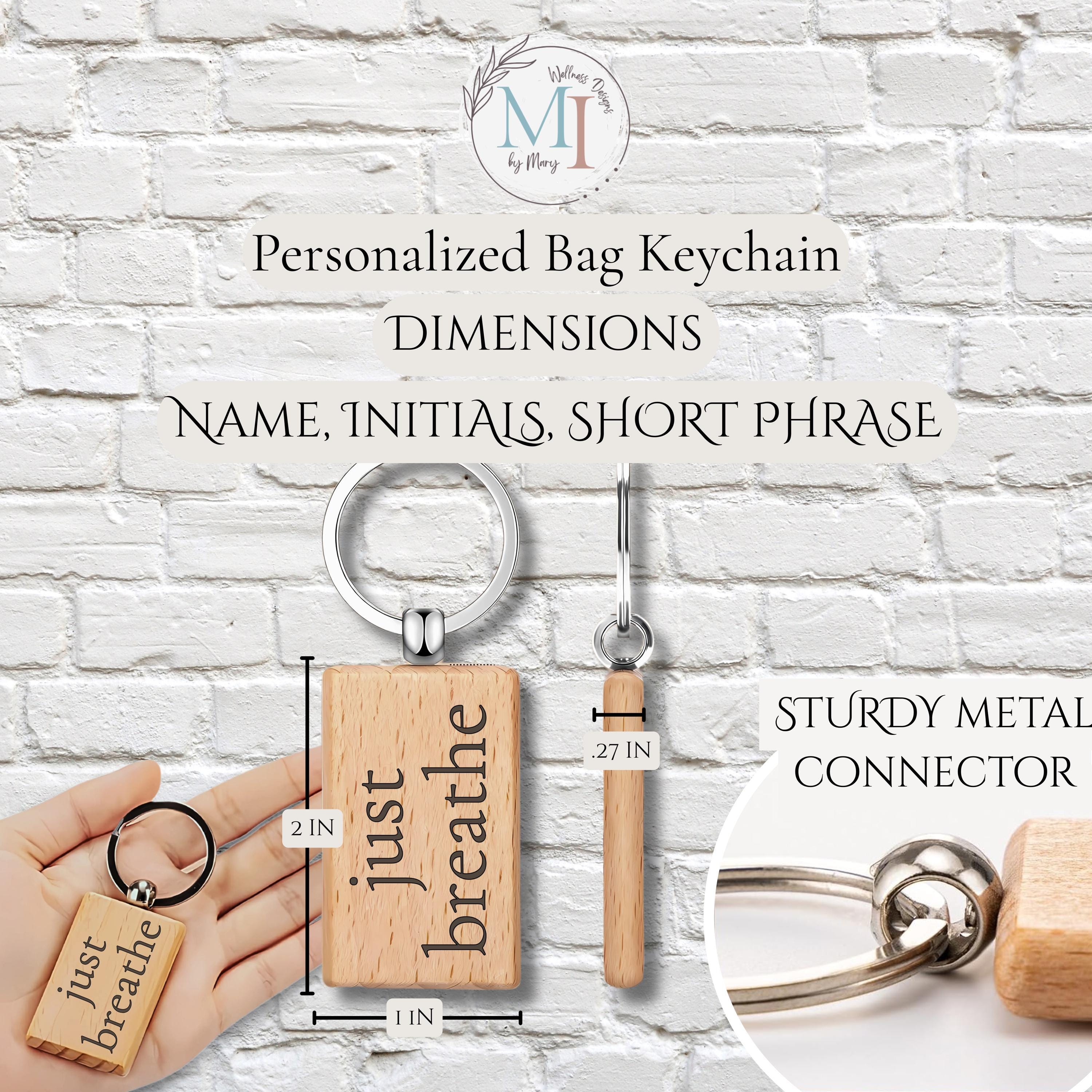 Each tote and keychain is personalized to order. Small variations in placement, engraving tone, or finish may occur, making each piece uniquely yours while maintaining the same overall design and quality.