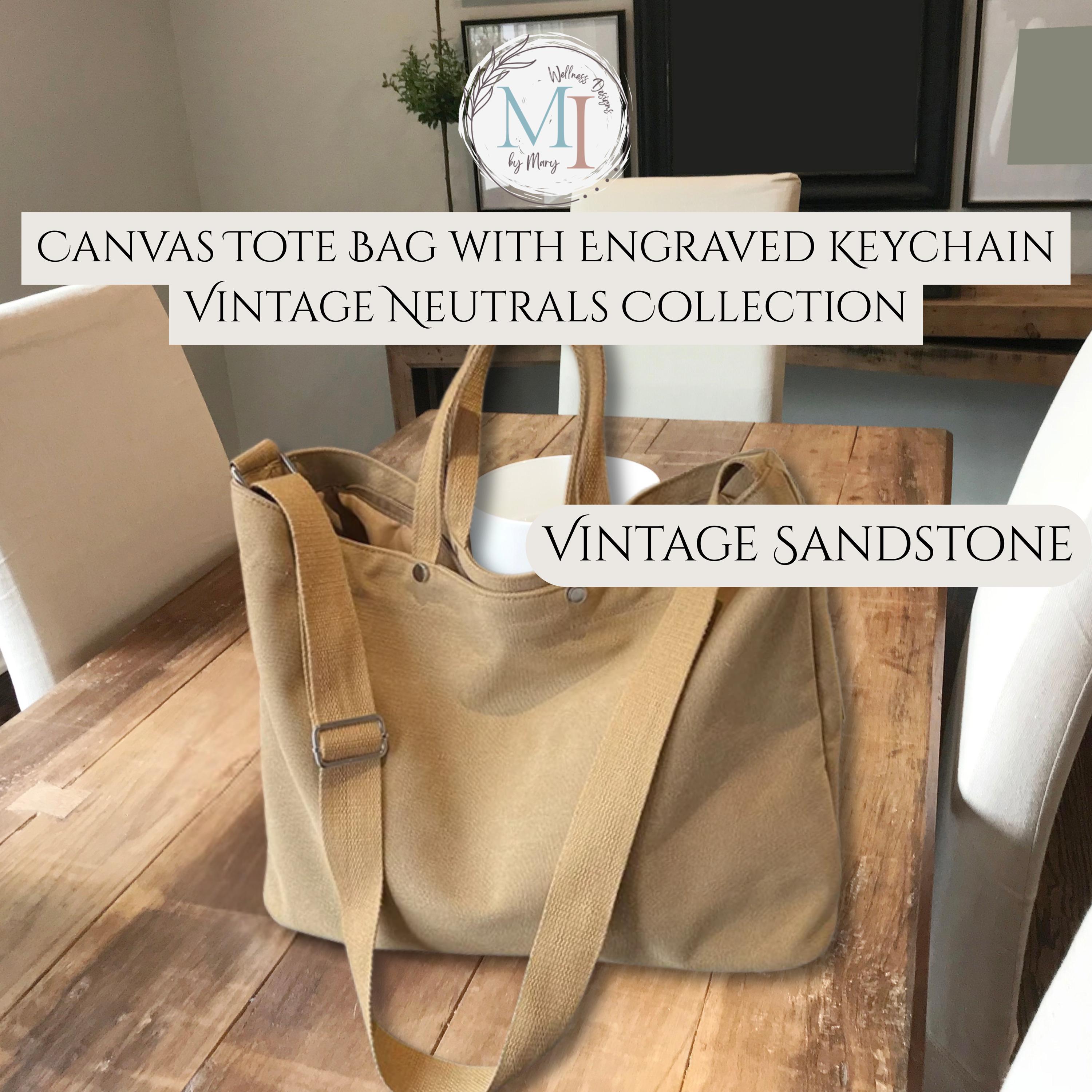 🌿 Personalized sublimation canvas tote with engraved wood keychain. Minimalist, neutral, and made to last. Designed to be personal and made to last.