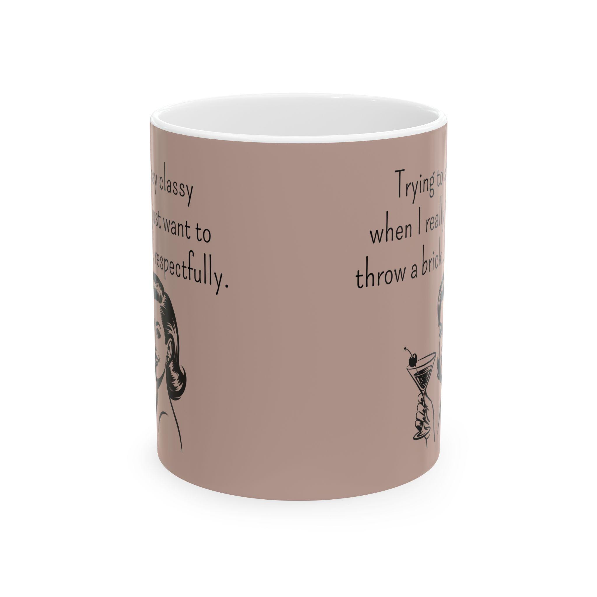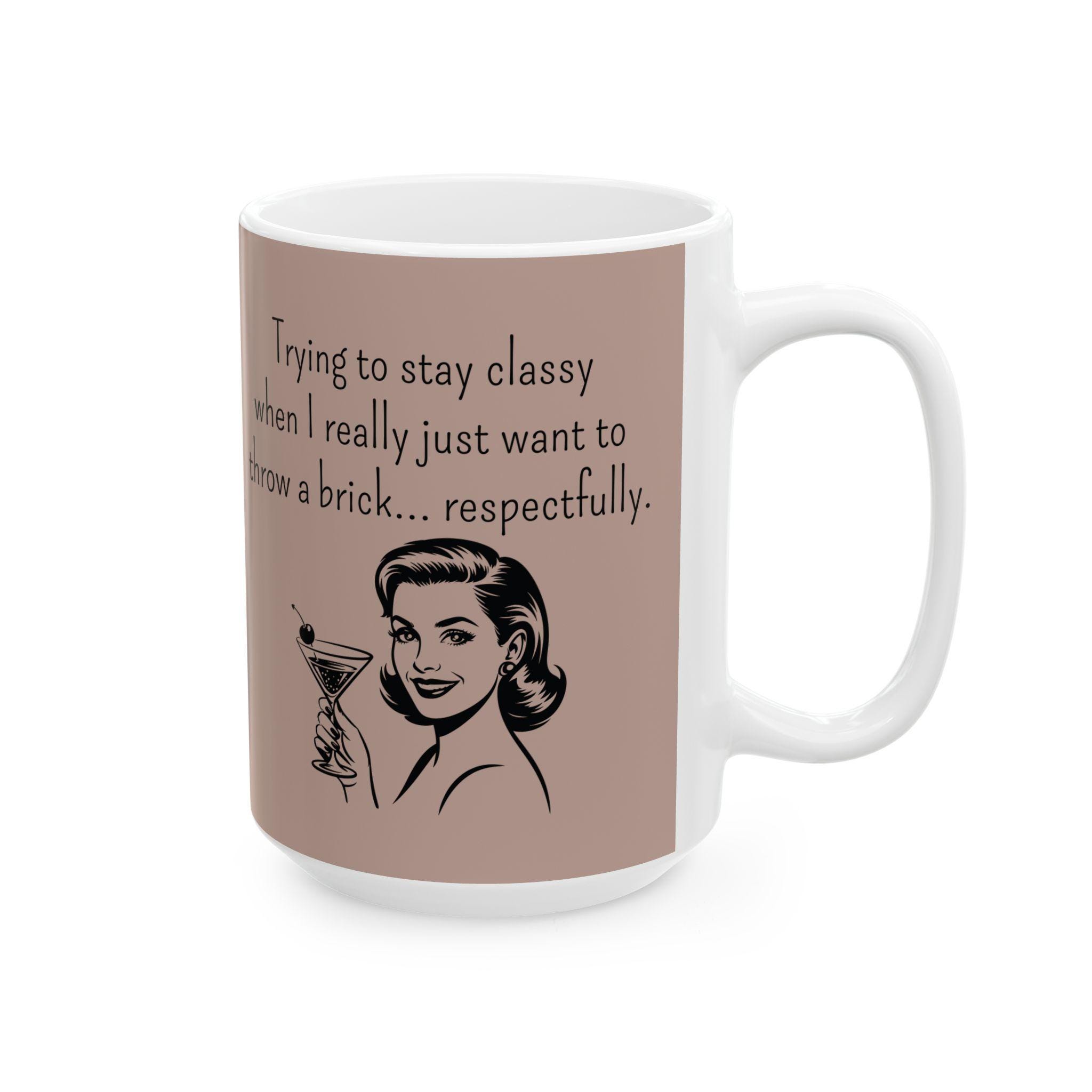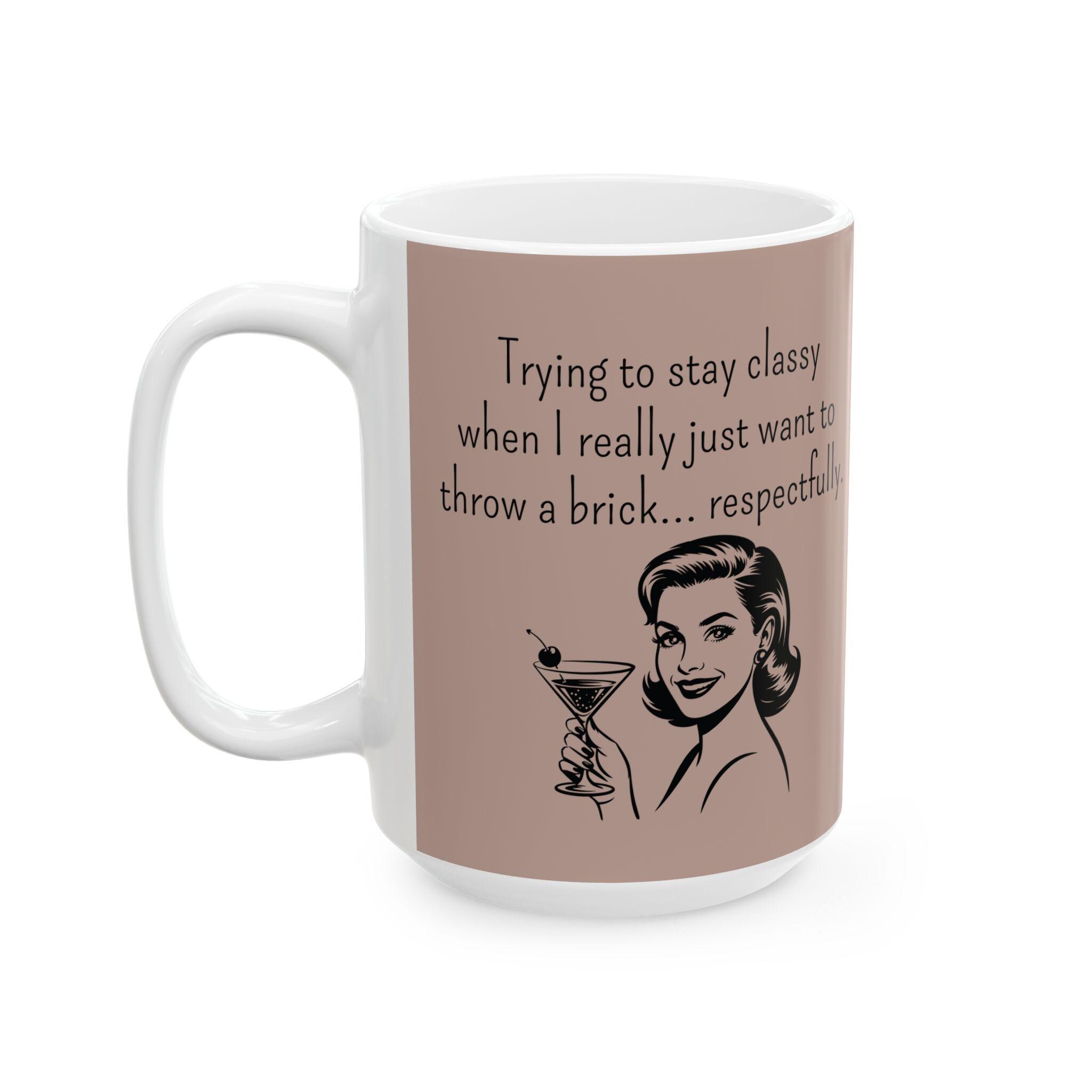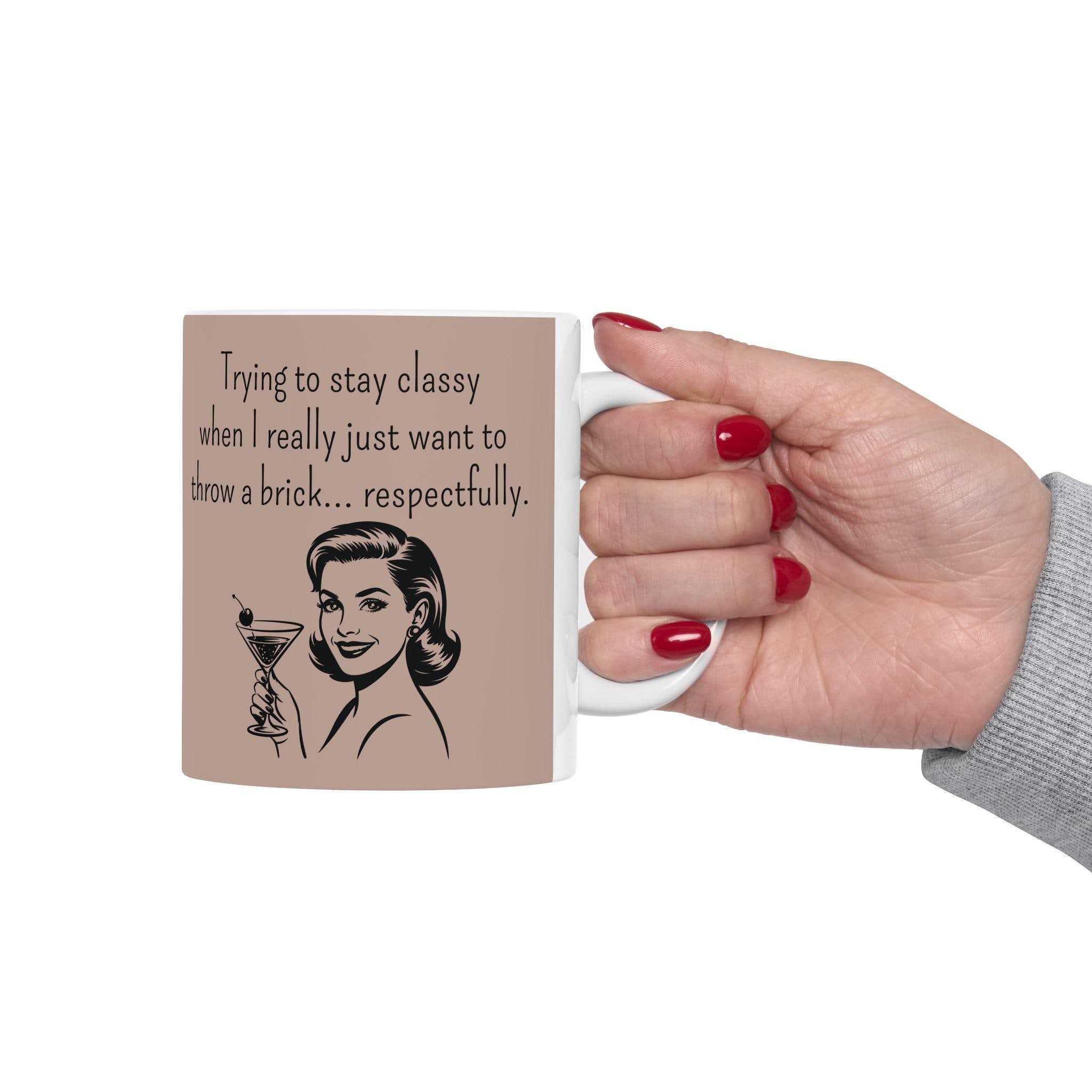 ☕ Sip in style with this retro “Trying to Stay Classy” mug, the perfect blend of sass and sophistication. Ideal for work humor, girlfriends, or gifting!