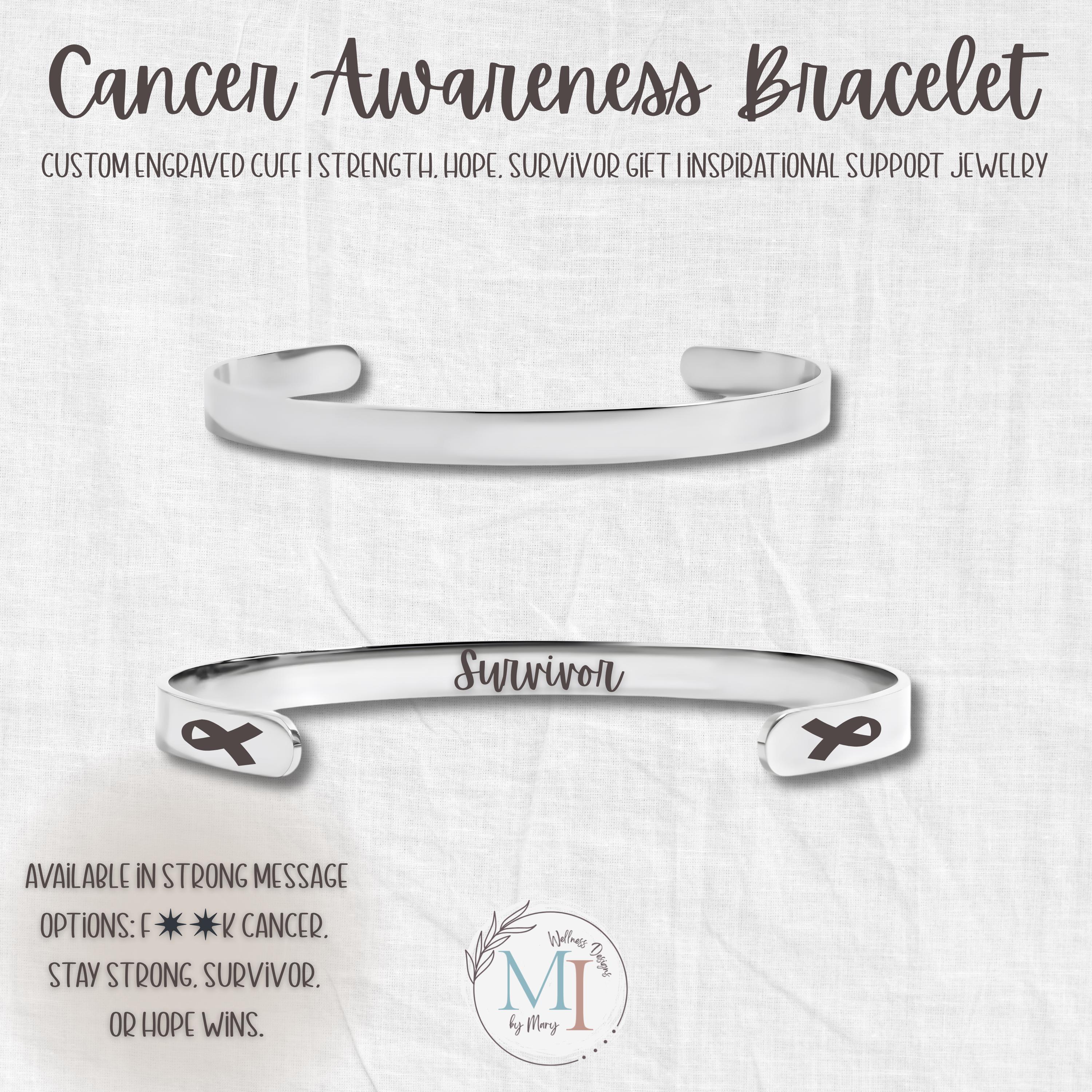 🌿 A bold reminder of strength and resilience. Handcrafted stainless steel cuff — personalize inside with “F✴︎✴︎k Cancer,” “Stay Strong,” “Survivor,” or your own message of courage.