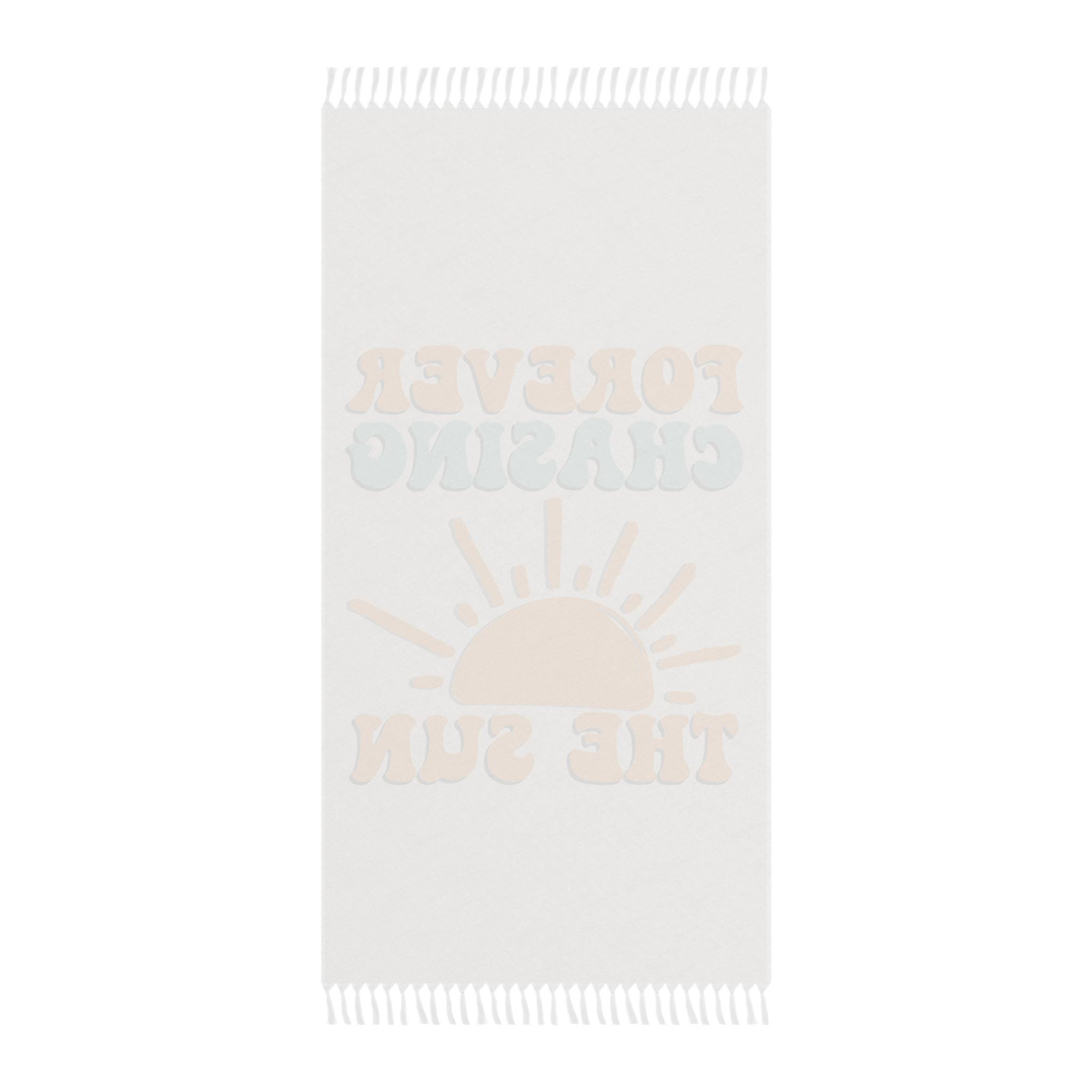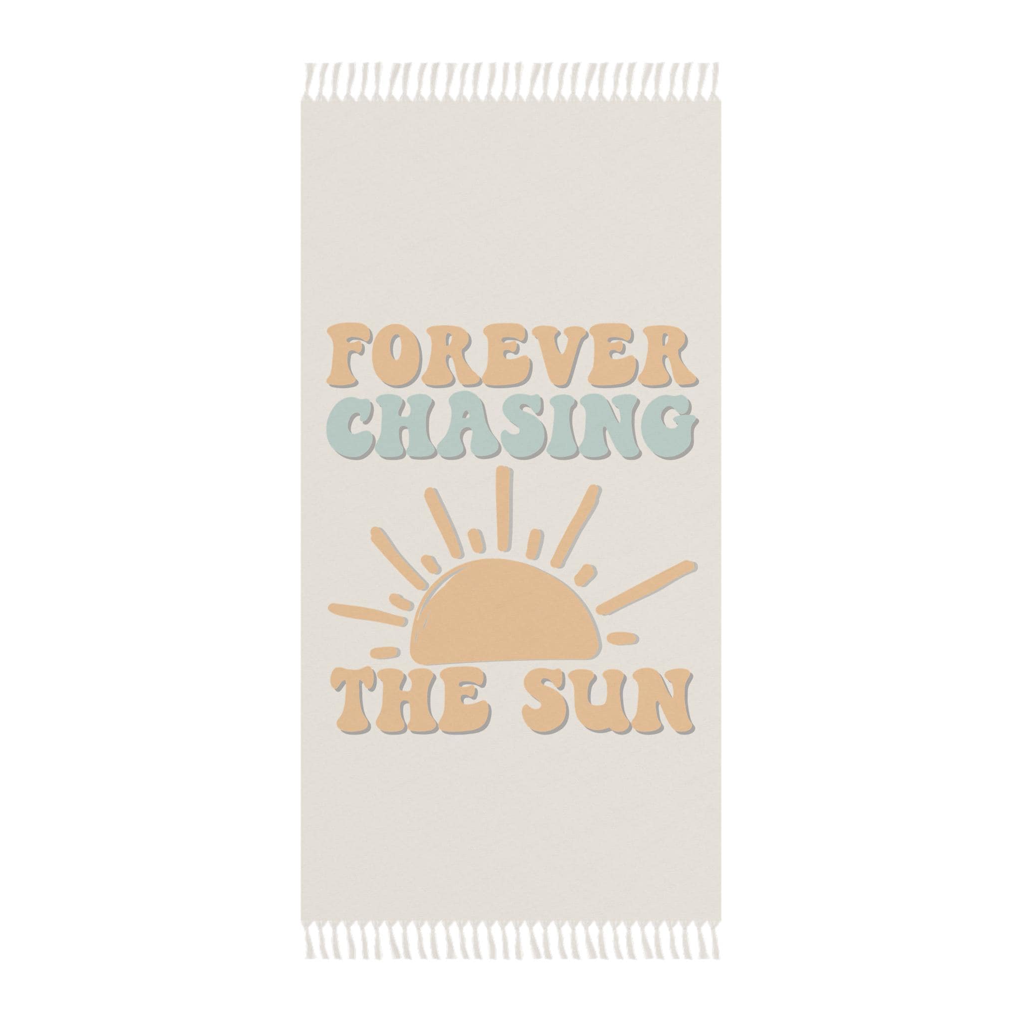 Lightweight and sun-soaked, this boho beach cloth is made to join you on warm mornings and salty afternoons. The soft cream backdrop holds a retro sun motif and the phrase “FOREVER CHASING THE SUN” in mellow peach and seafoam tones — a quiet nod to endless summer and easy, unhurried days. The long rectangular shape and knotted tassel edges lend a laid-back, vintage vibe that layers effortlessly across sand, picnic blankets, or your favorite beach chair. Quick-drying polyester keeps it travel-ready: it folds small, resists wrinkles, and bounces back after washes so the colors stay vivid. Bring it to sunrise walks, coastal drives, or slow weekend getaways — it’s the kind of piece that colors the moment without shouting for attention.