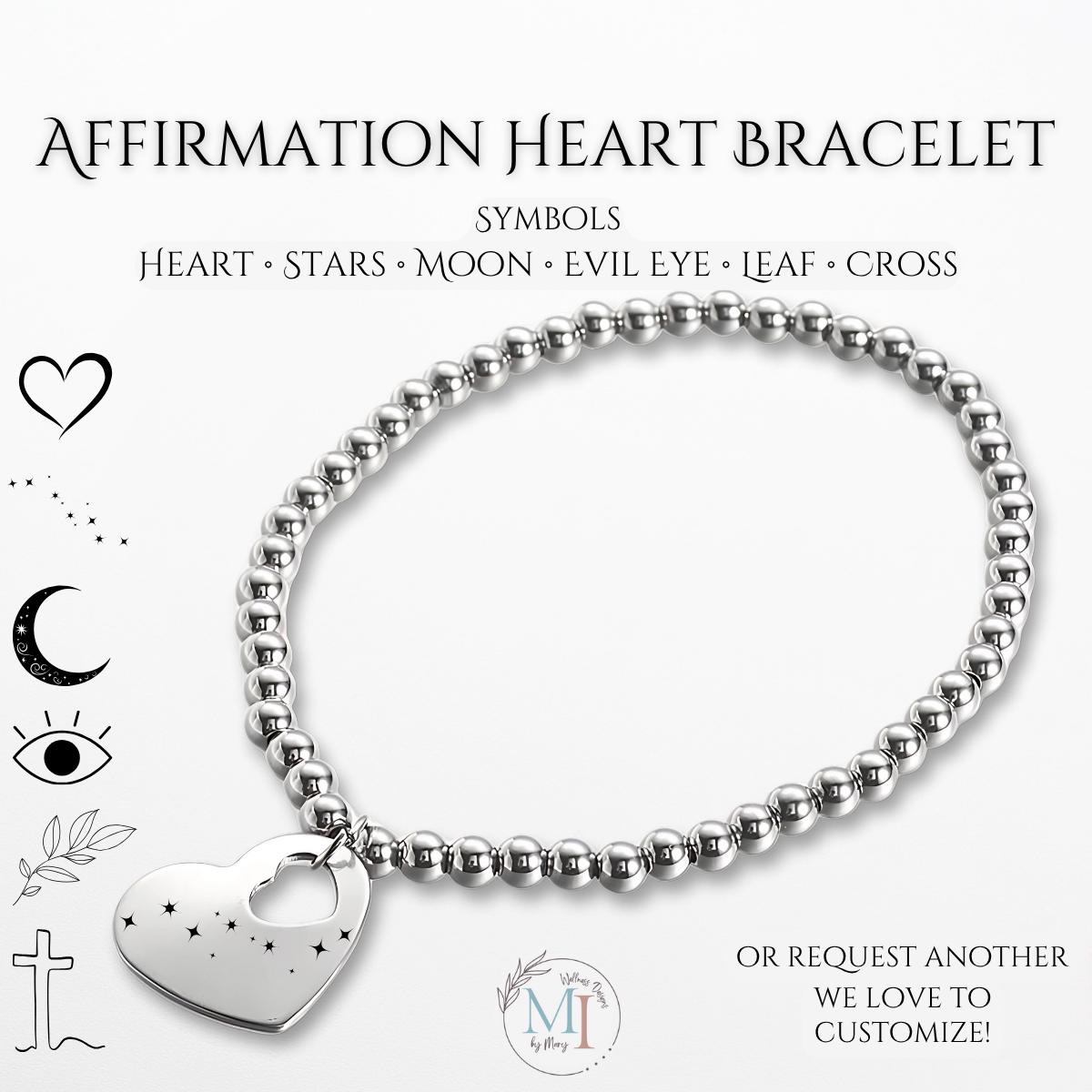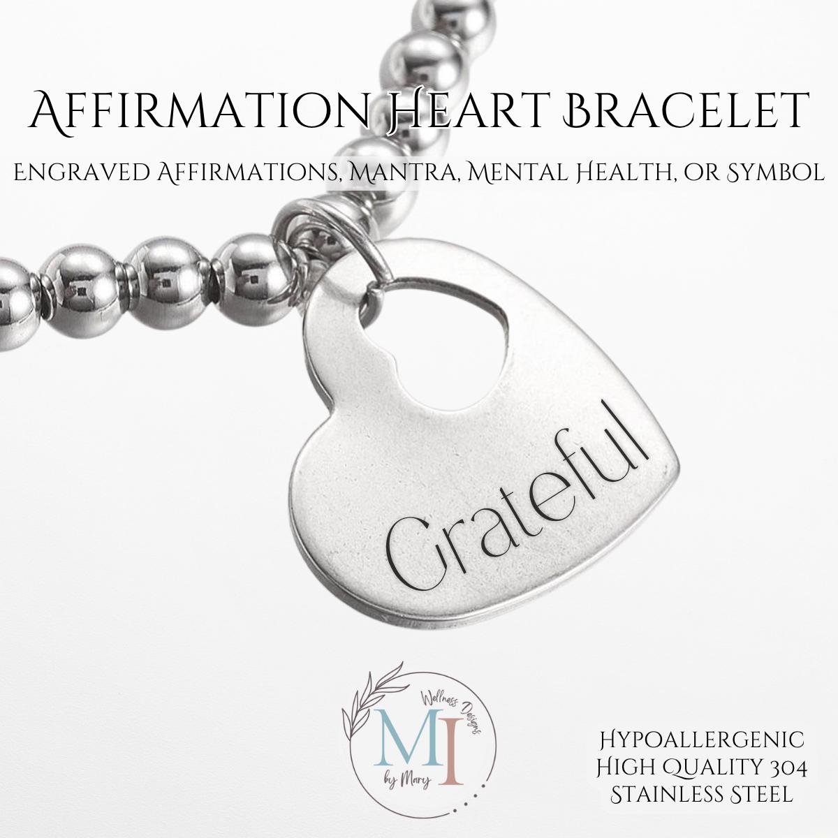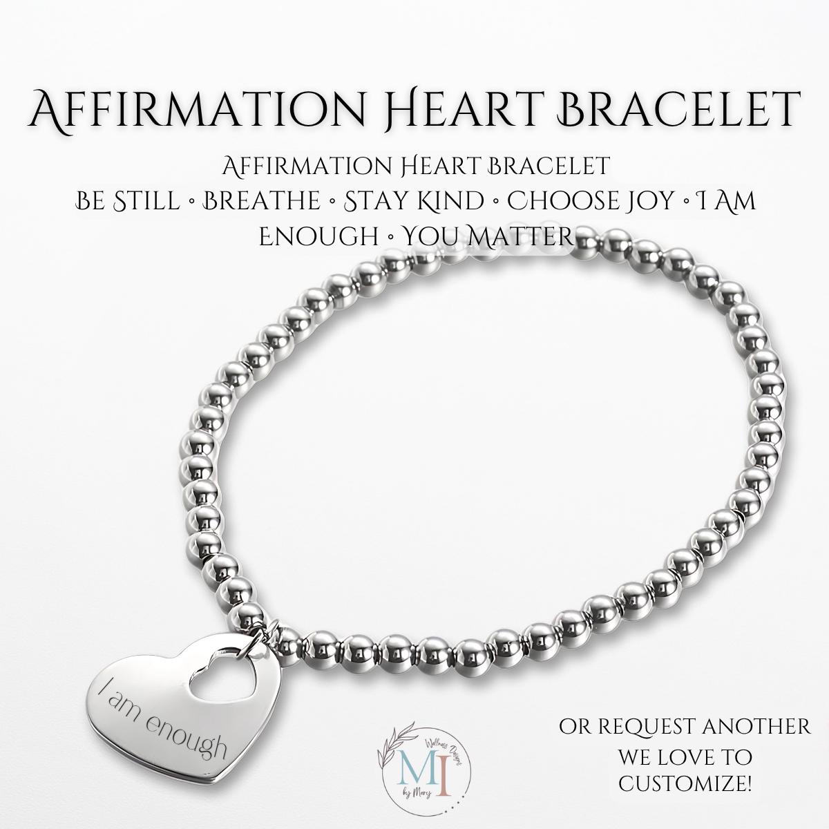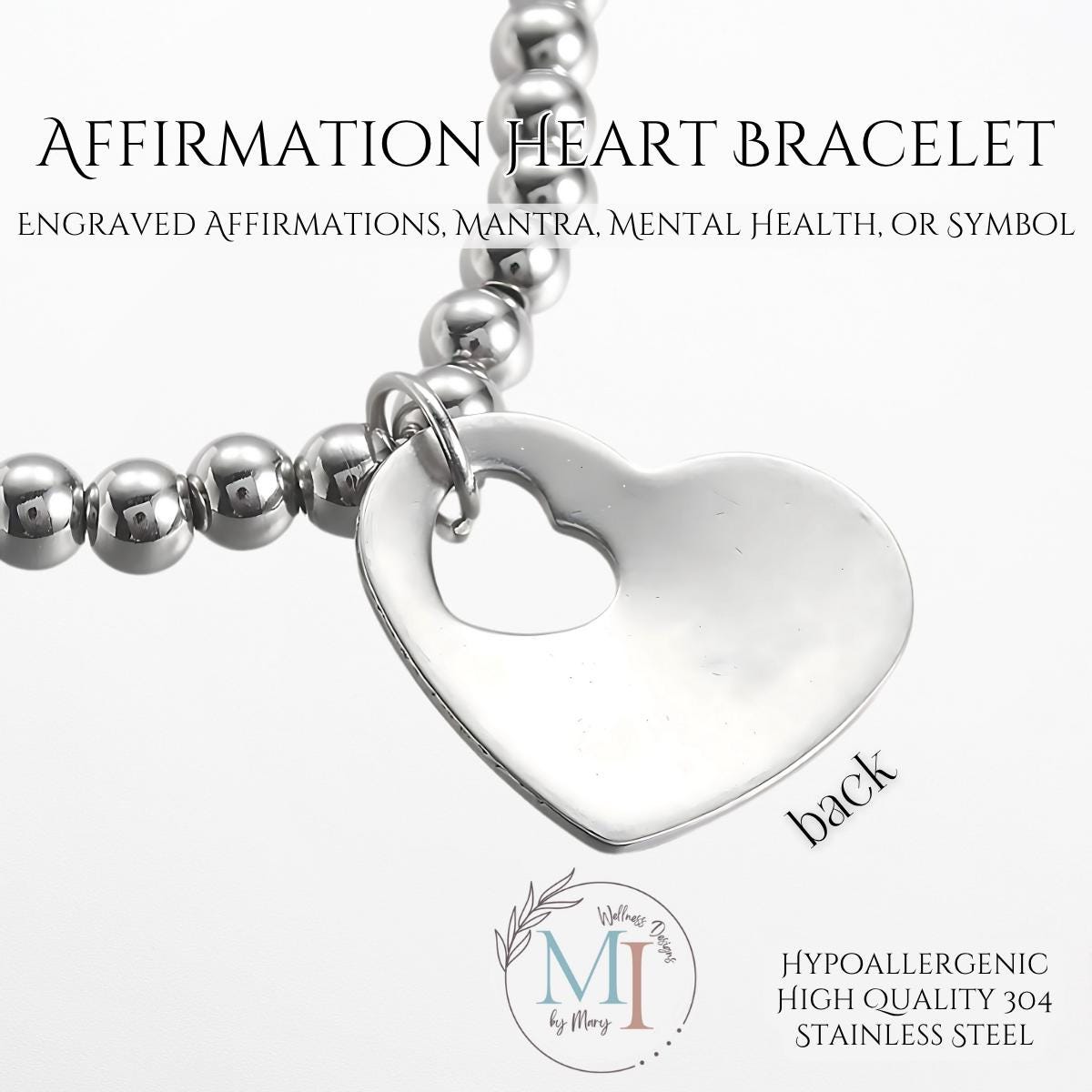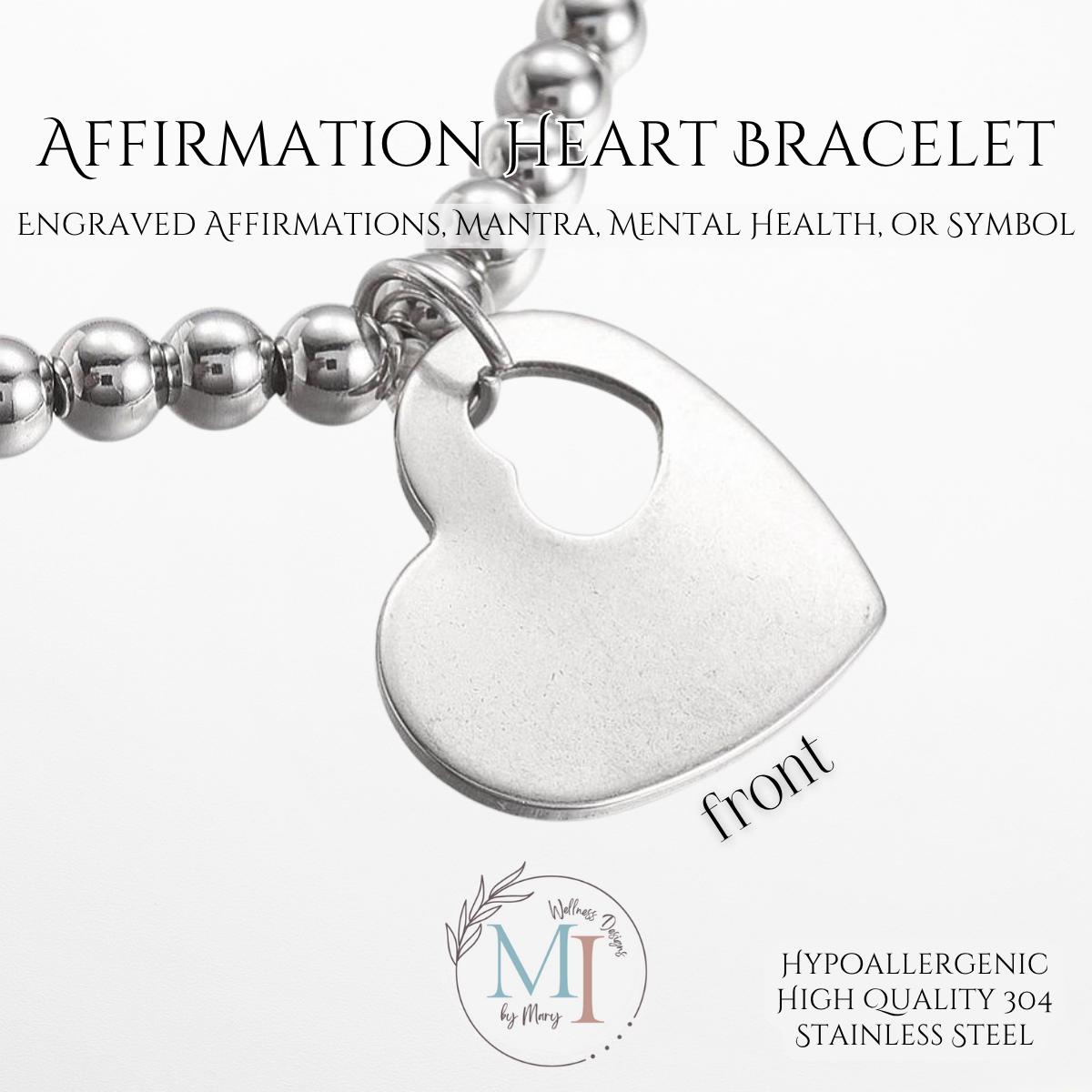 π Affirmation Engraved Stainless Steel Heart Bracelet