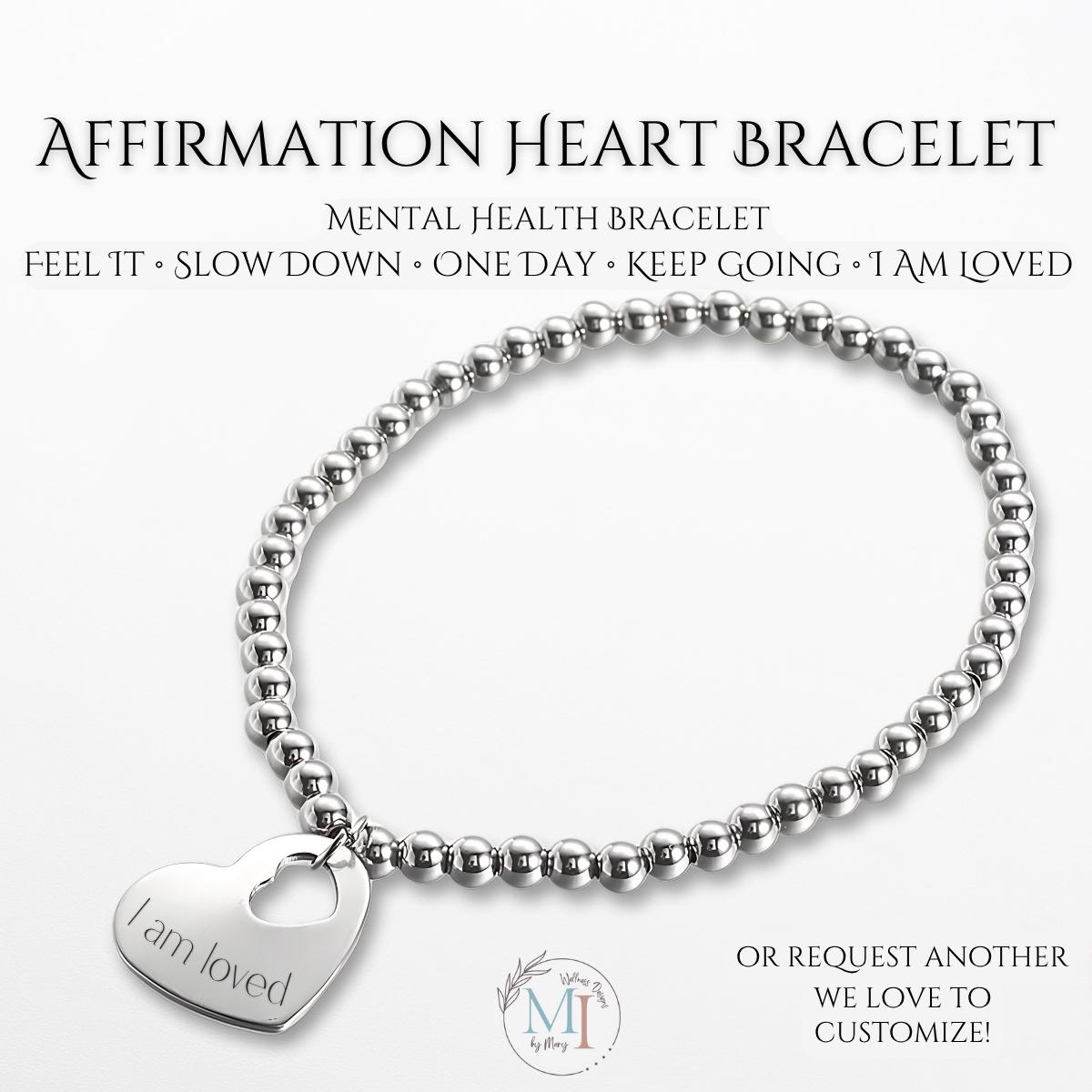 Elevate your jewelry collection with a bracelet designed to support your mindset, healing journey, emotional health, and spiritual growth. This minimalist stainless steel heart bracelet can be engraved with a short affirmation, mantra, mental health reminder, or meaningful symbol β transforming it into a wearable source of comfort and empowerment.