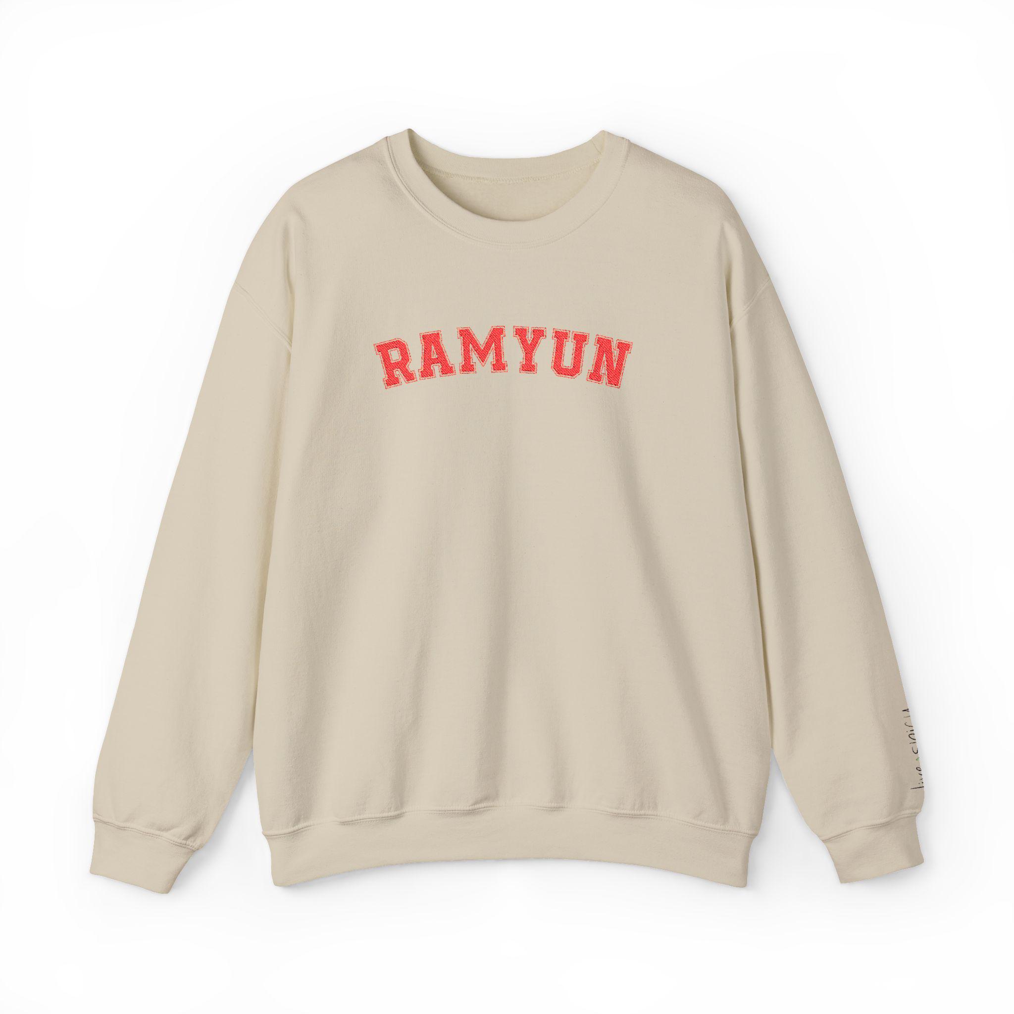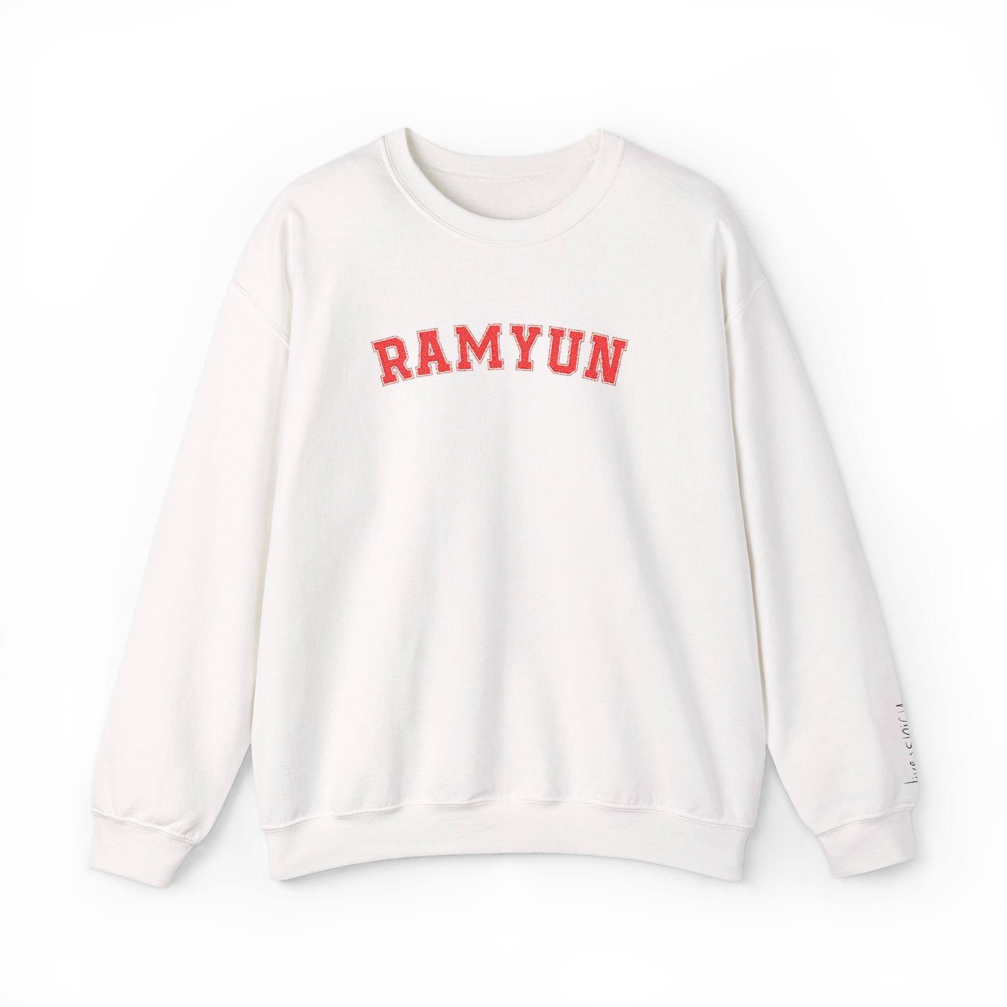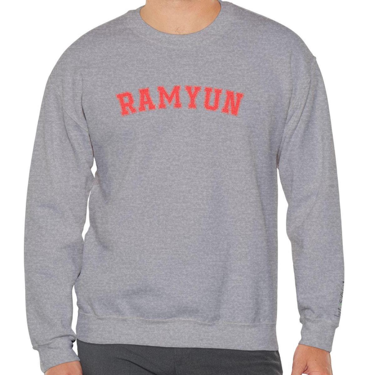 ⭐ A cozy embroidered RAMYUN sweatshirt for every Korean-food lover, spice enthusiast, or K-drama binger. Bold varsity letters across the chest + a tiny chili pepper on the sleeve for the perfect “live spicy” touch.
