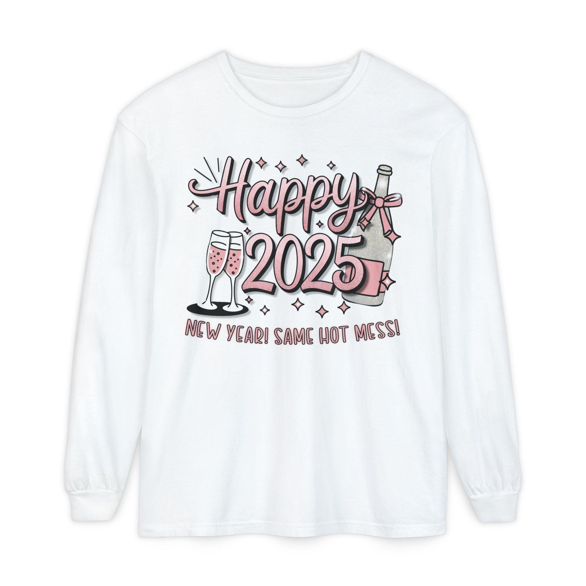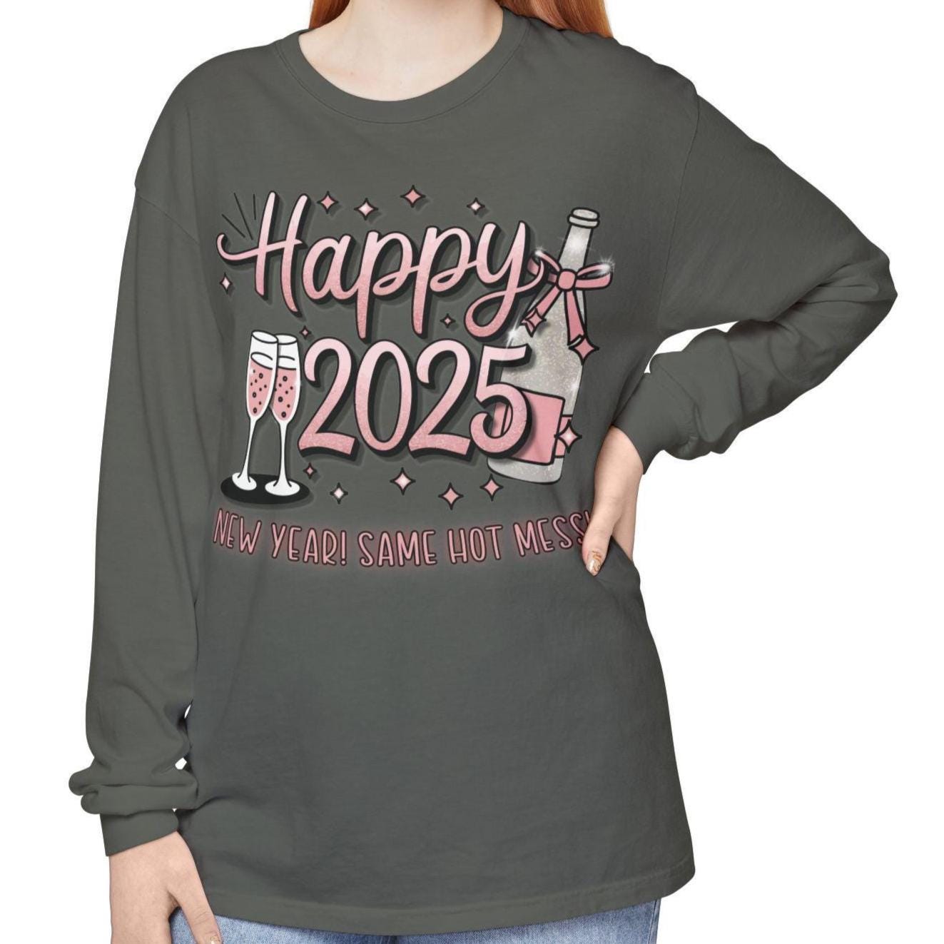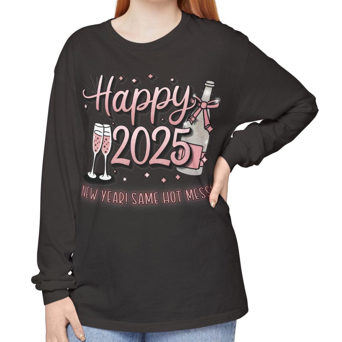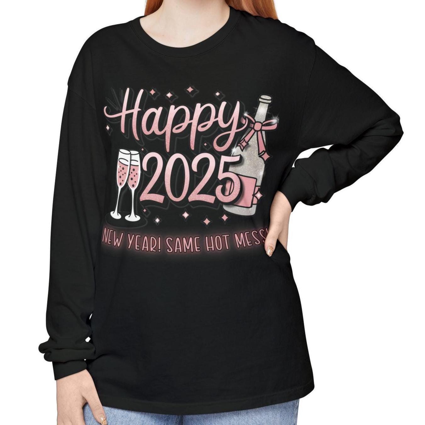 ⭐ Ring in 2025 with sparkle and sarcasm — the perfect New Year’s long sleeve for hot messes with big dreams.