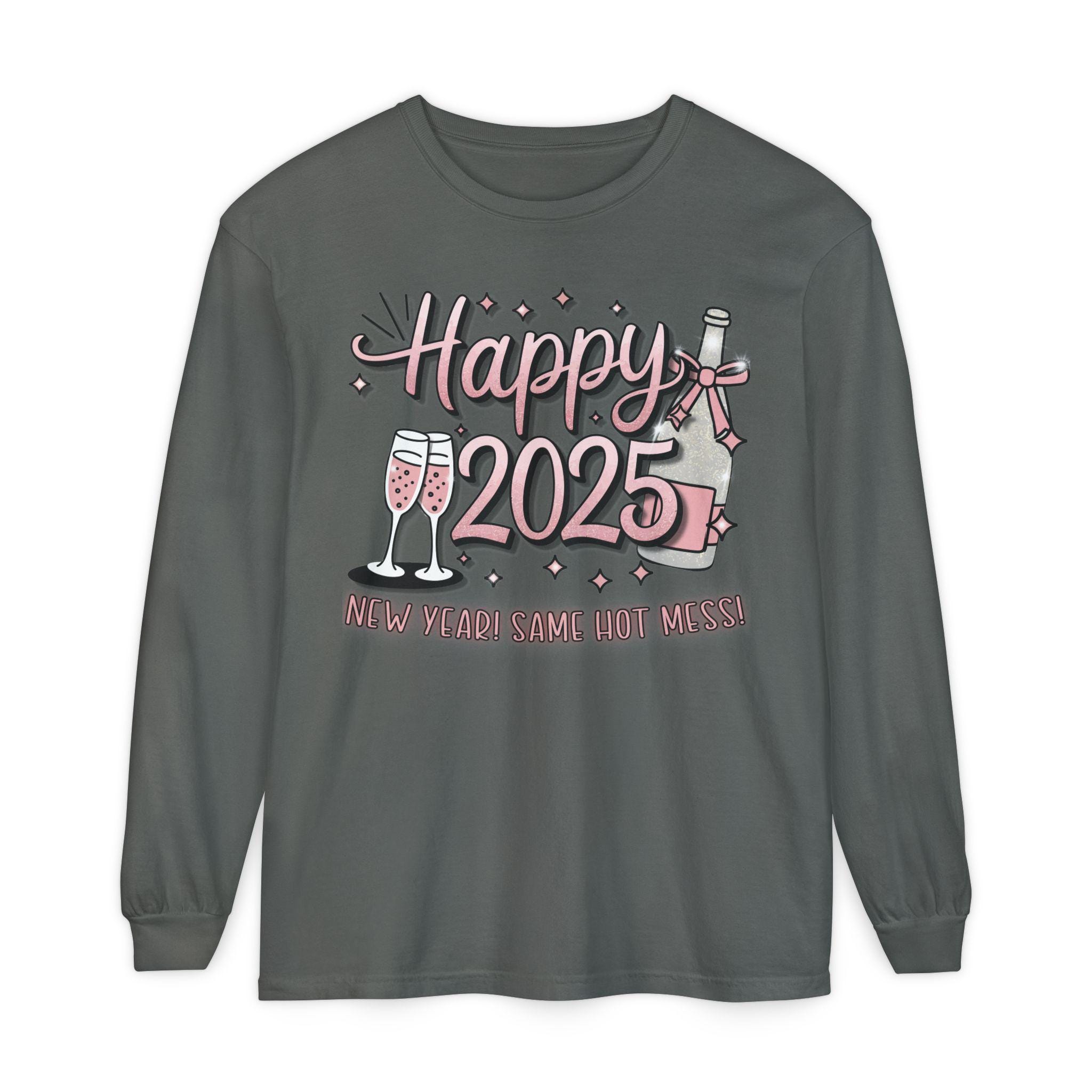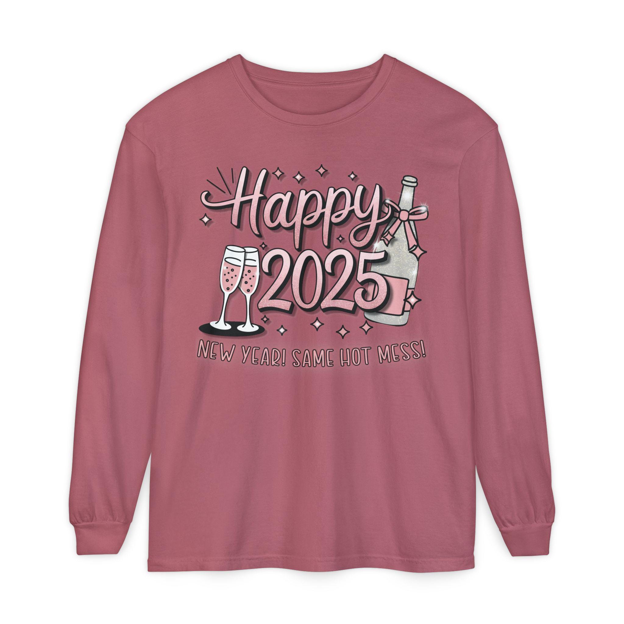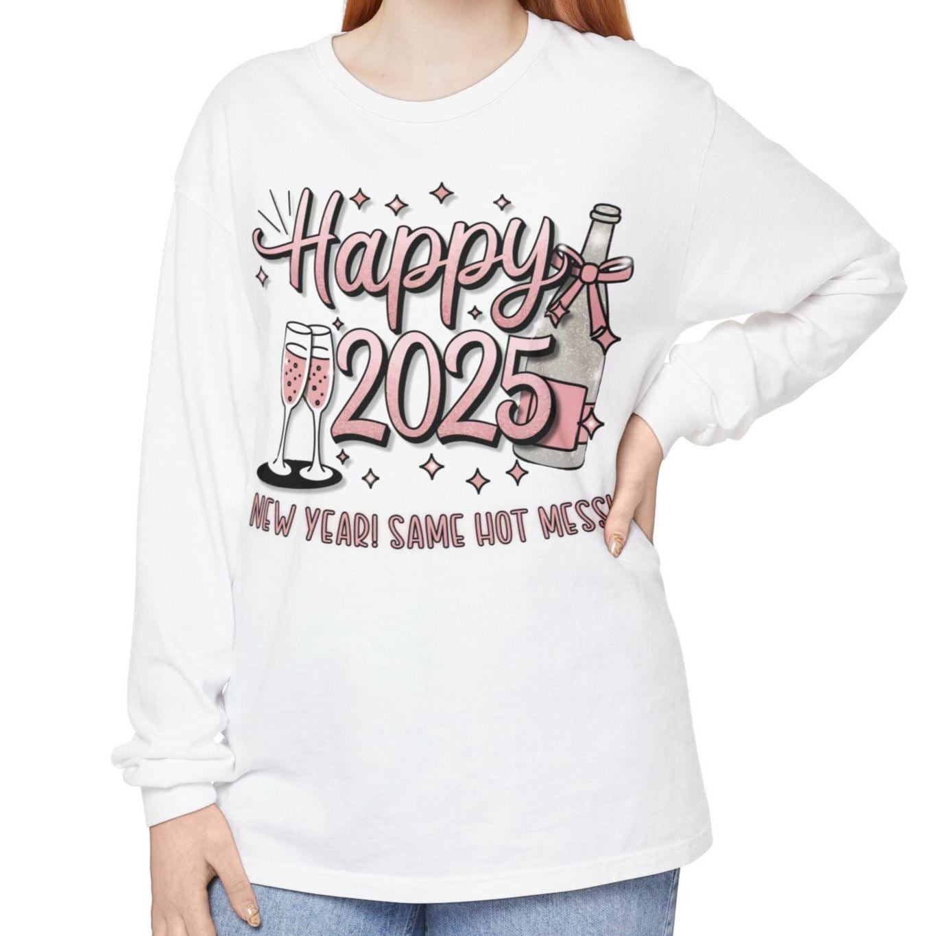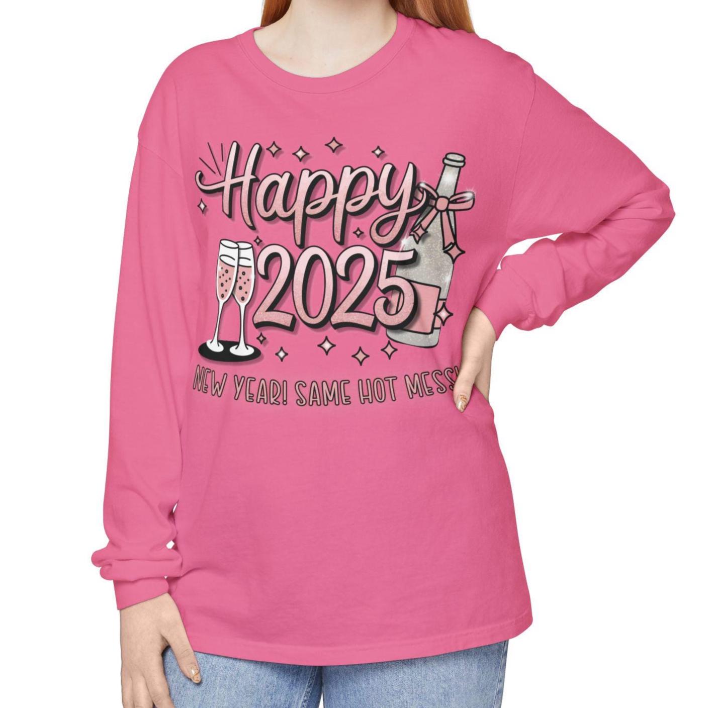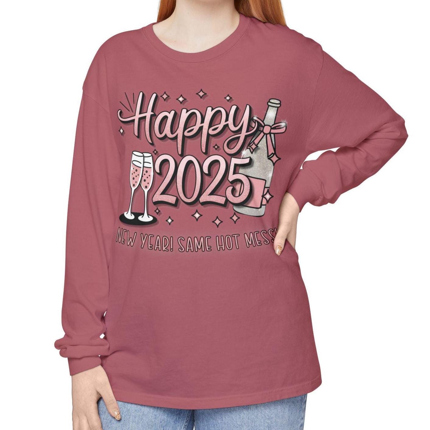 ⭐ Ring in 2025 with sparkle and sarcasm — the perfect New Year’s long sleeve for hot messes with big dreams.
