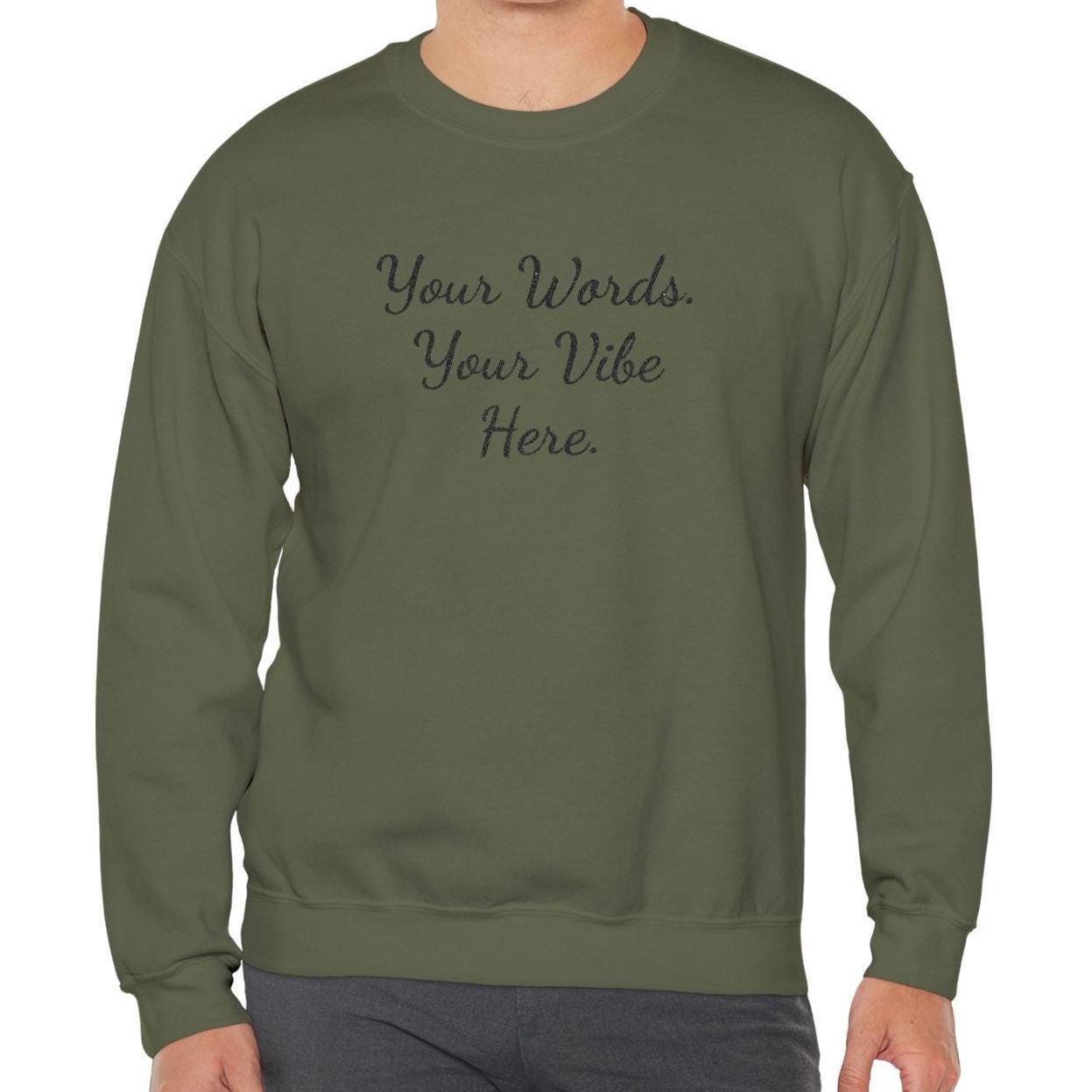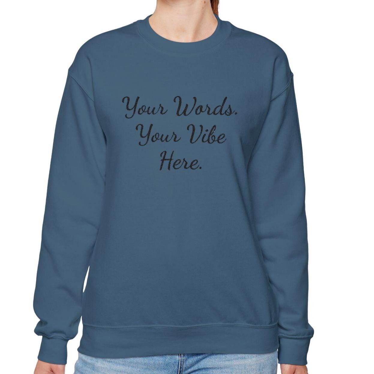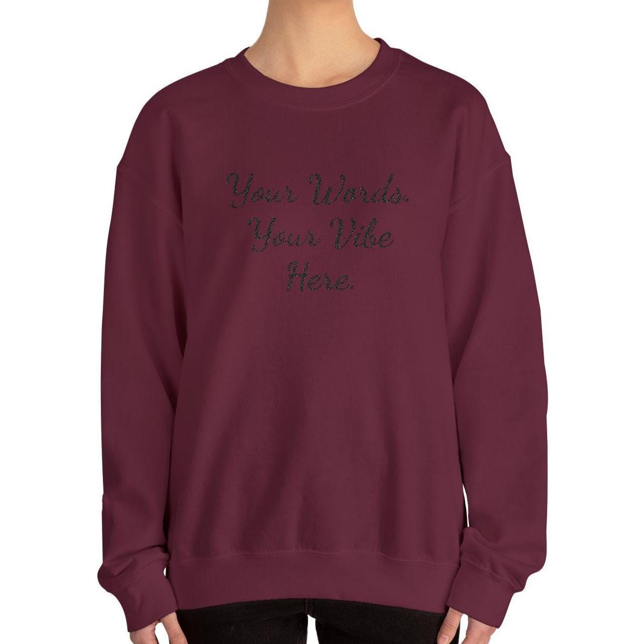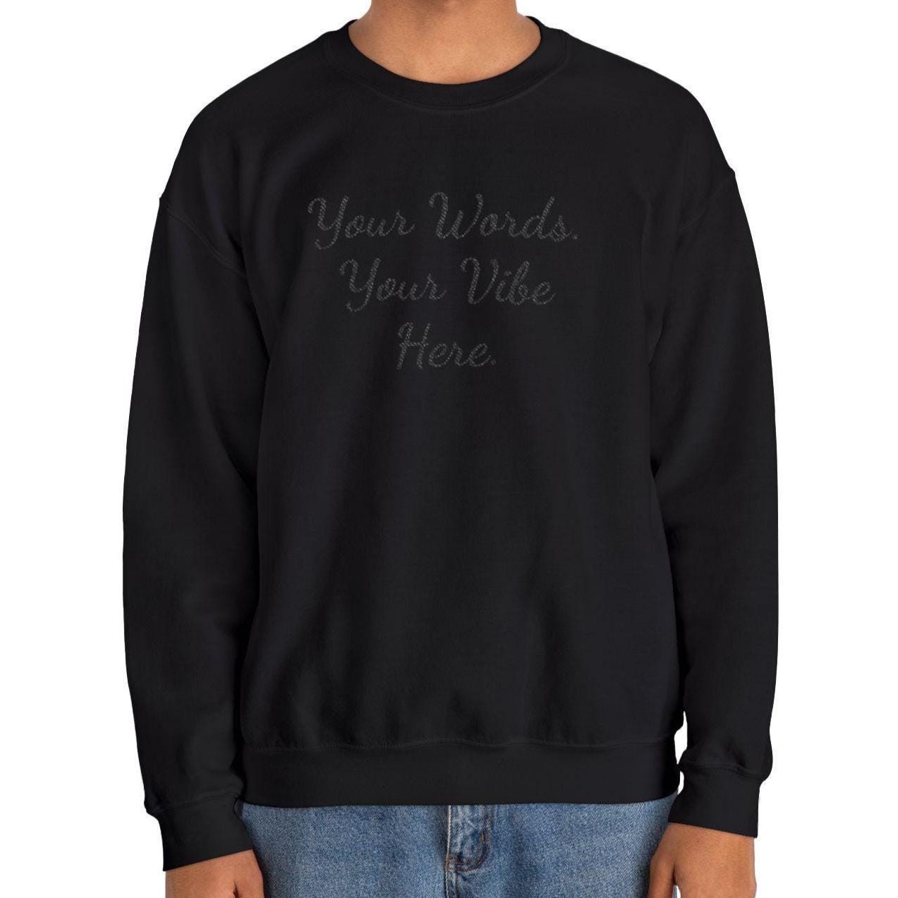 🖤 Personalized embroidered crewneck with elegant script lettering — customize your name, word, or mantra in black thread on a cozy sweatshirt. Choose subtle black-on-black or bold contrasting colors. Boutique quality, meaningful, and made just for you.