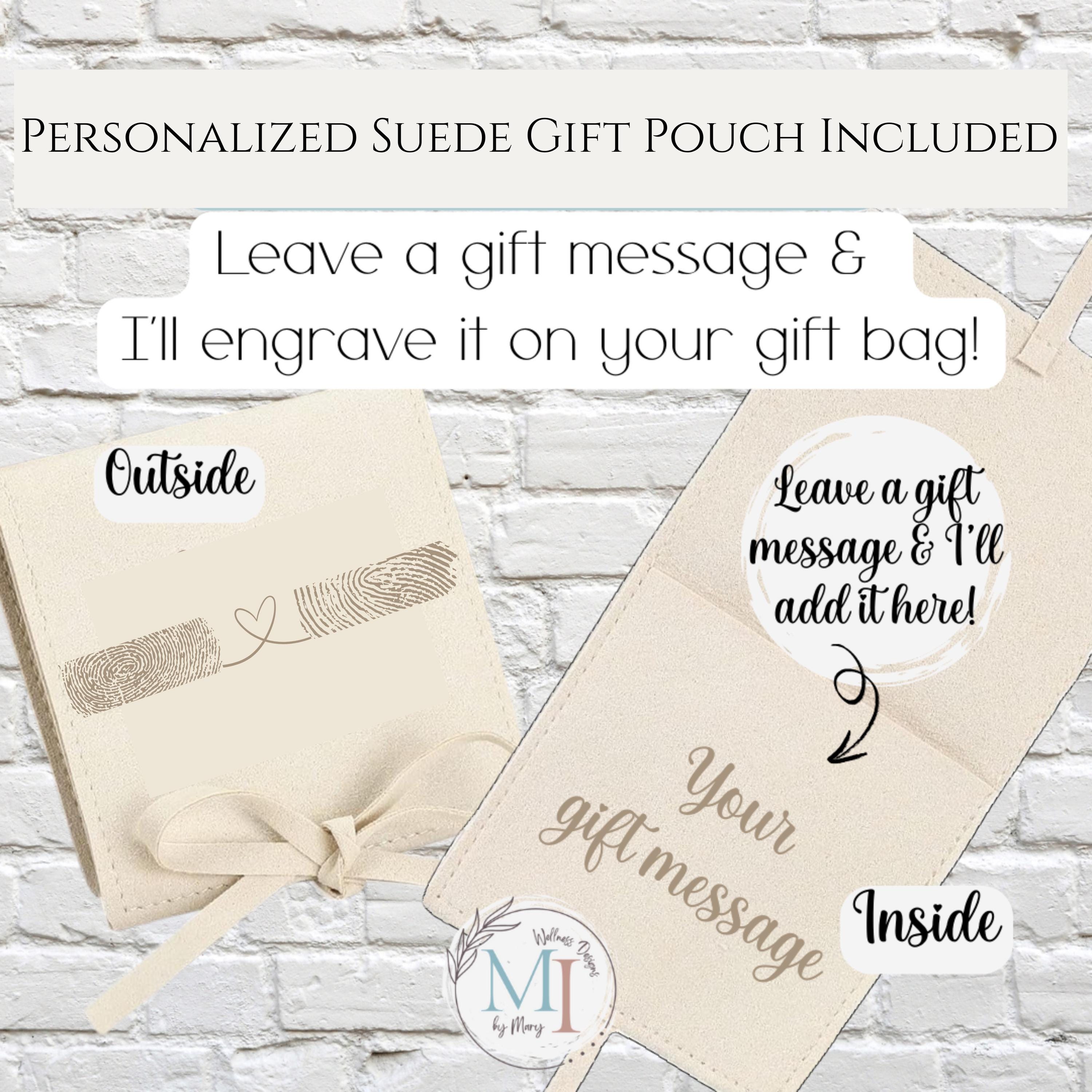 β’ Premium engraved gift pouch: the front matches your ring design, the inside has optional gift message engraved inside.