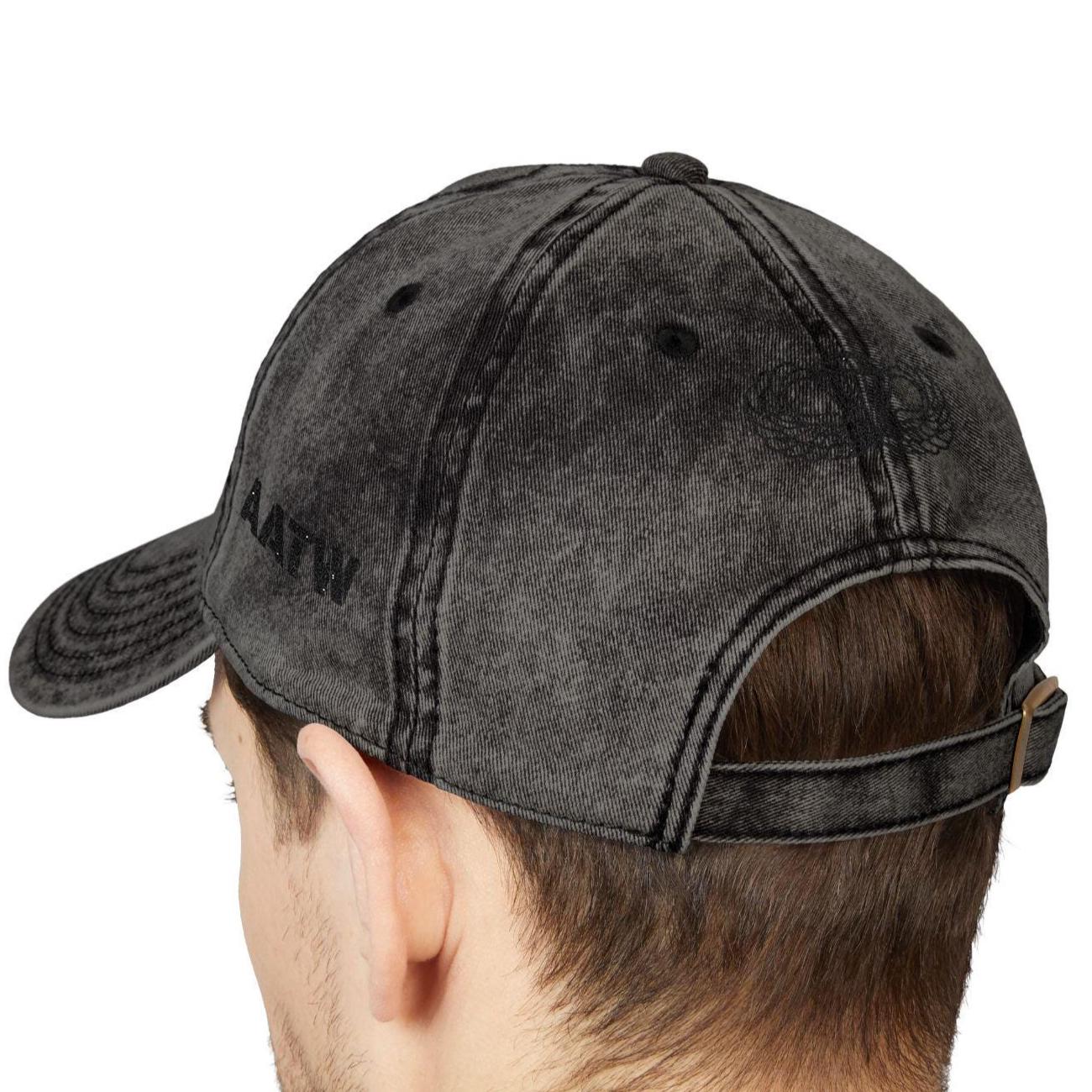 Side view showing embroidered American flag and customizable โAATWโ text.