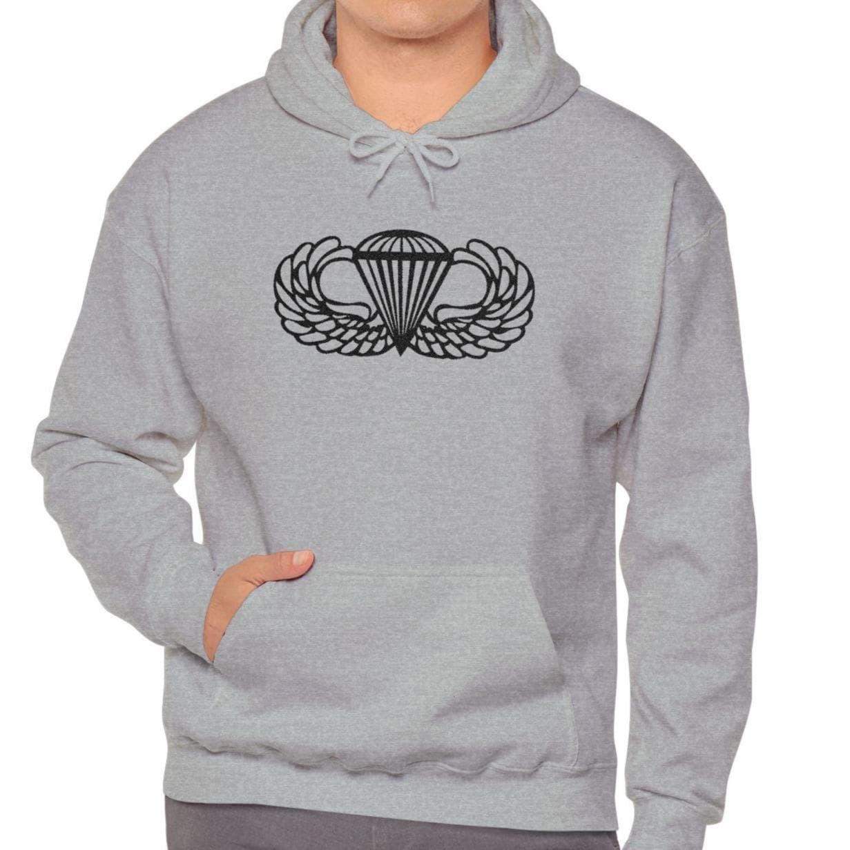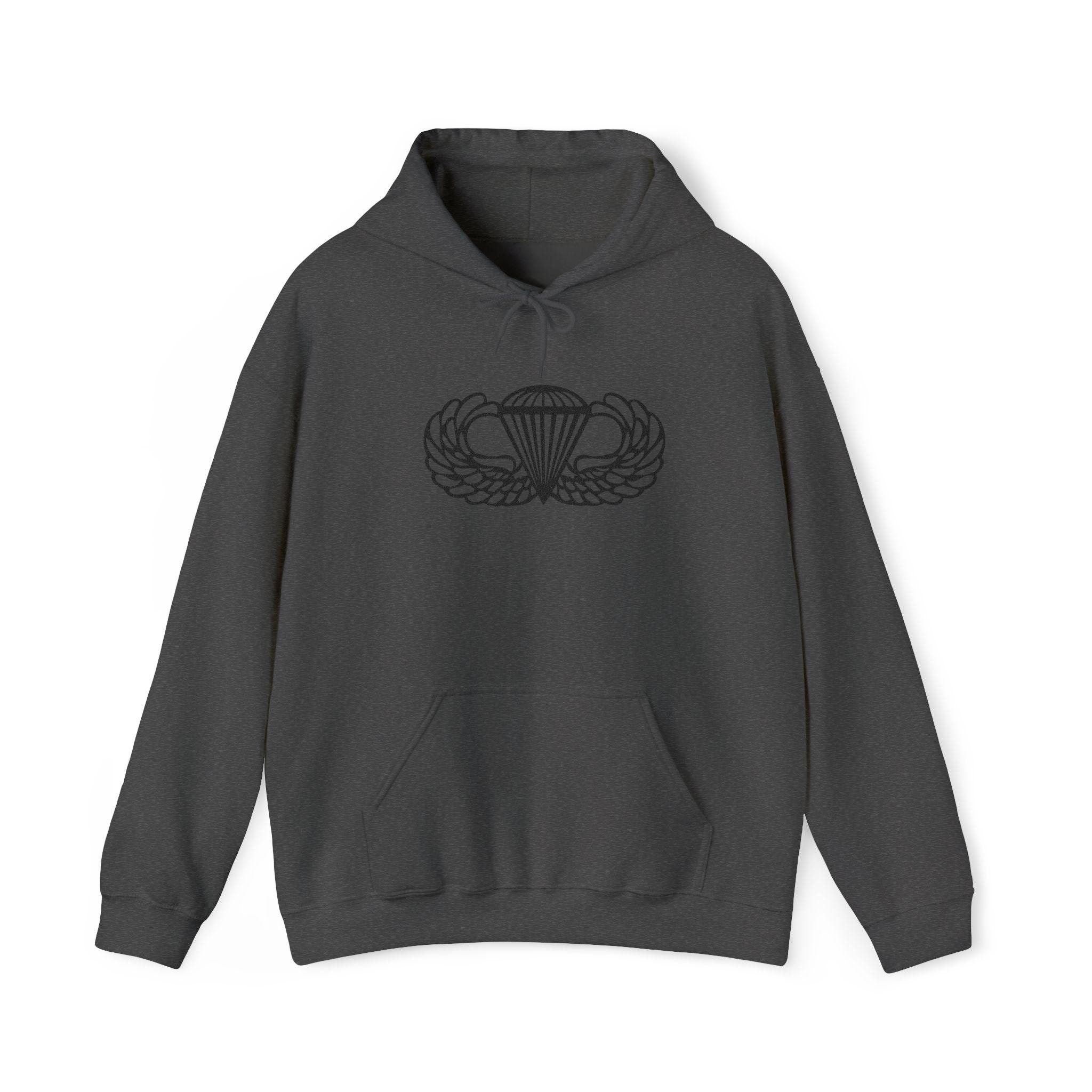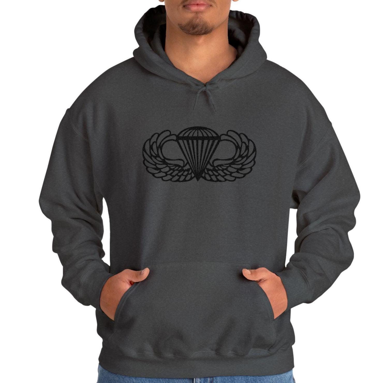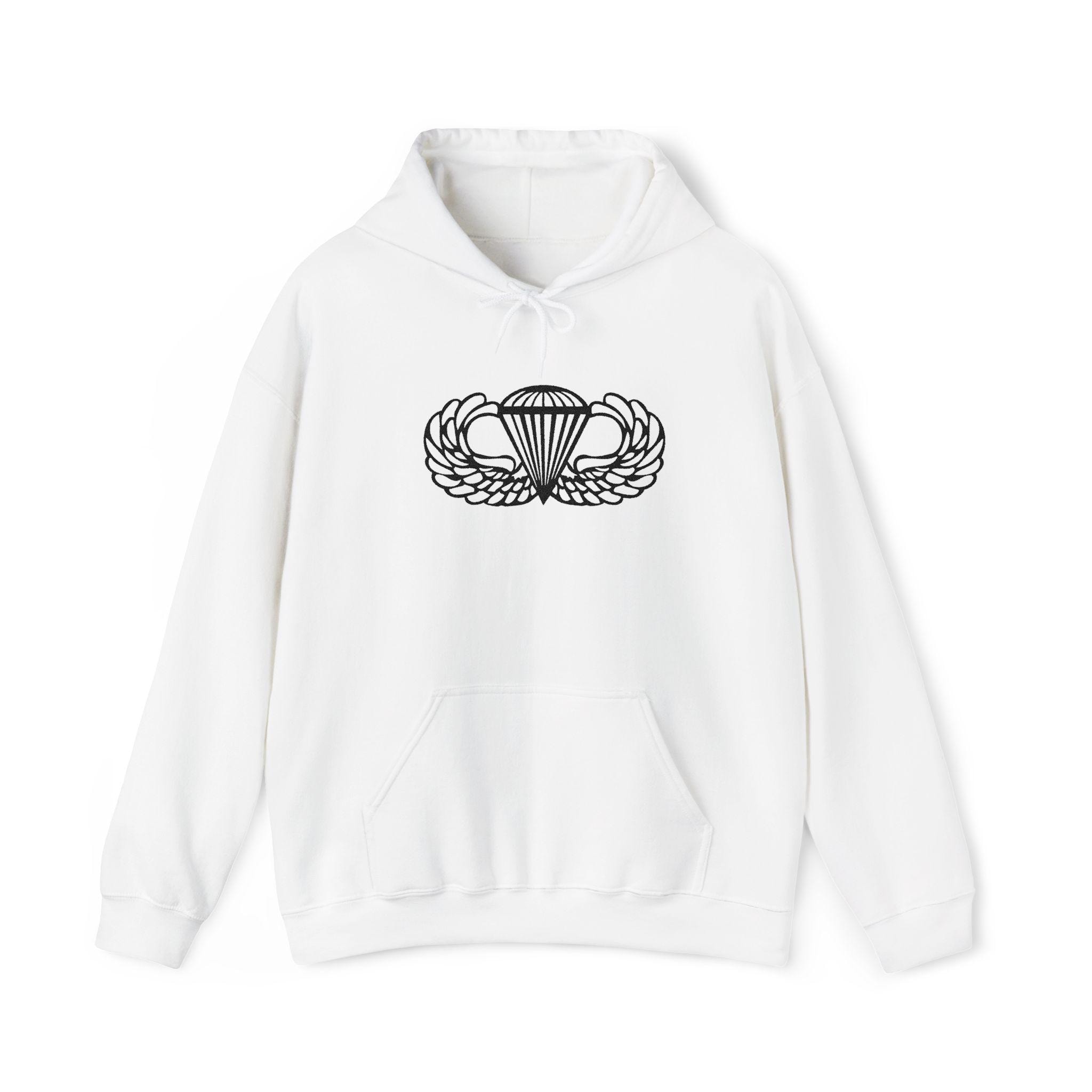 ⭐ A clean, sharp embroidered hoodie featuring the iconic U.S. Army Airborne Paratrooper Wings — stitched in bold black thread for a timeless, tactical look. Made on the ultra-cozy Gildan 18500.