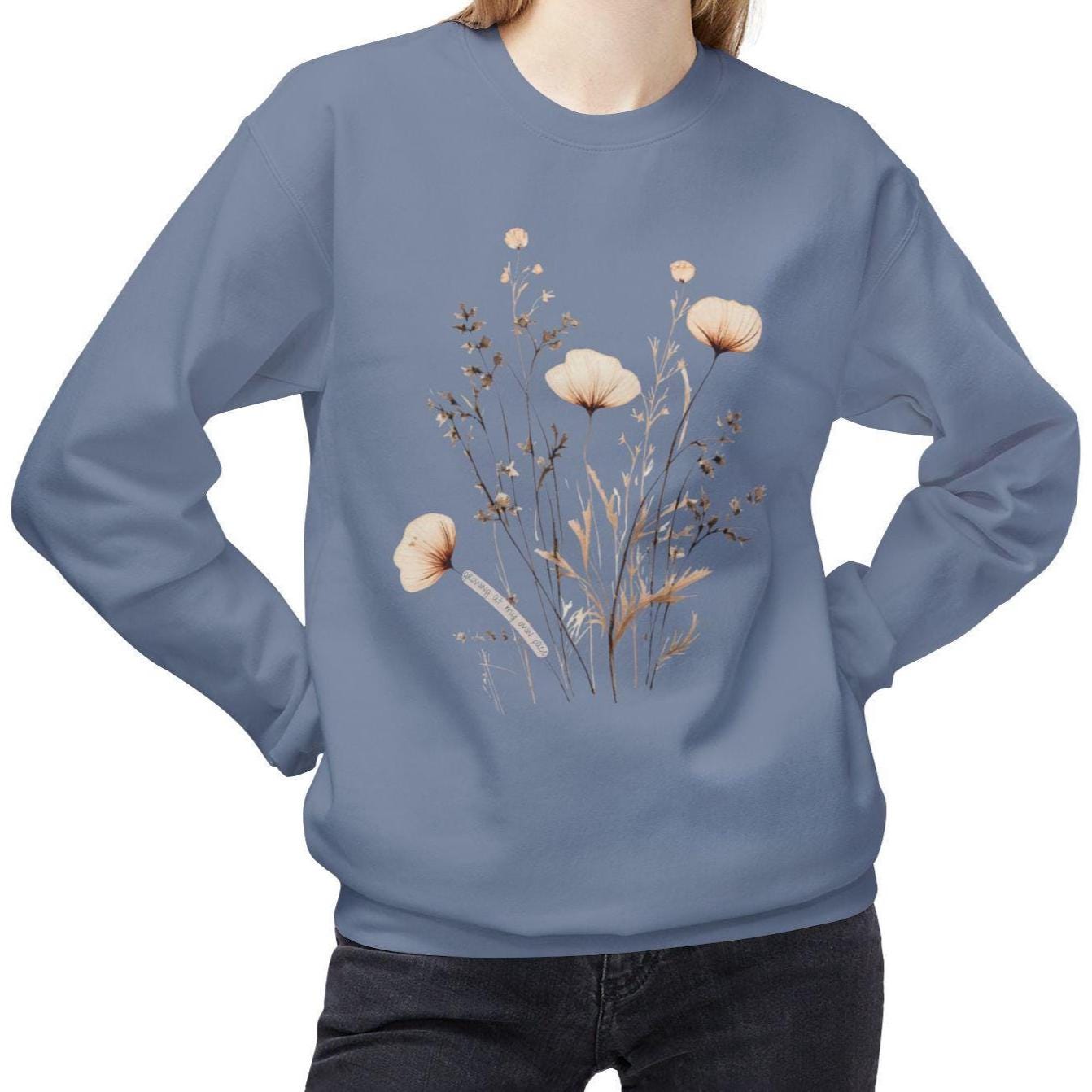 Soft botanical sweatshirt with the phrase “growing at my own pace.” A cozy cottagecore floral crewneck for nature lovers, wellness, and gentle self-growth.