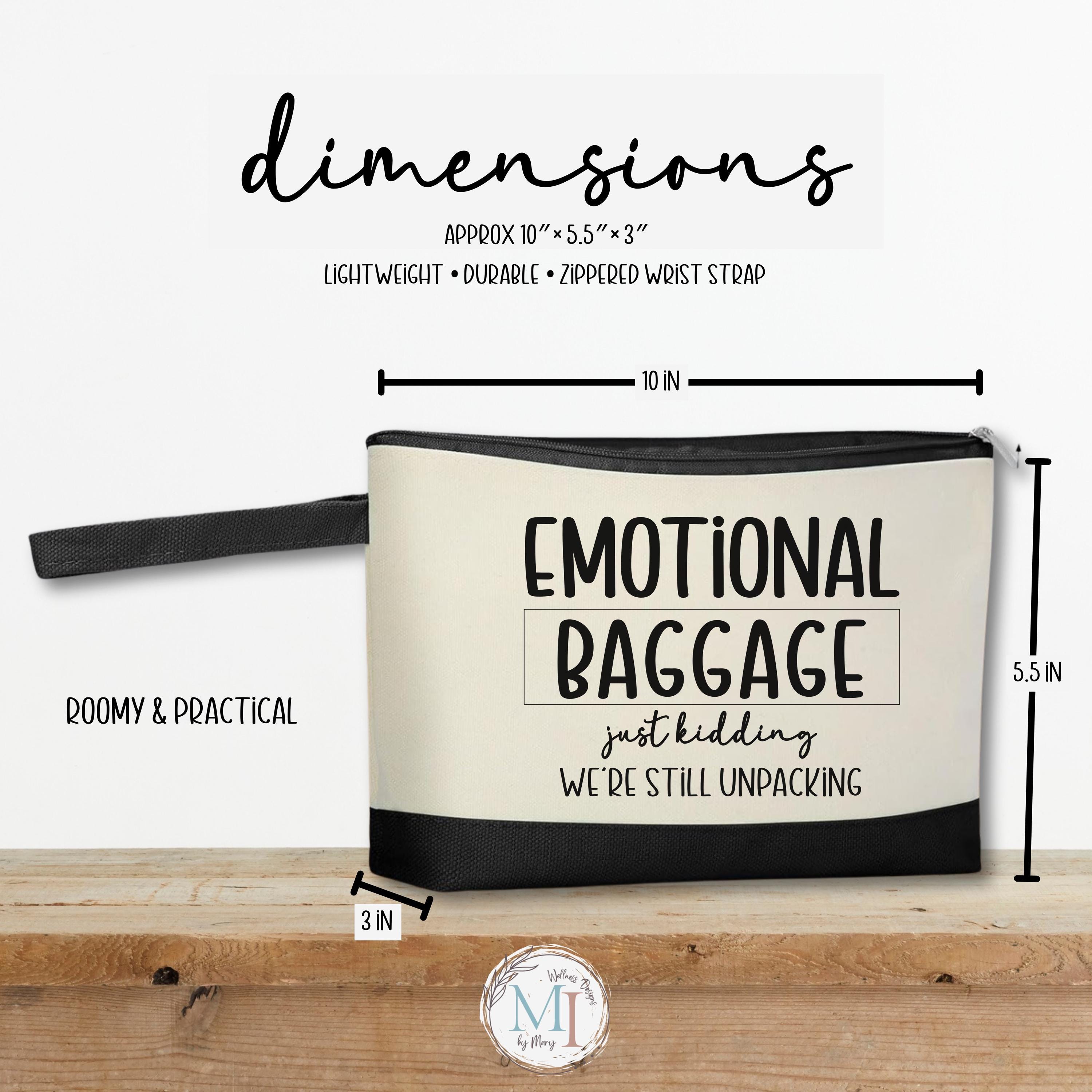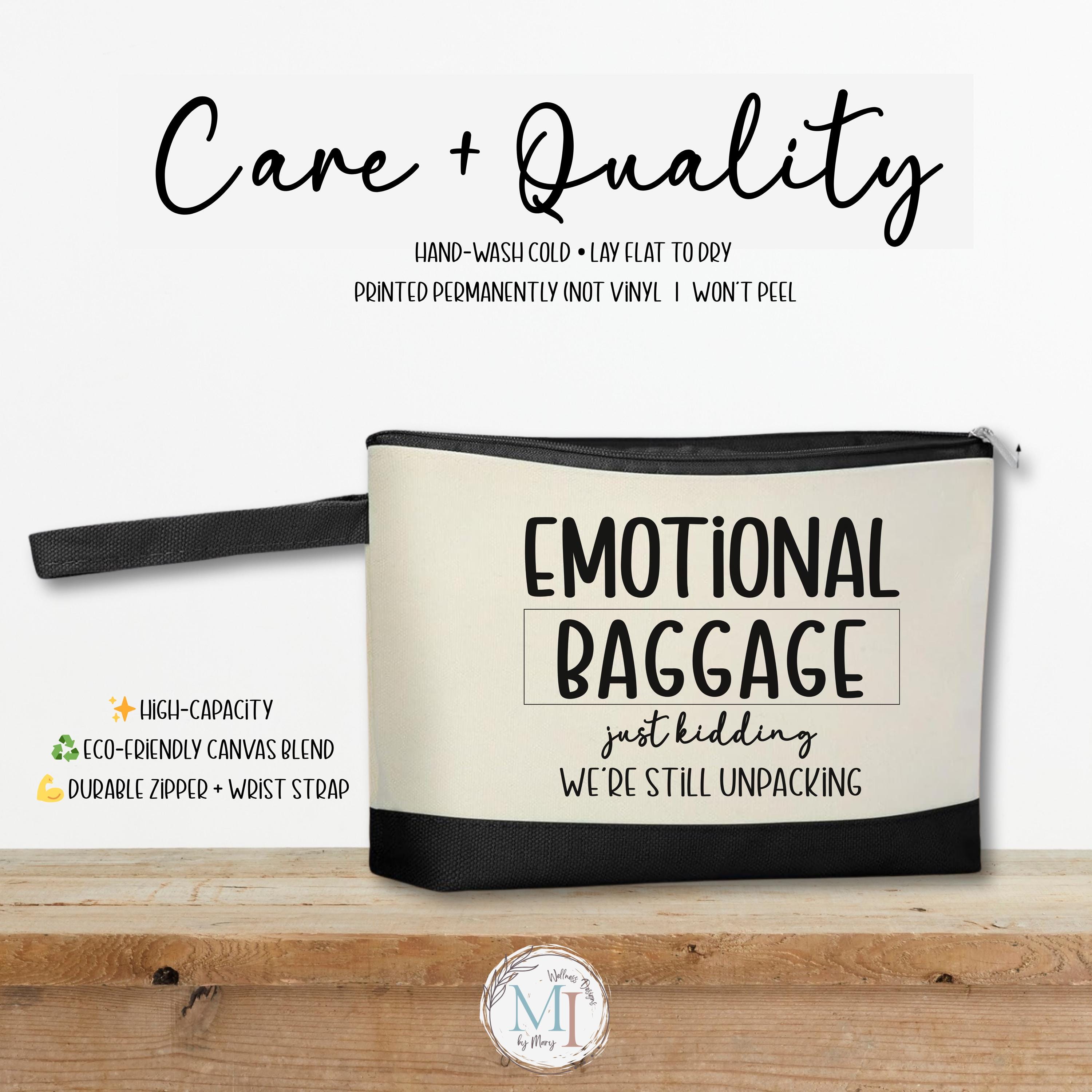 Carry the essentials… and laugh about the rest. Our “Emotional Baggage” makeup bag is roomy, durable, and perfectly sarcastic — pick your favorite “just kidding…” line and make it yours.