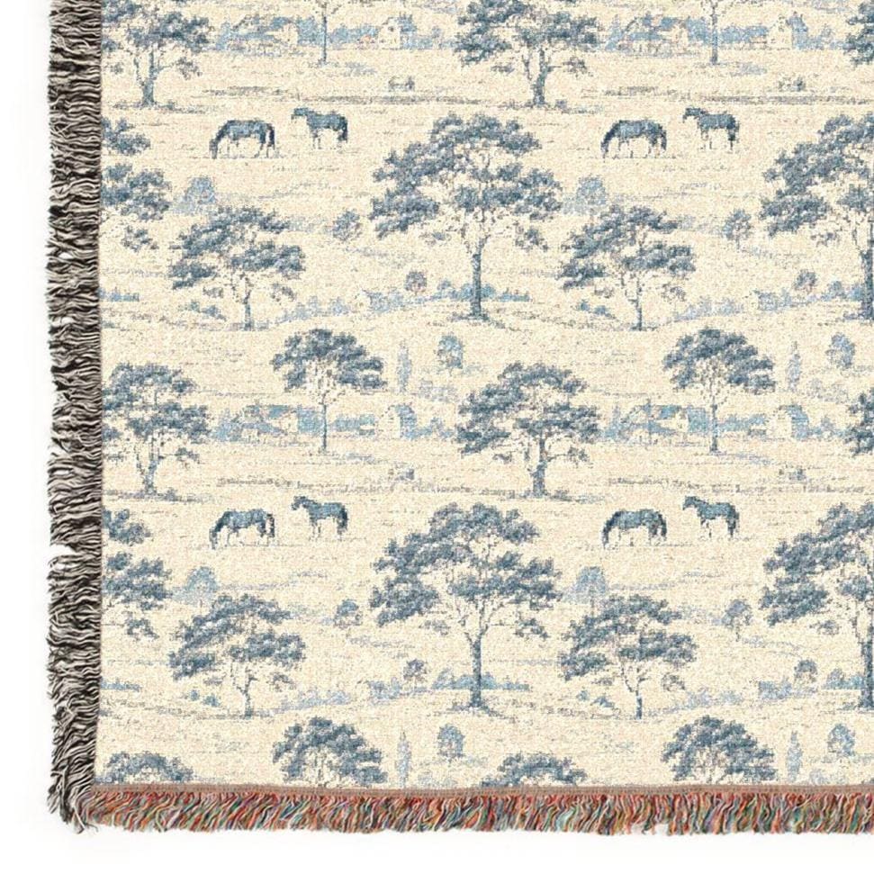 The pastoral design is woven directly into the fabric, giving the blanket depth, texture, and a noticeably heavier feel than standard throws. The result is a piece that feels substantial and comforting, perfect for those drawn to nostalgic, countryside-inspired décor.