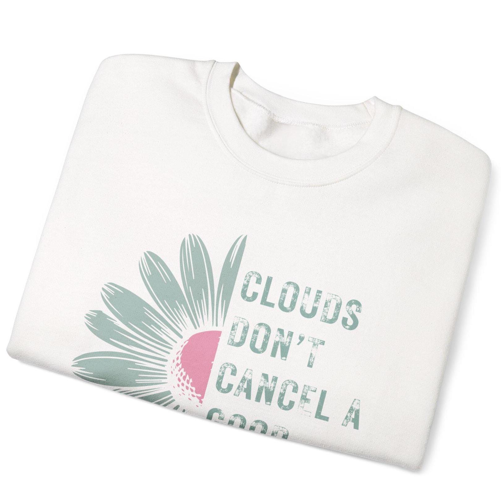 But clouds don’t cancel a good day, and this sweatshirt is your gentle reminder of that.