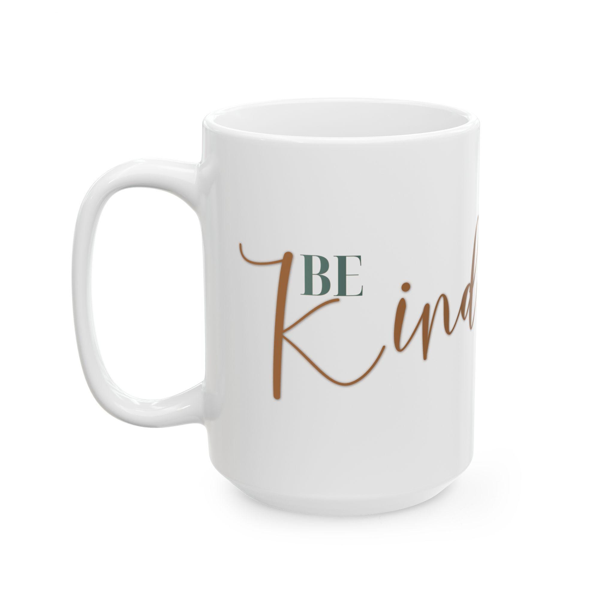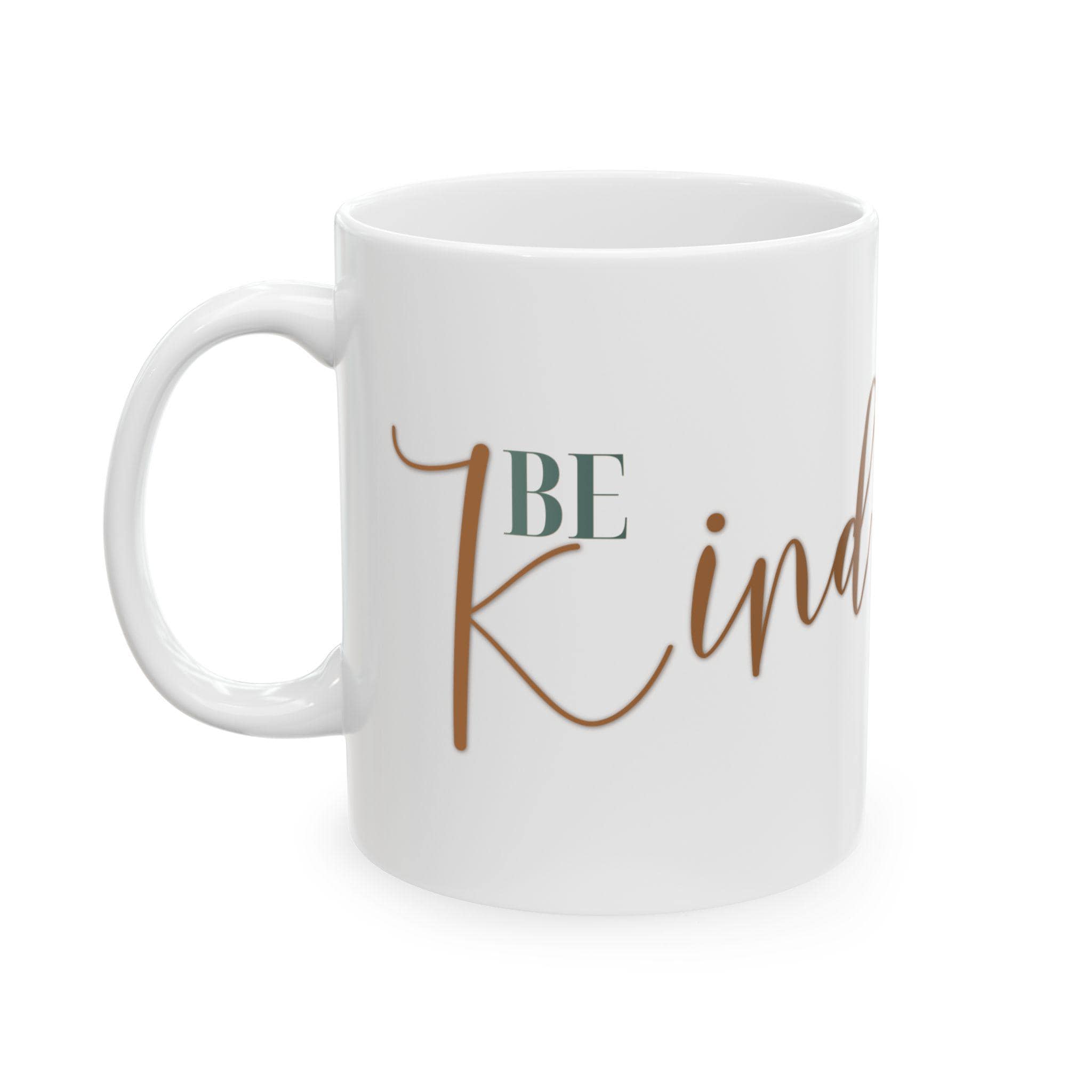 A calming “Be Kind” mug designed in patina blue with warm aged-copper lettering — perfect for quiet mornings, reflection, and mindful gifting.