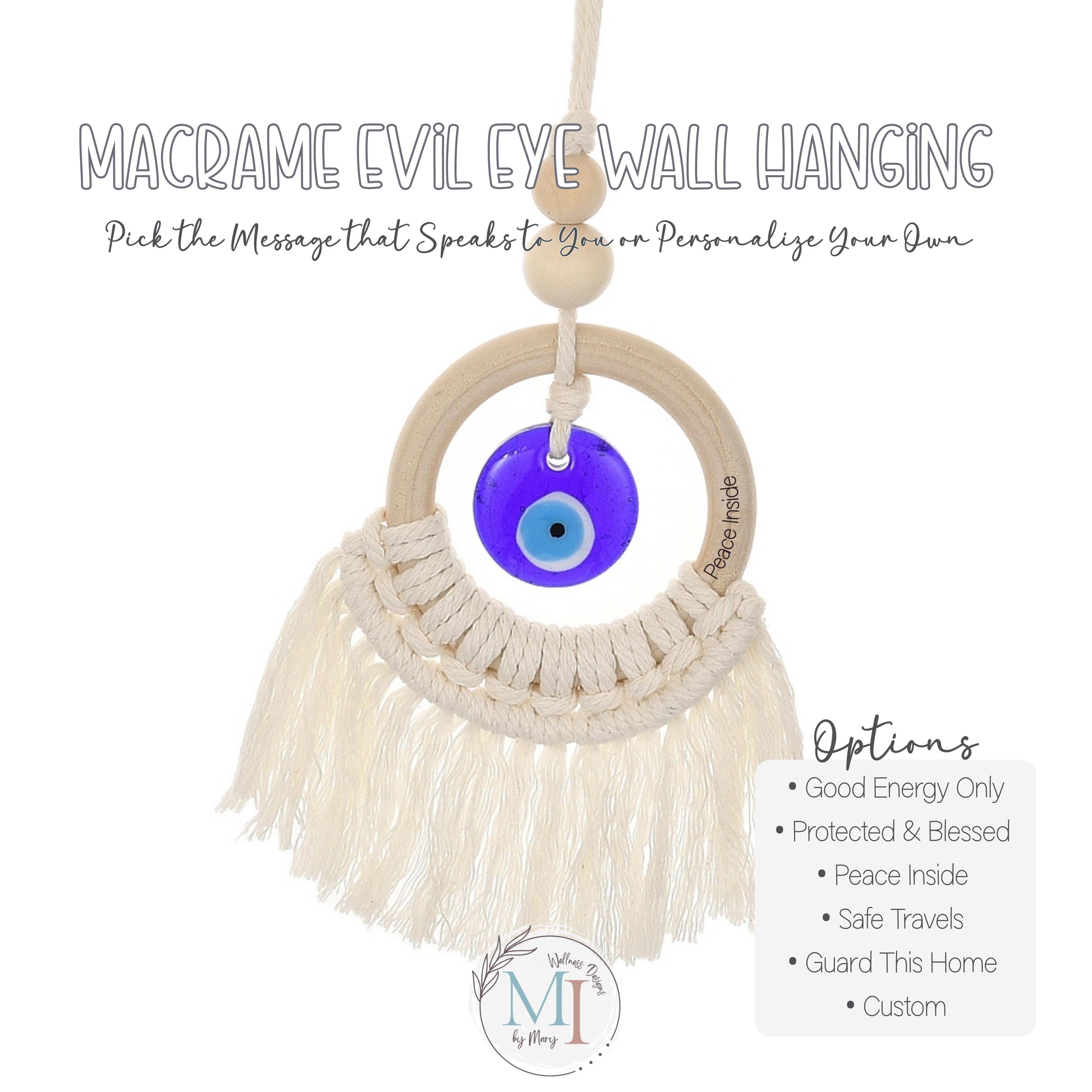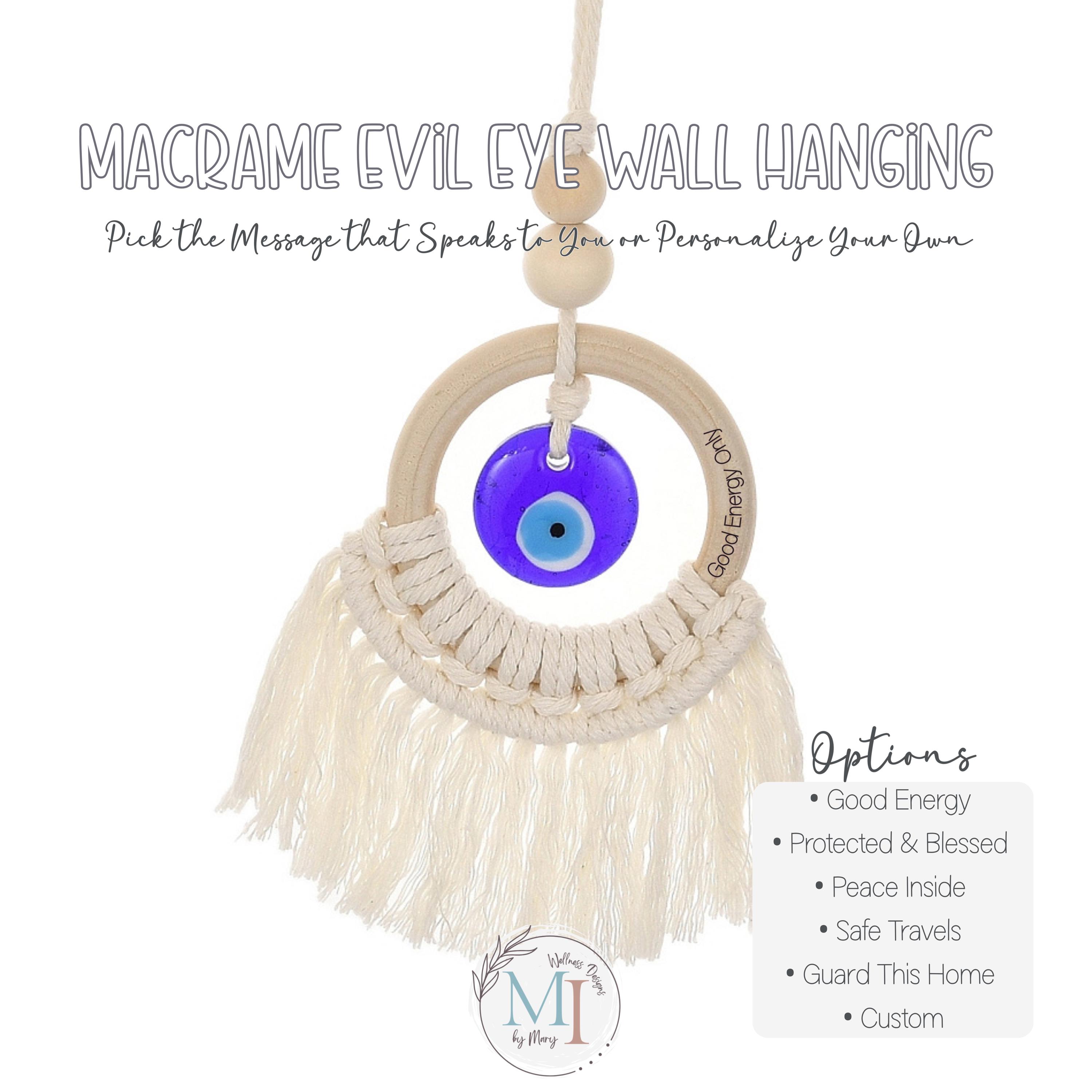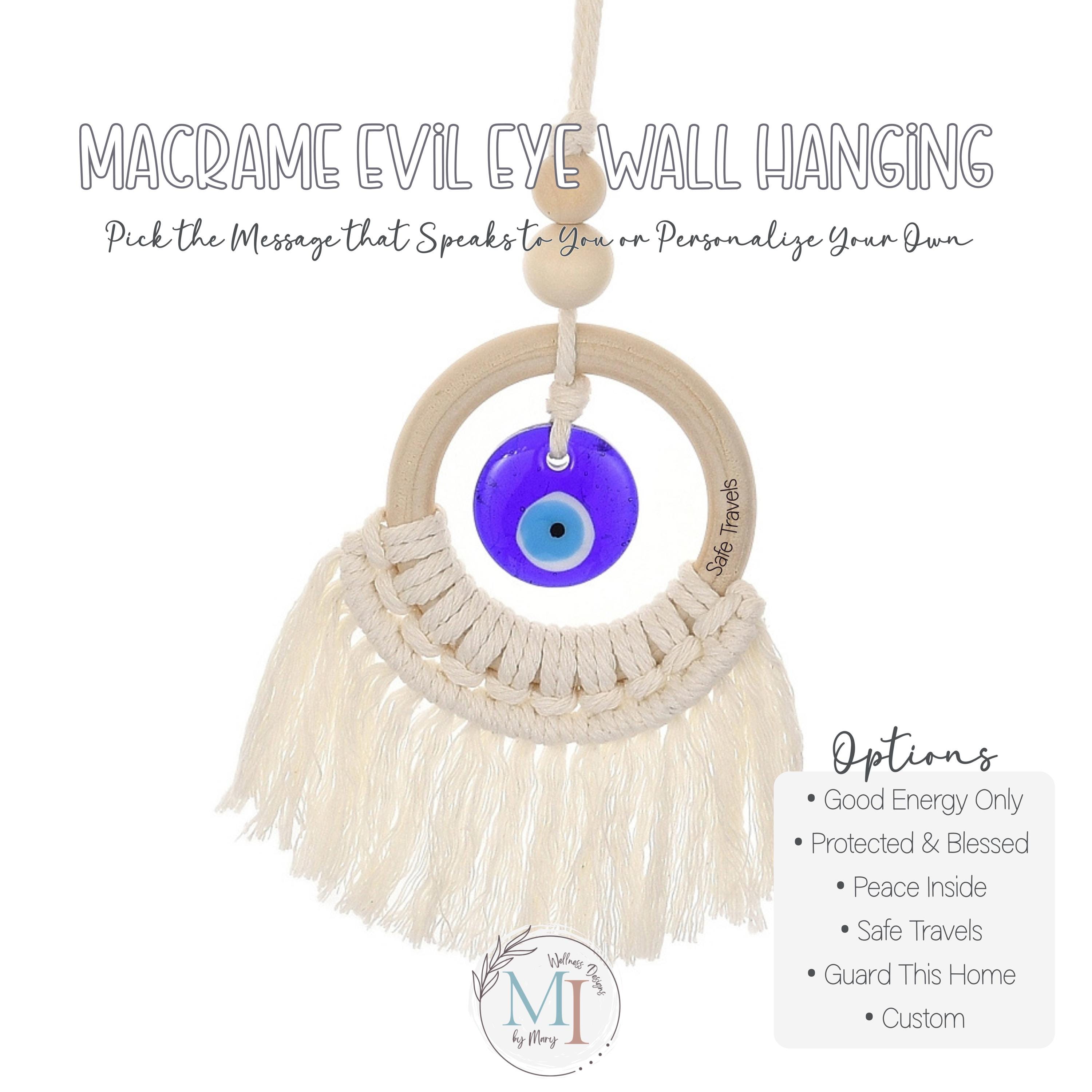 Each macrame evil eye hanger features an engraved protection phrase — or personalize your own message for a truly meaningful gift.