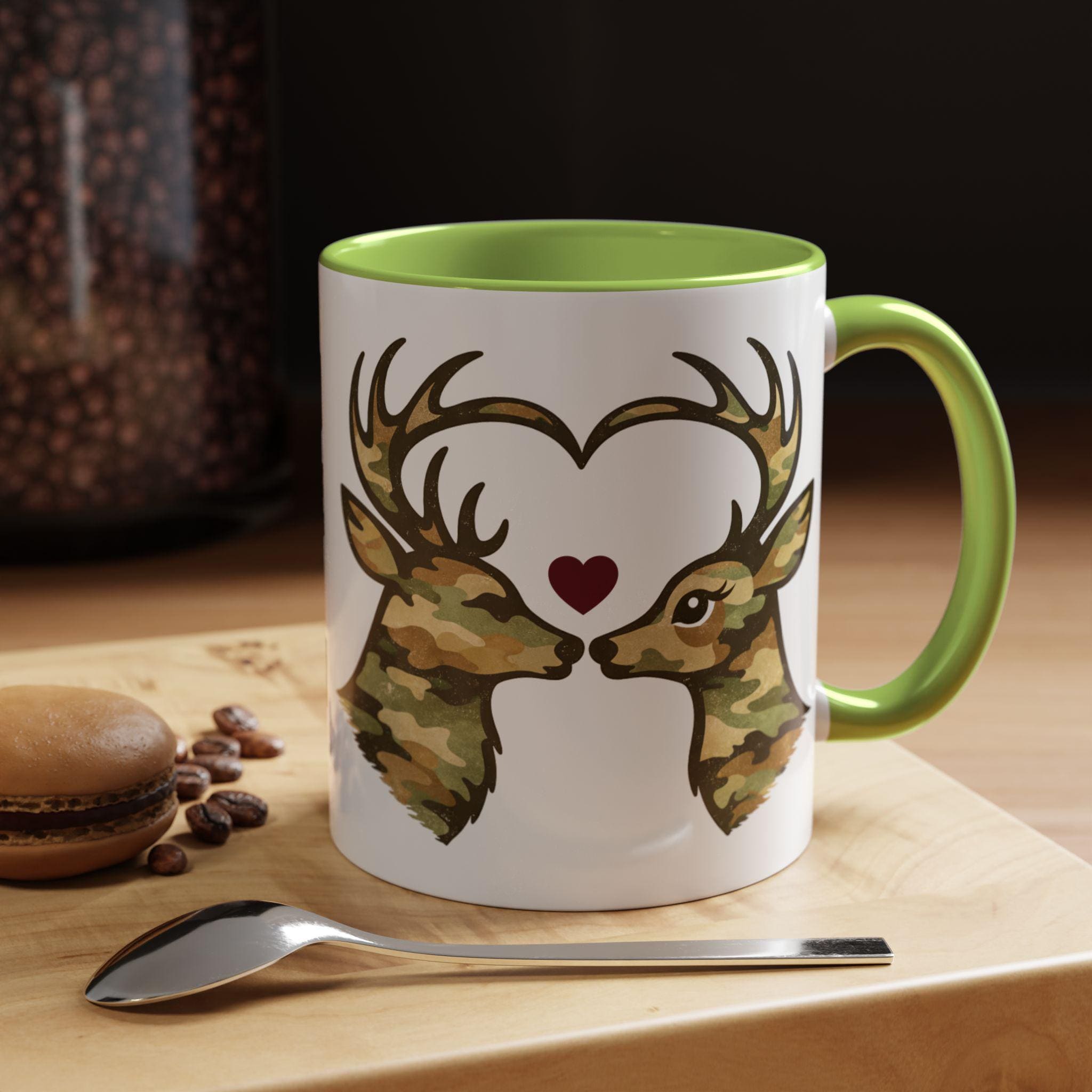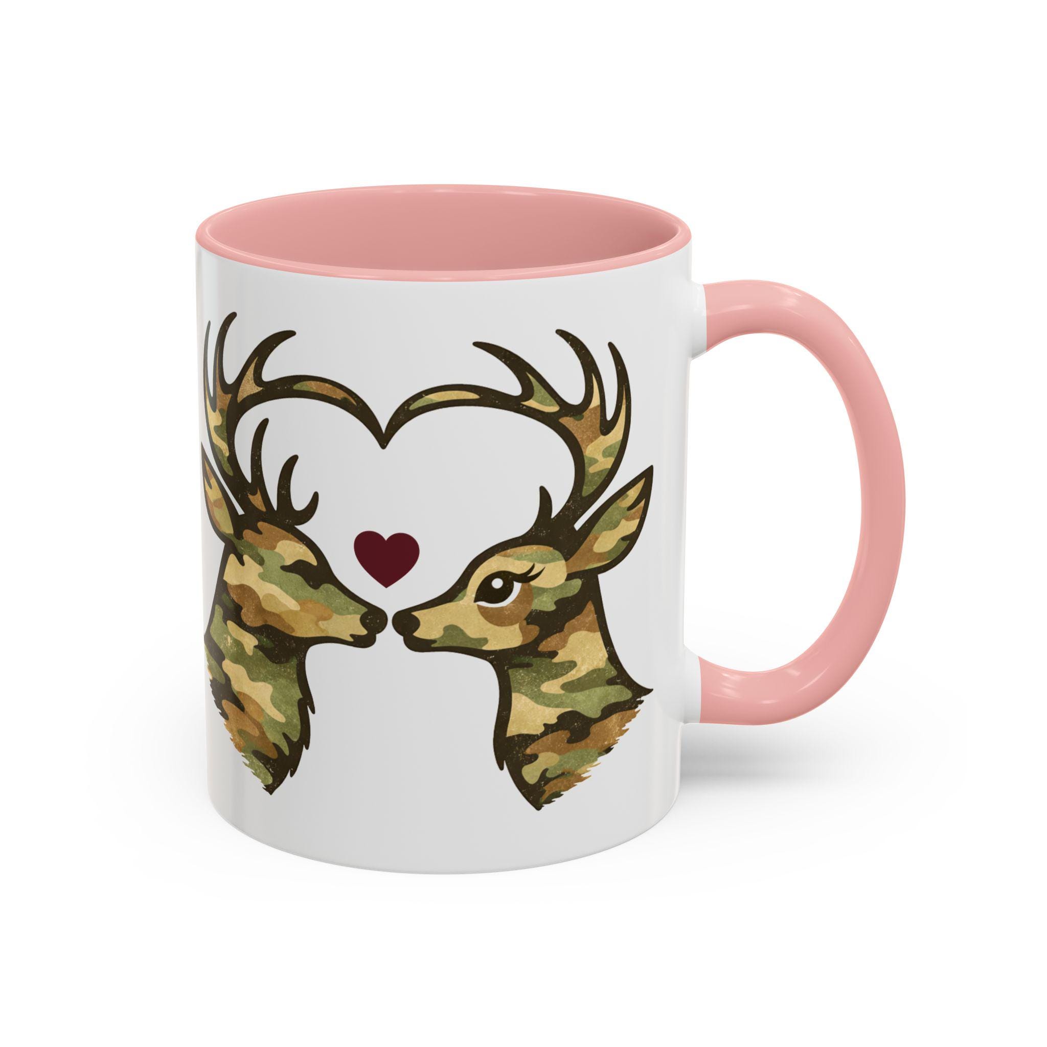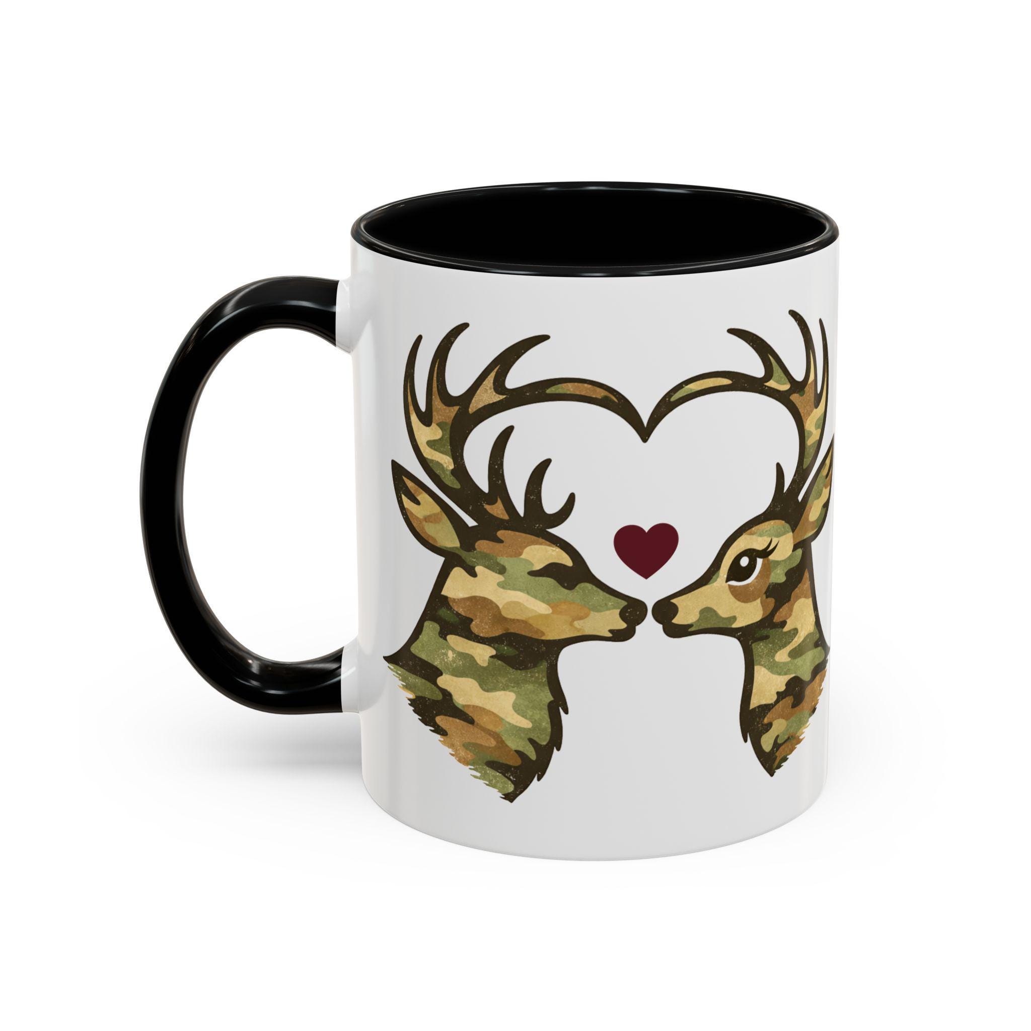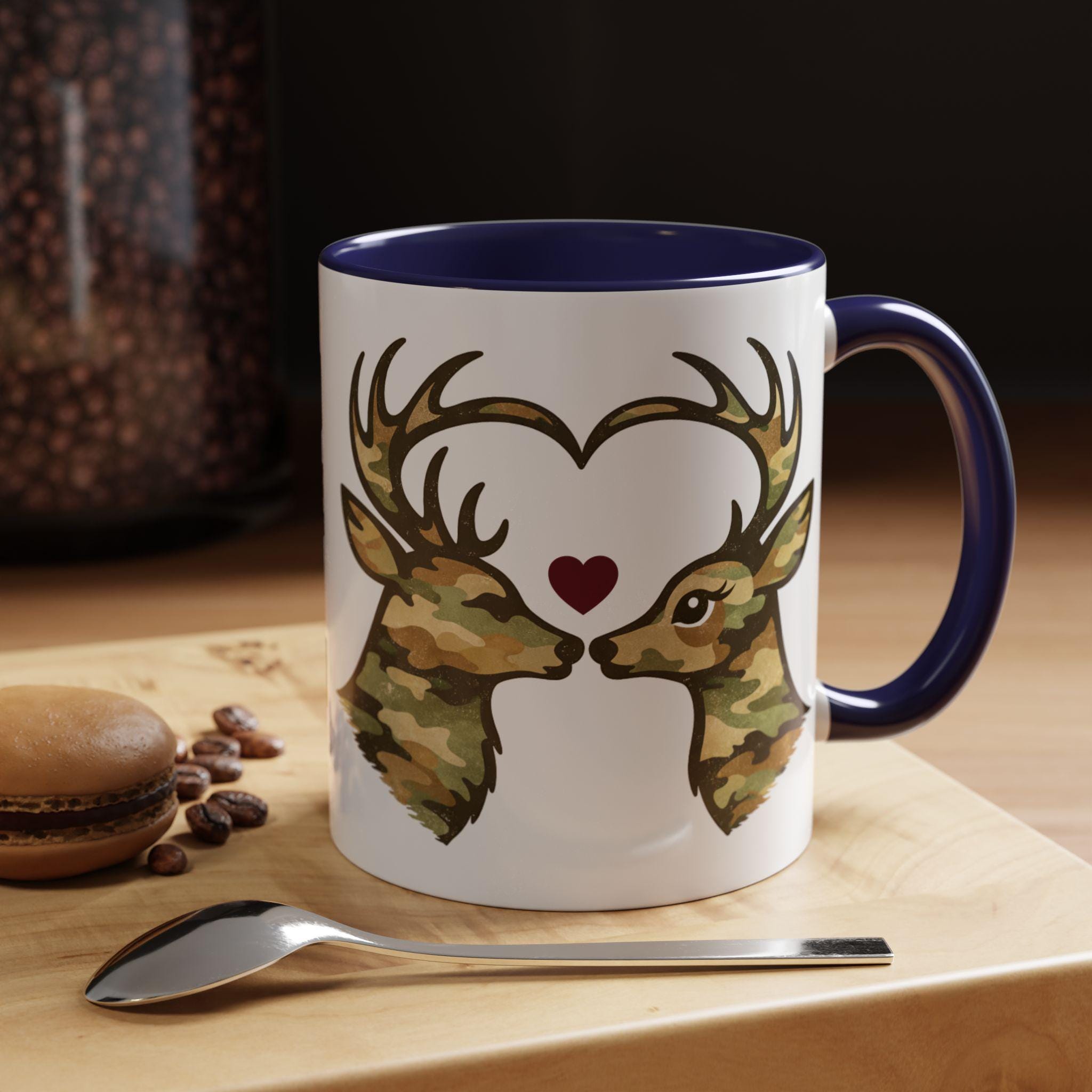 🦌 A cozy camo deer mug featuring two woodland deer forming a heart, finished with a subtle burgundy accent. A rustic, outdoorsy coffee mug perfect for Valentine’s Day or everyday cabin vibes.