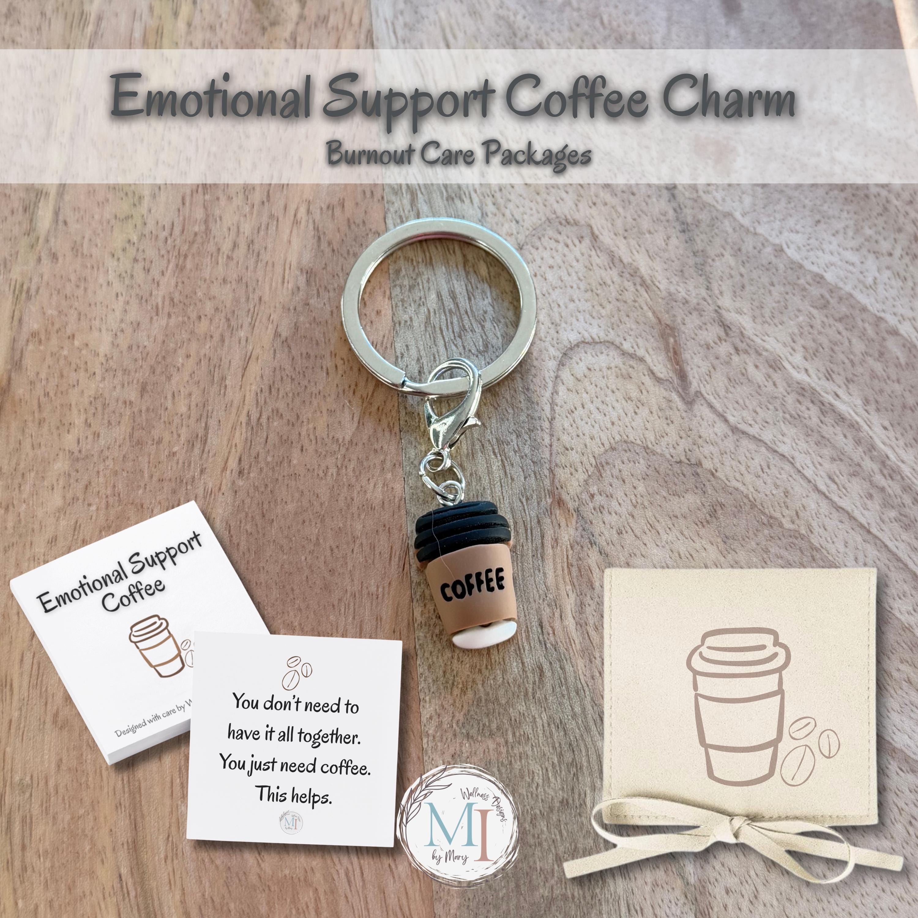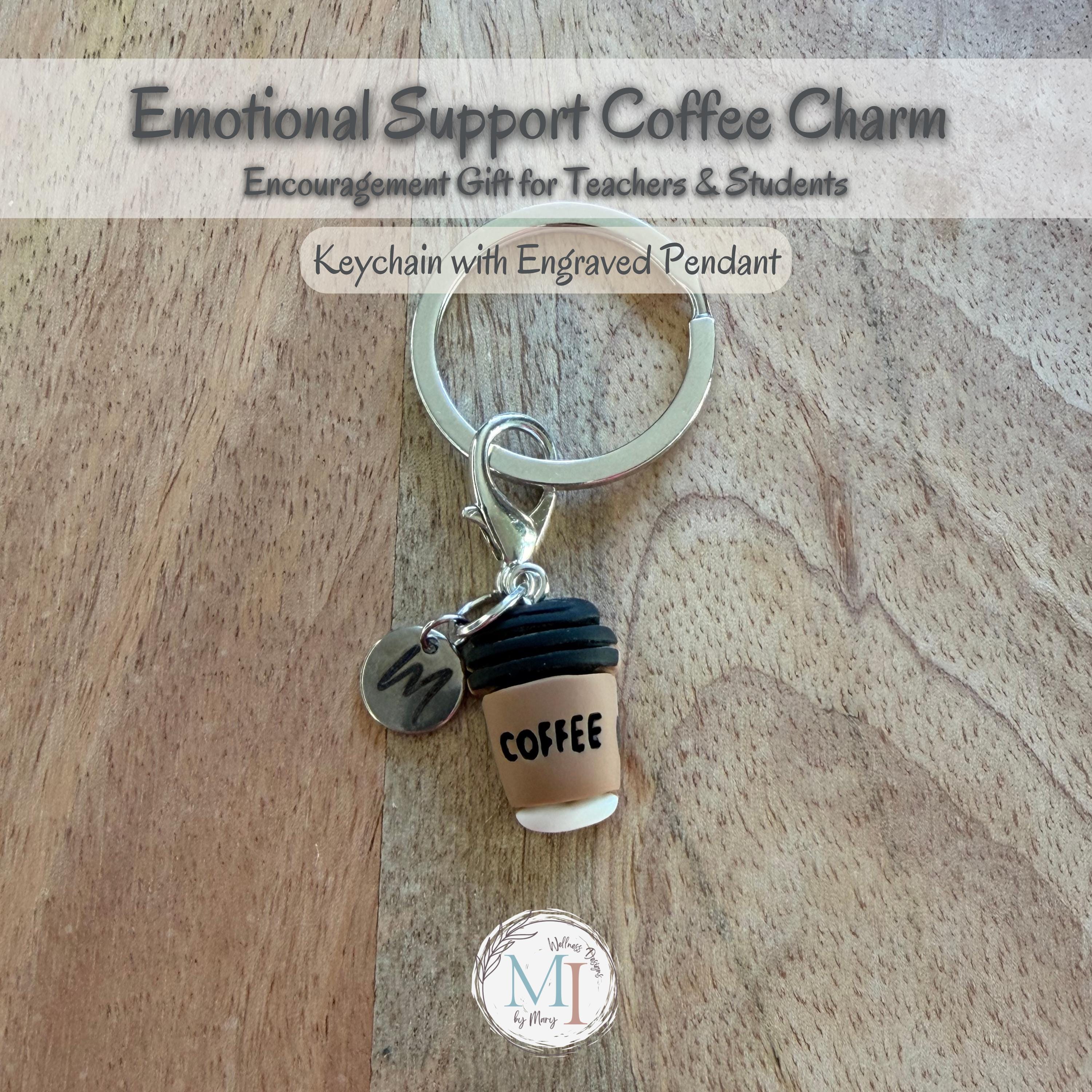 This Emotional Support Coffee Charm is a cozy, thoughtful little comfort object—perfect for keys, bags, backpacks, and more. Designed to feel encouraging without being cheesy, it makes a meaningful gift for coffee lovers, teachers, students, and anyone who runs on caffeine and hope.