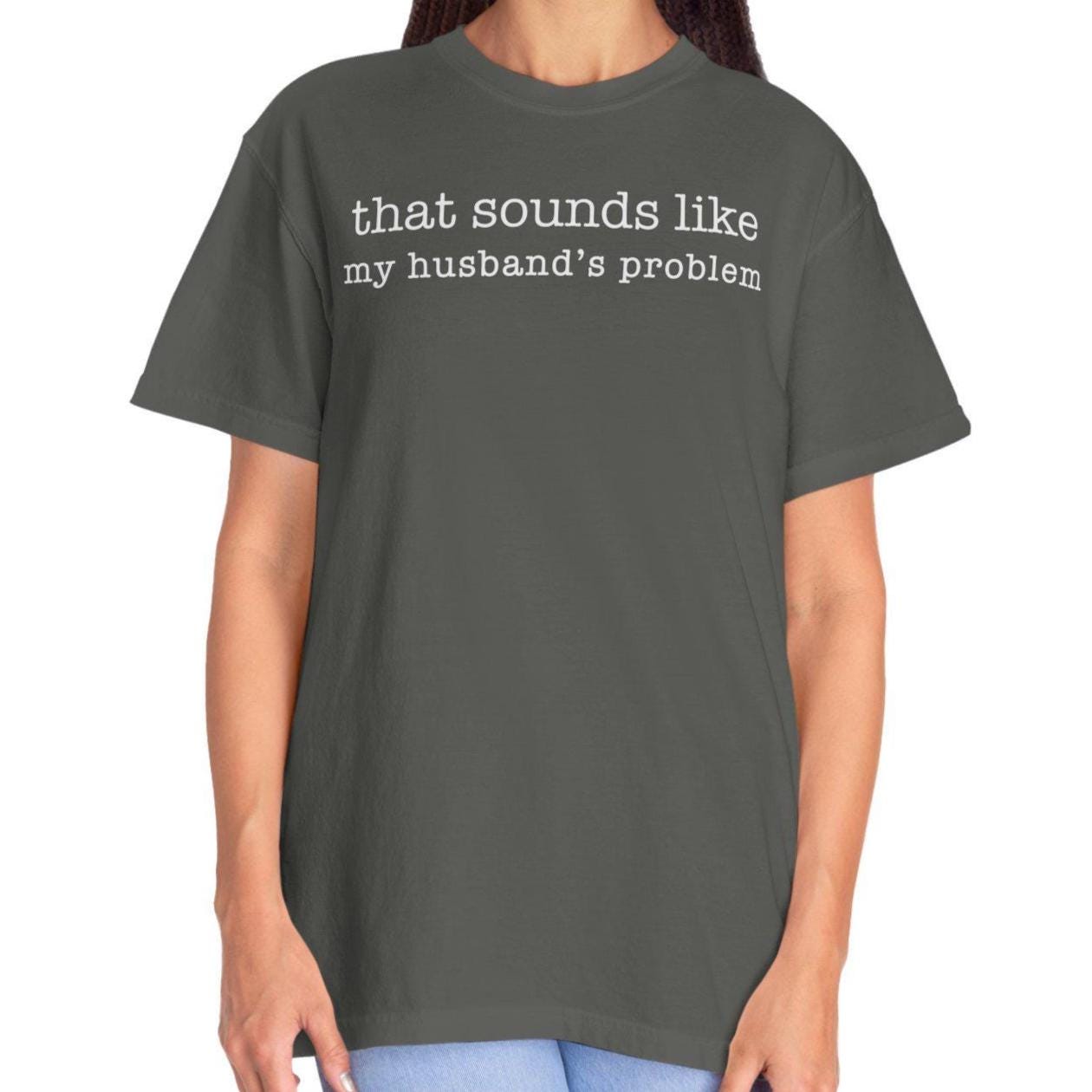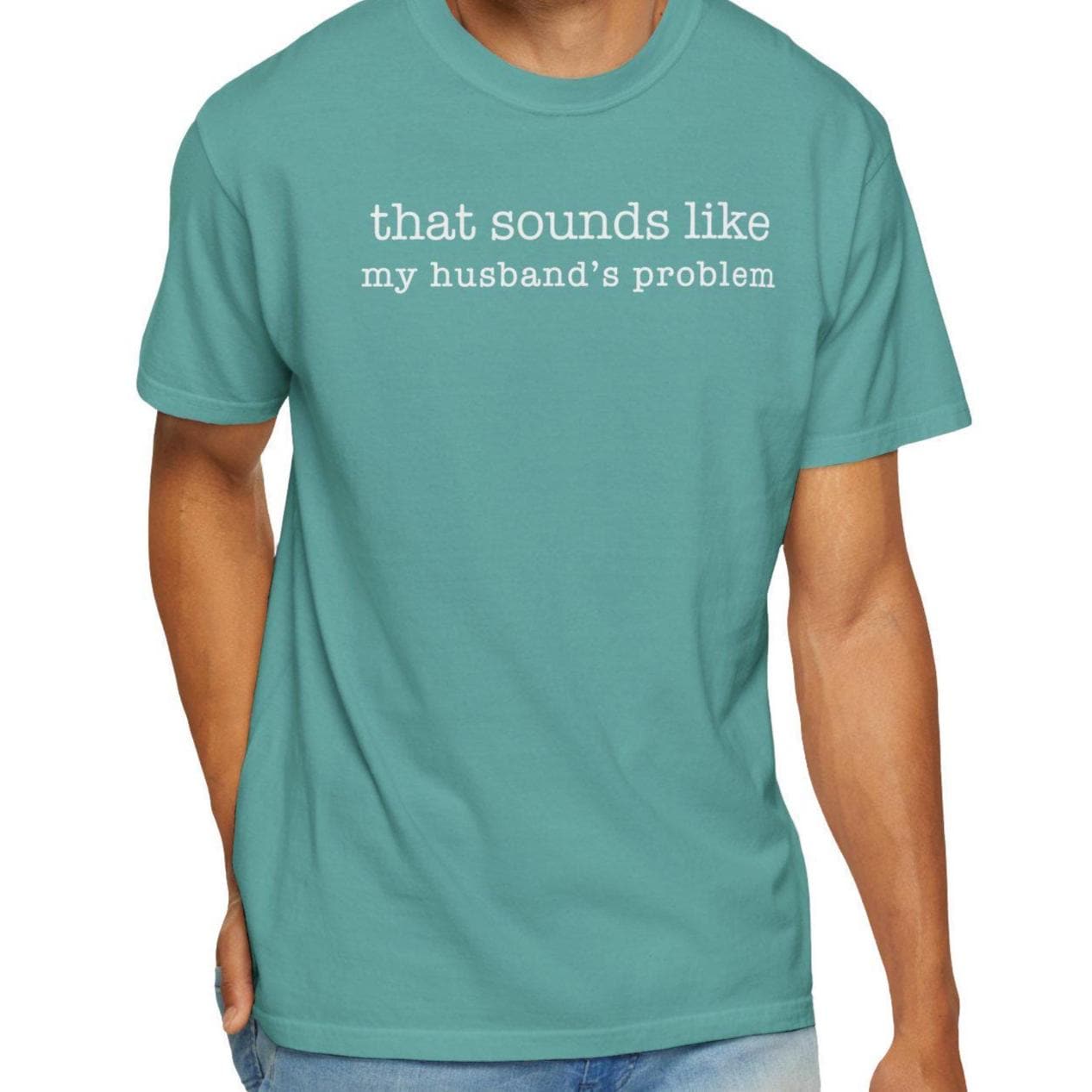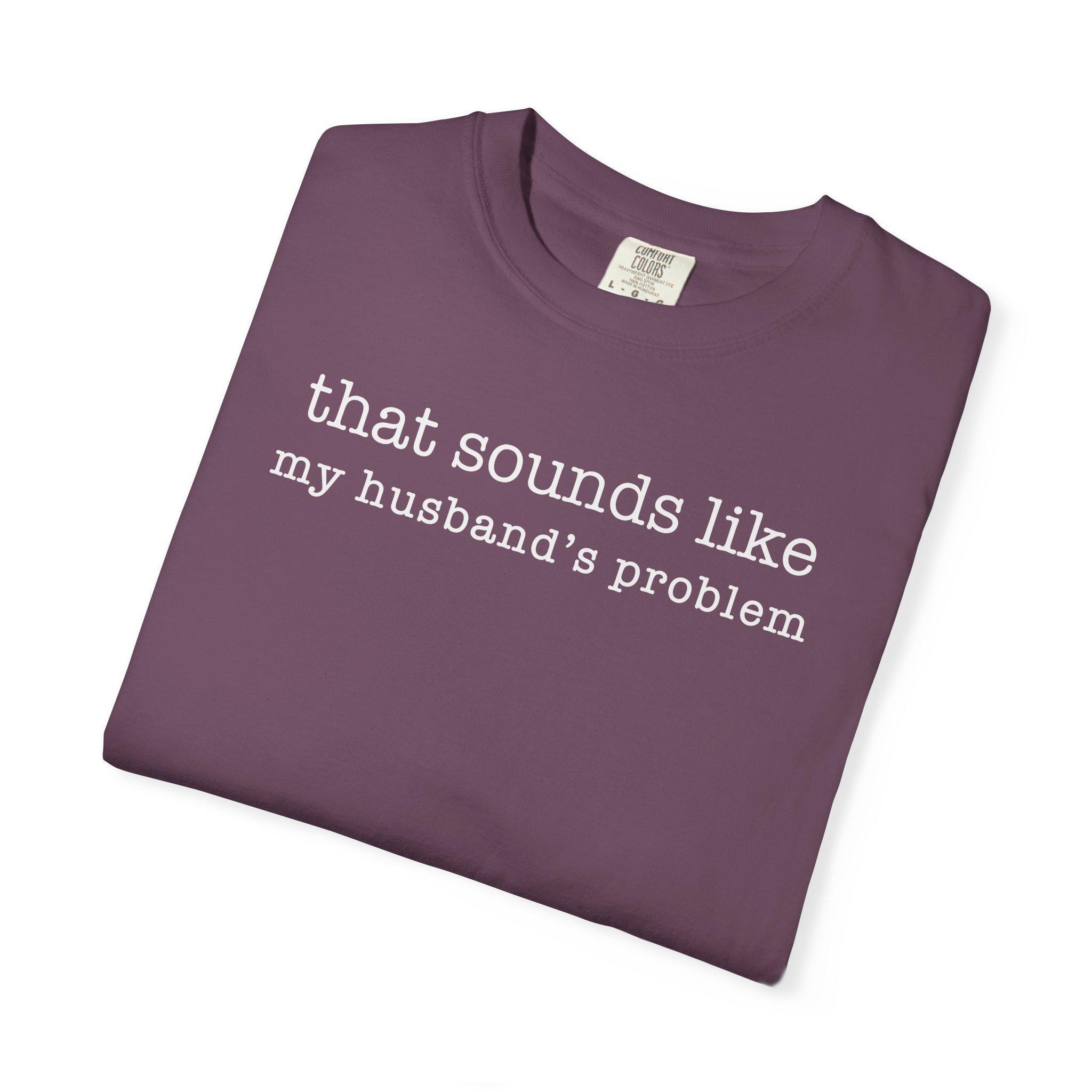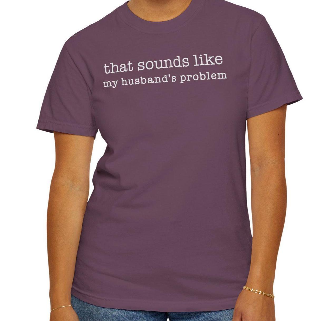 That sounds like my husband’s problem. A funny marriage quote tee printed on a soft, heavyweight Comfort Colors 1717 shirt.