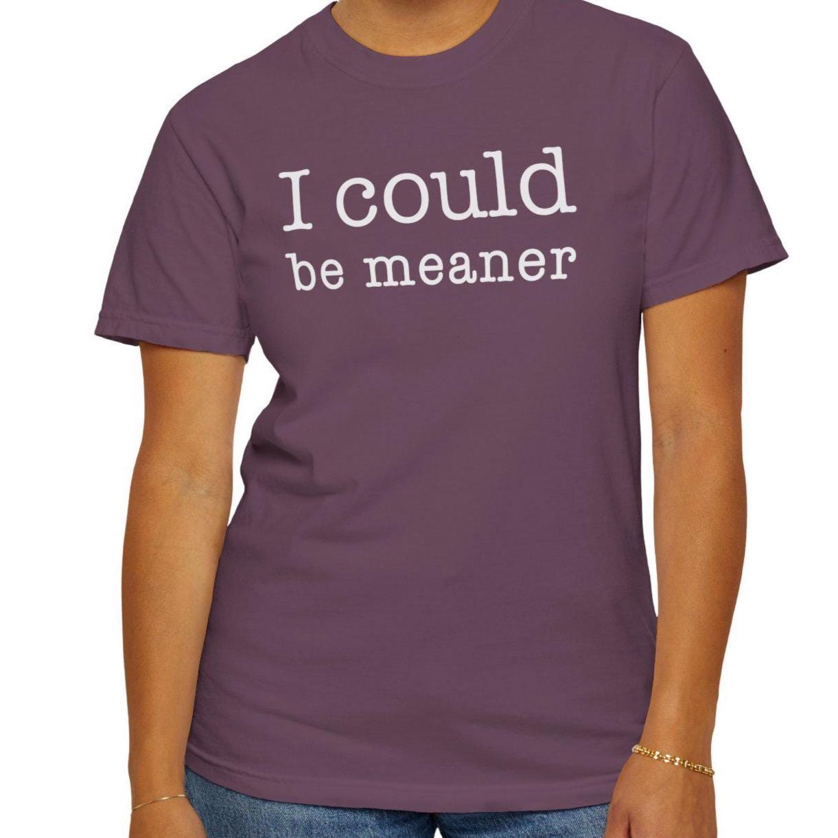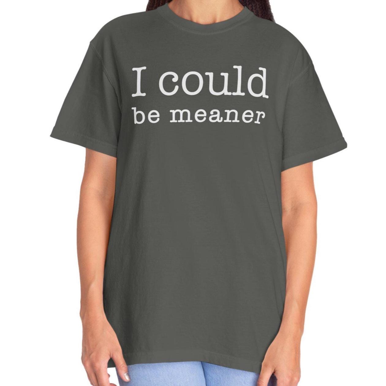 I could be meaner. A sarcastic yet minimalist Comfort Colors 1717 tee with a relaxed unisex fit and soft garment-dyed feel.