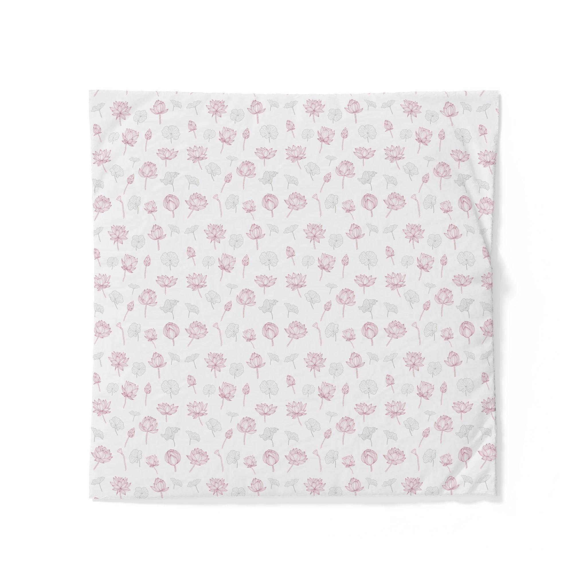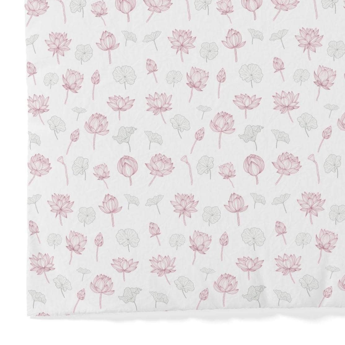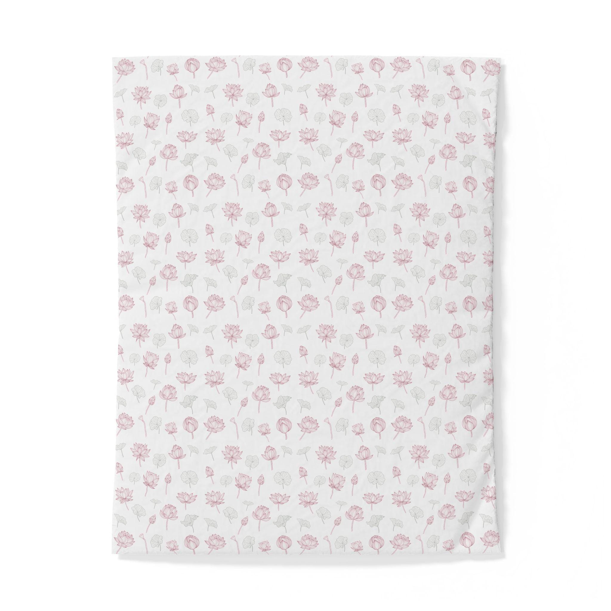 This Blush Lotus duvet cover features a delicate repeating pattern of soft pink lotus blooms and subtle botanical linework set against a clean, neutral background. The design brings gentle femininity and modern simplicity to your bedroom without overwhelming the space.