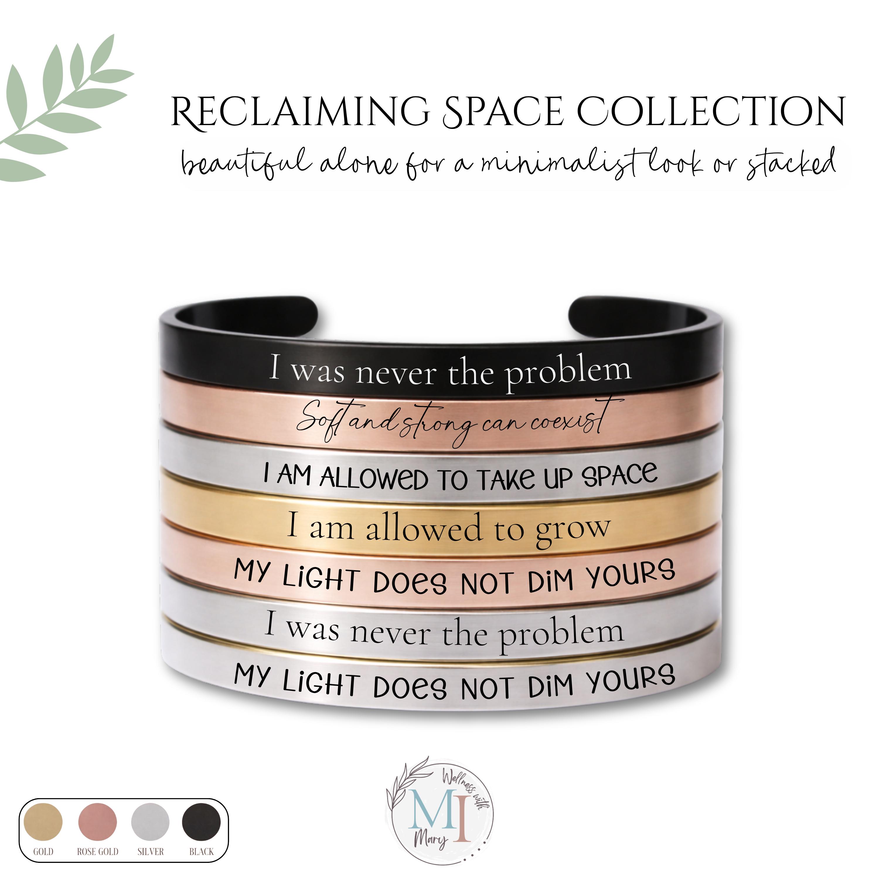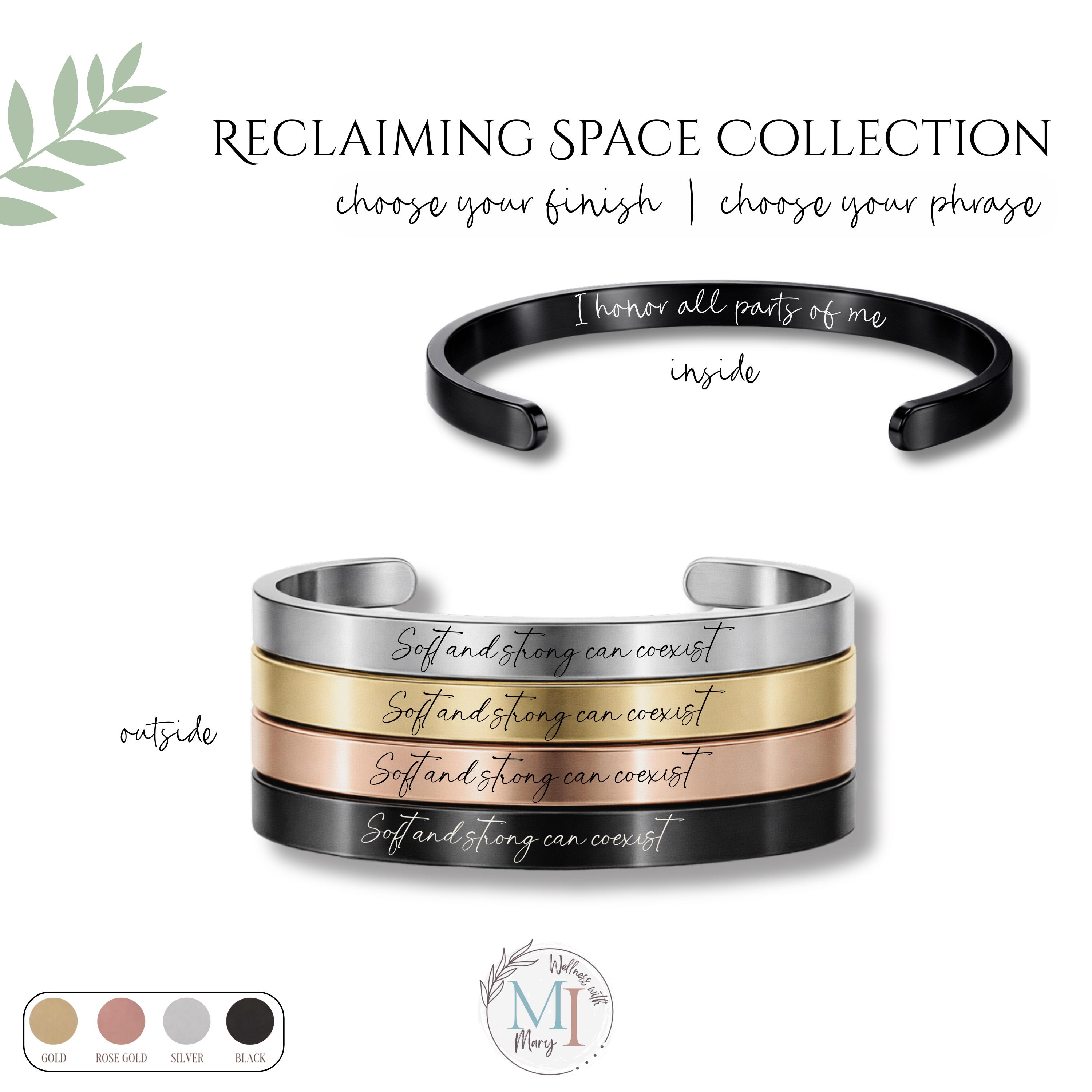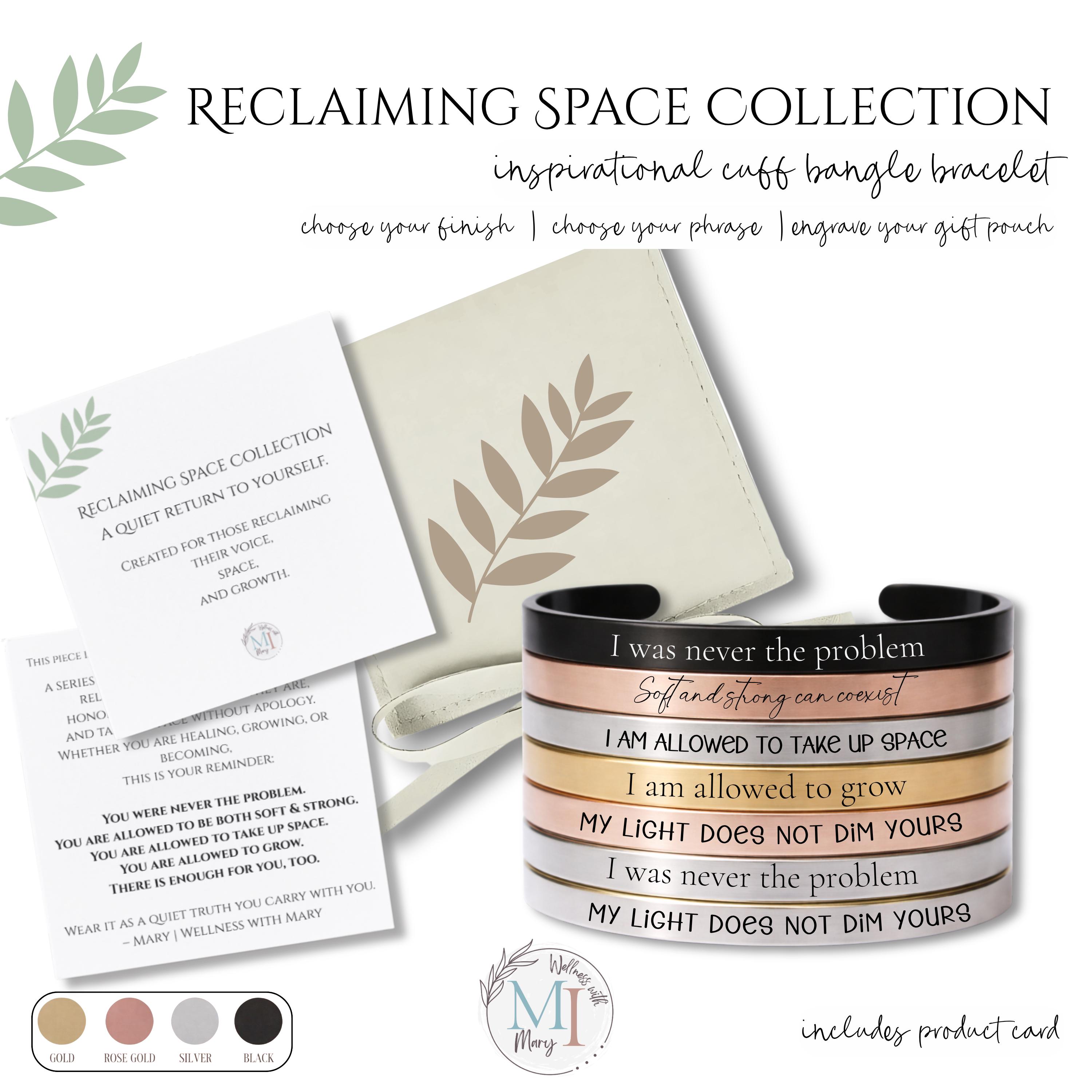 This engraved cuff is part of the Reclaiming Space Collection, designed for those healing, growing, and becoming.