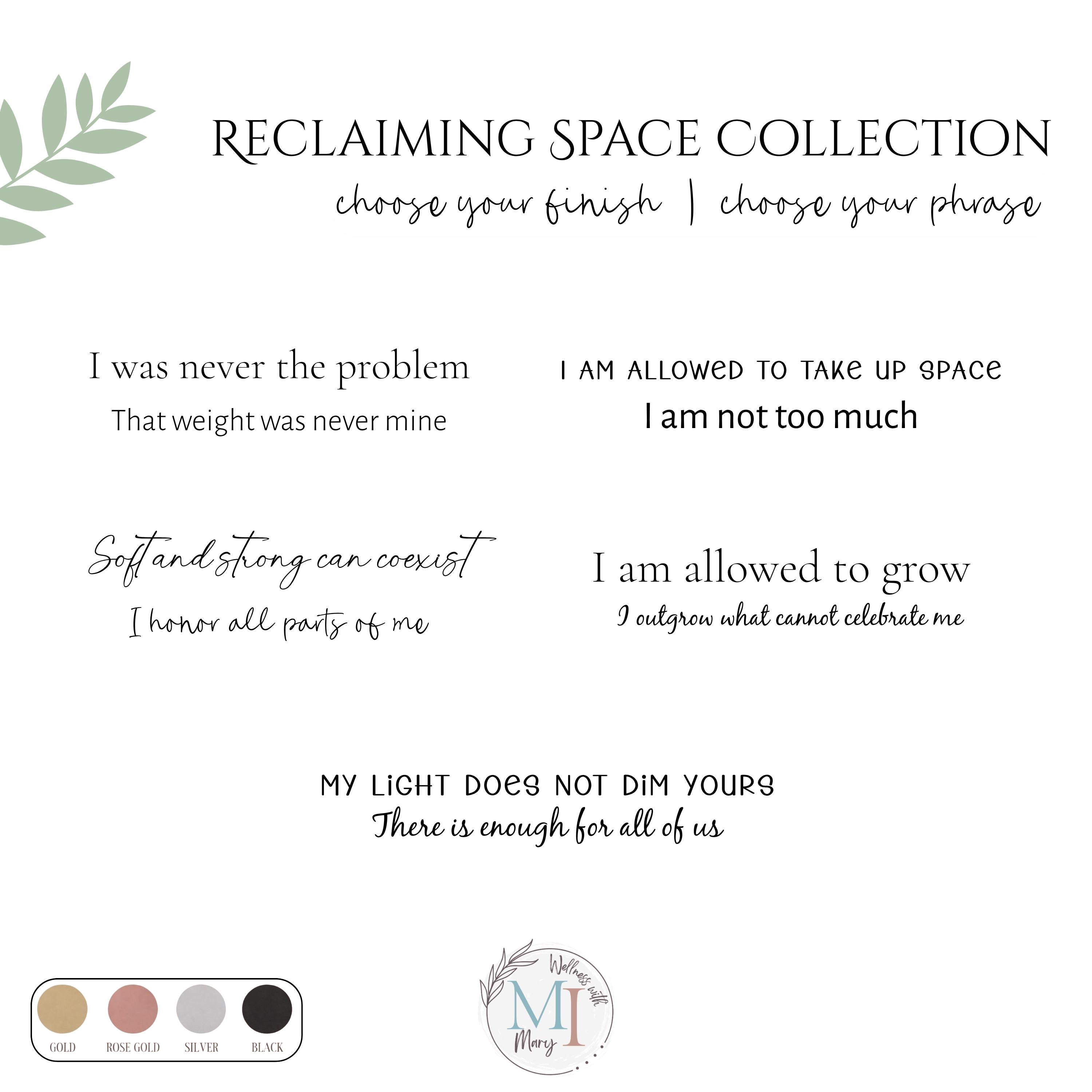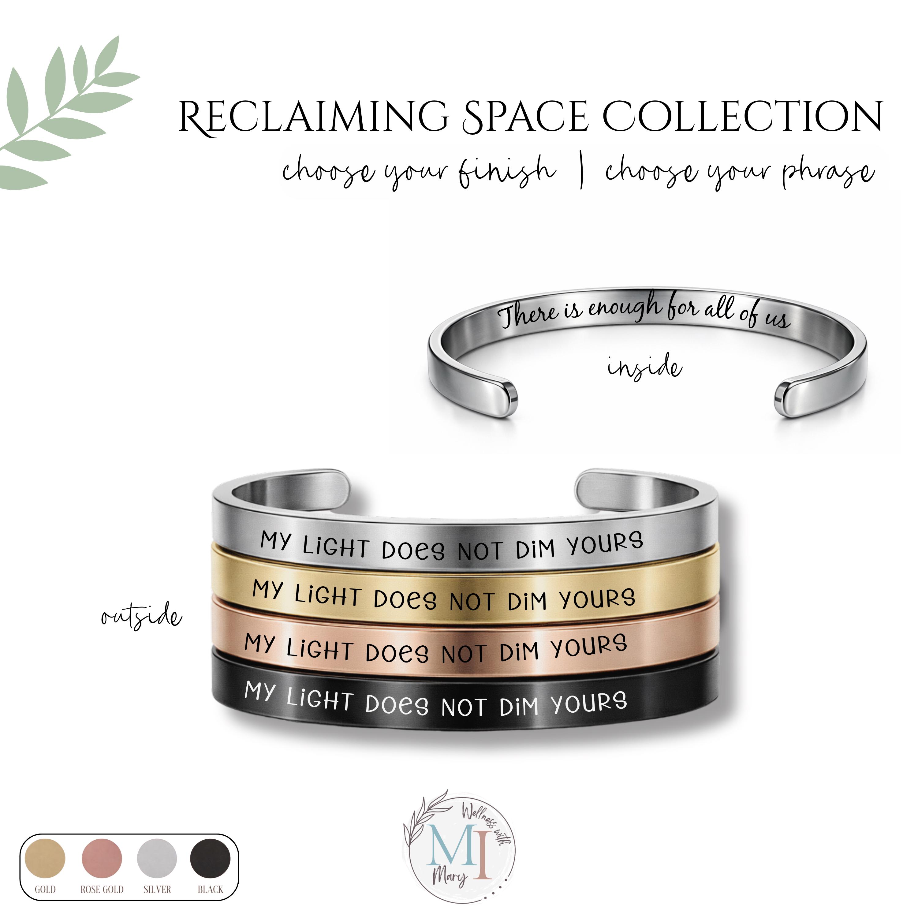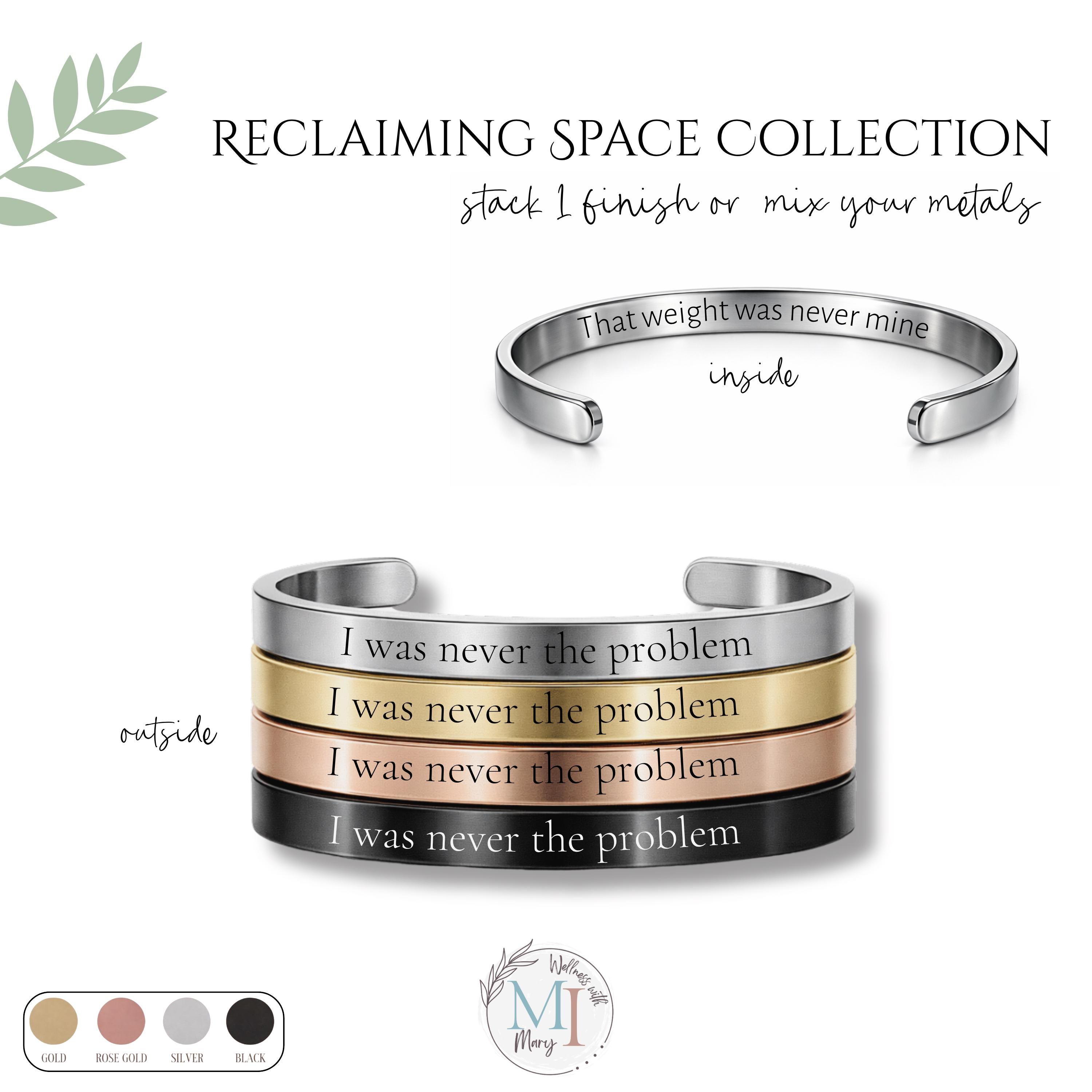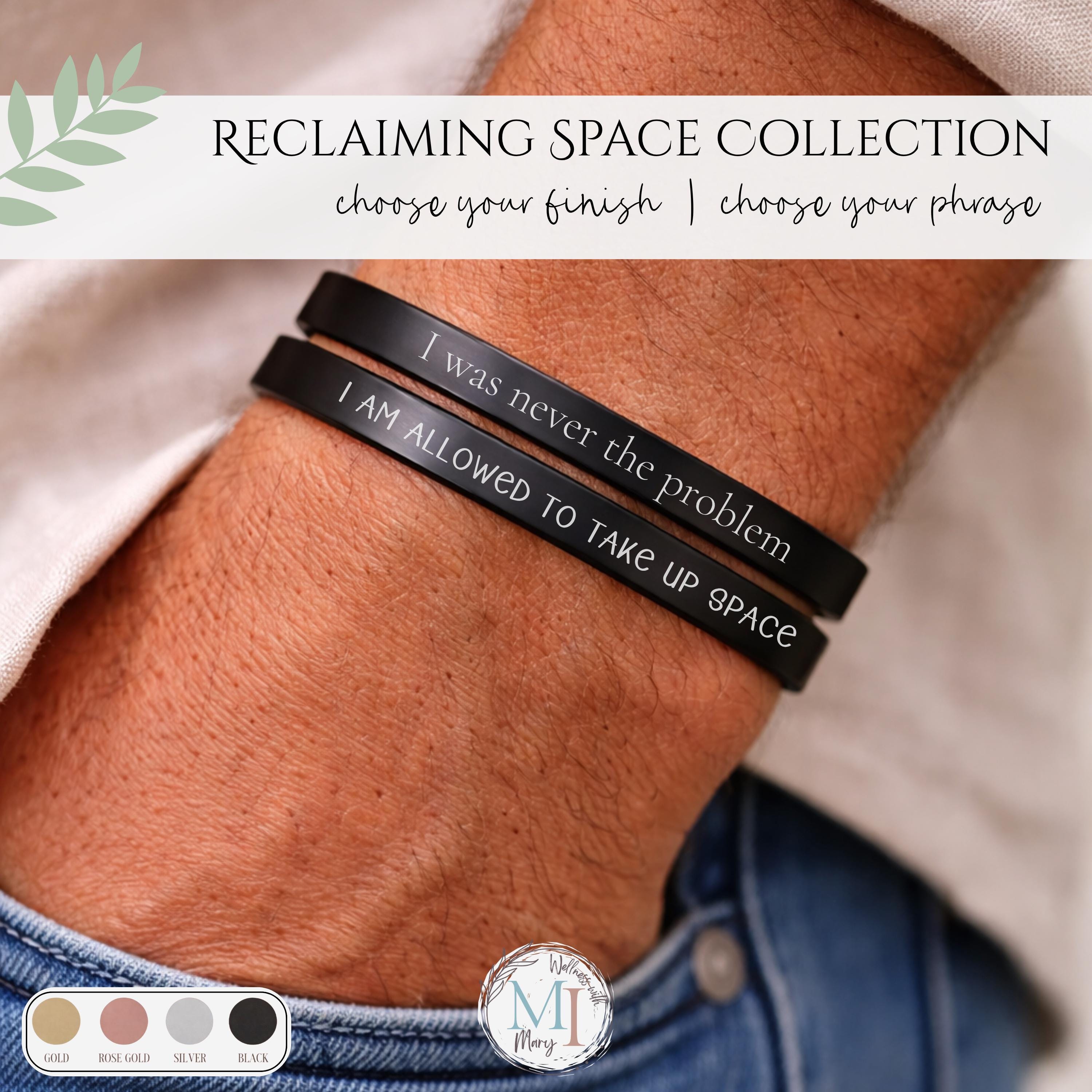 This engraved cuff is part of the Reclaiming Space Collection, designed for those healing, growing, and becoming.